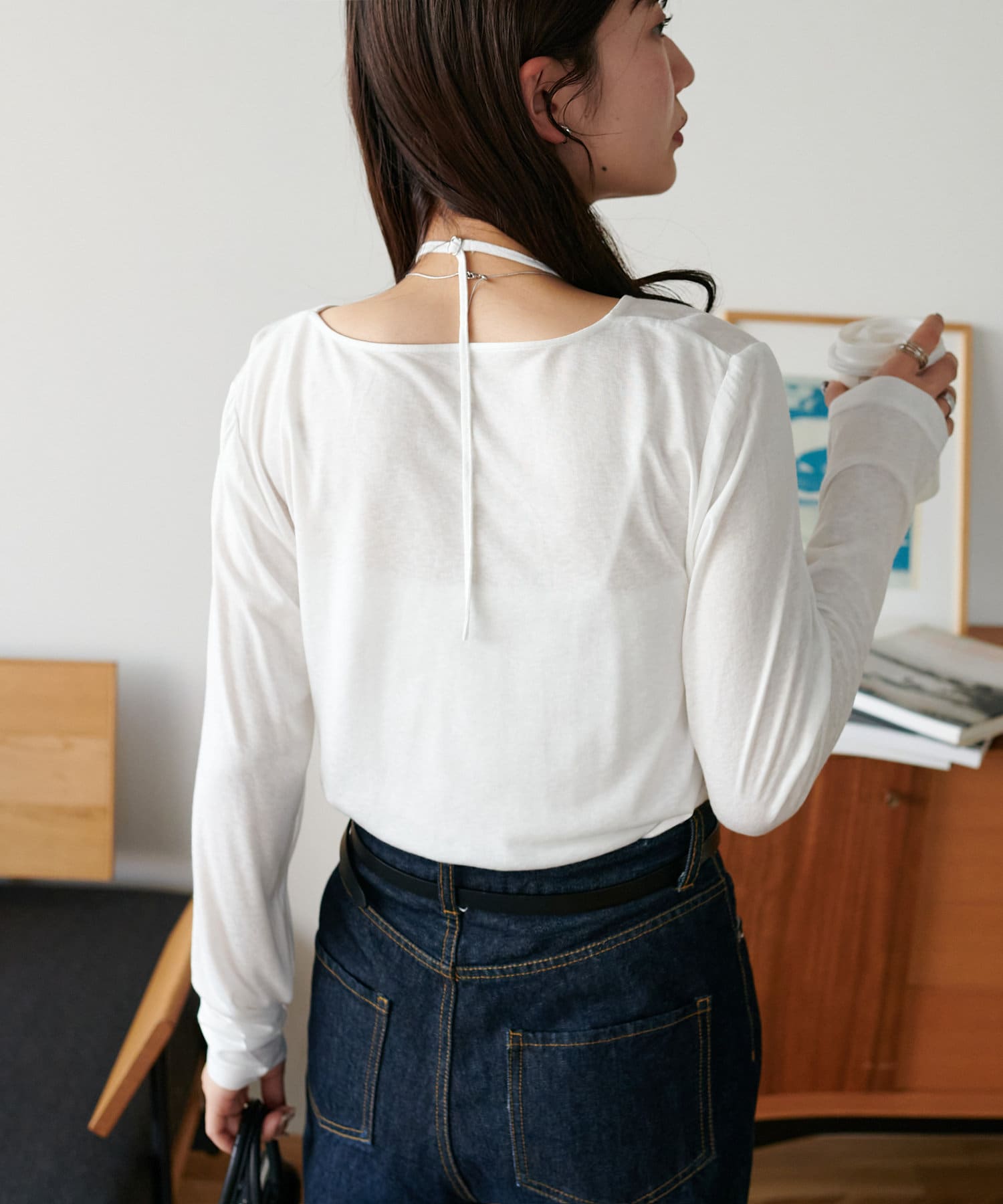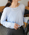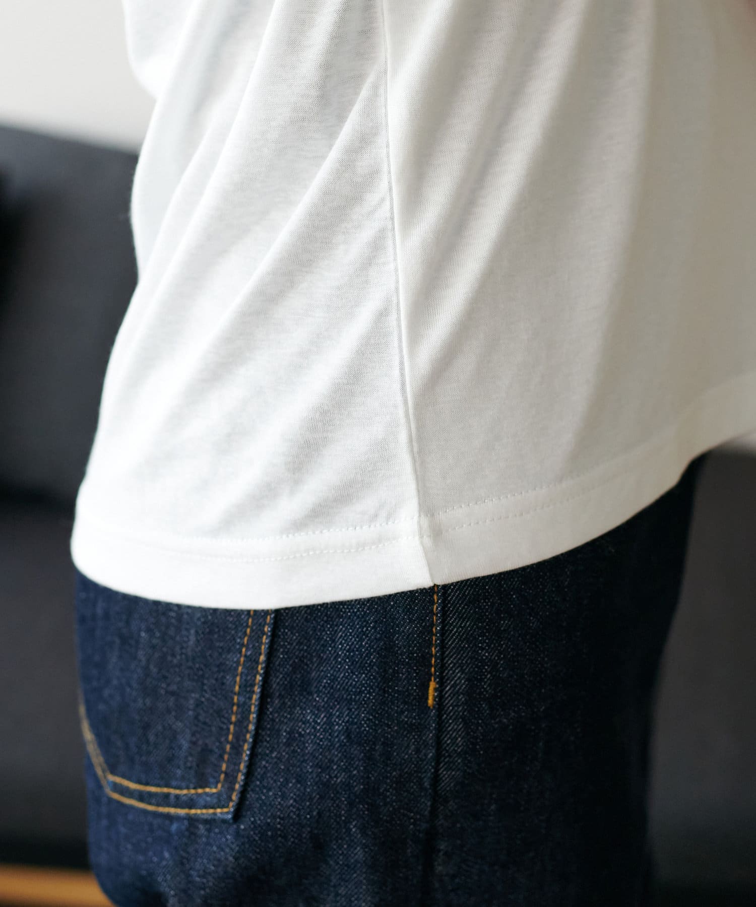 体にフィットしすぎない絶妙なサイジングで細見え効果も。一枚ではもちろん、ジャケットなどのインナーとしても活躍します!