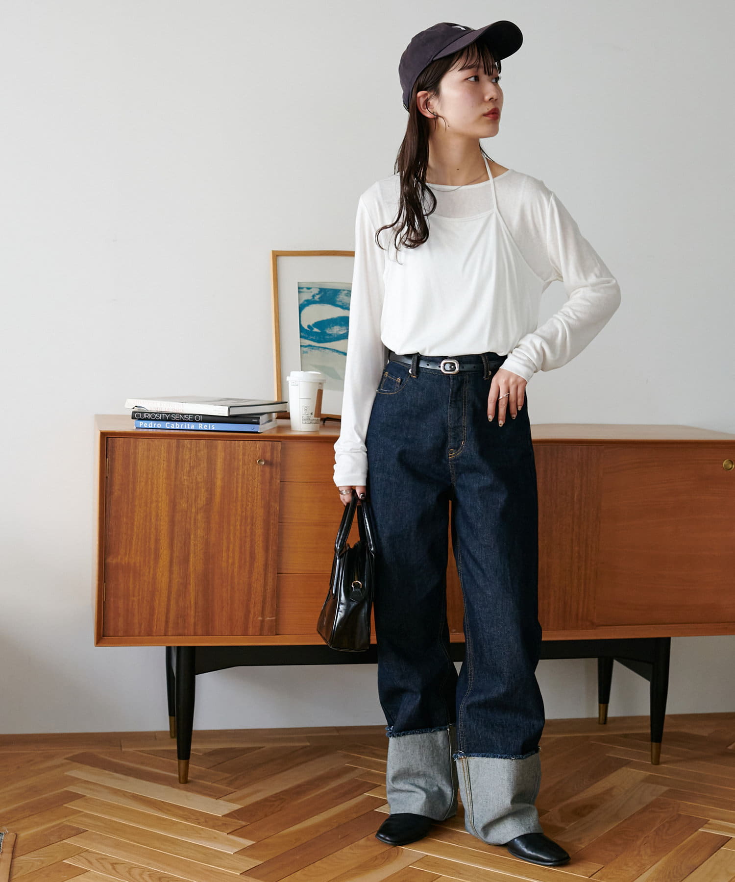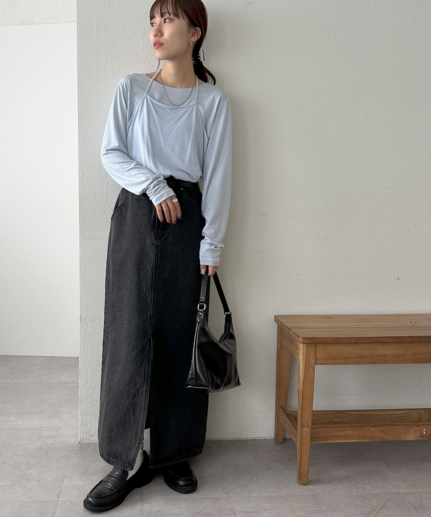 デザイン性のあるトップスなので、シンプルなボトムス合わせでも決まります。