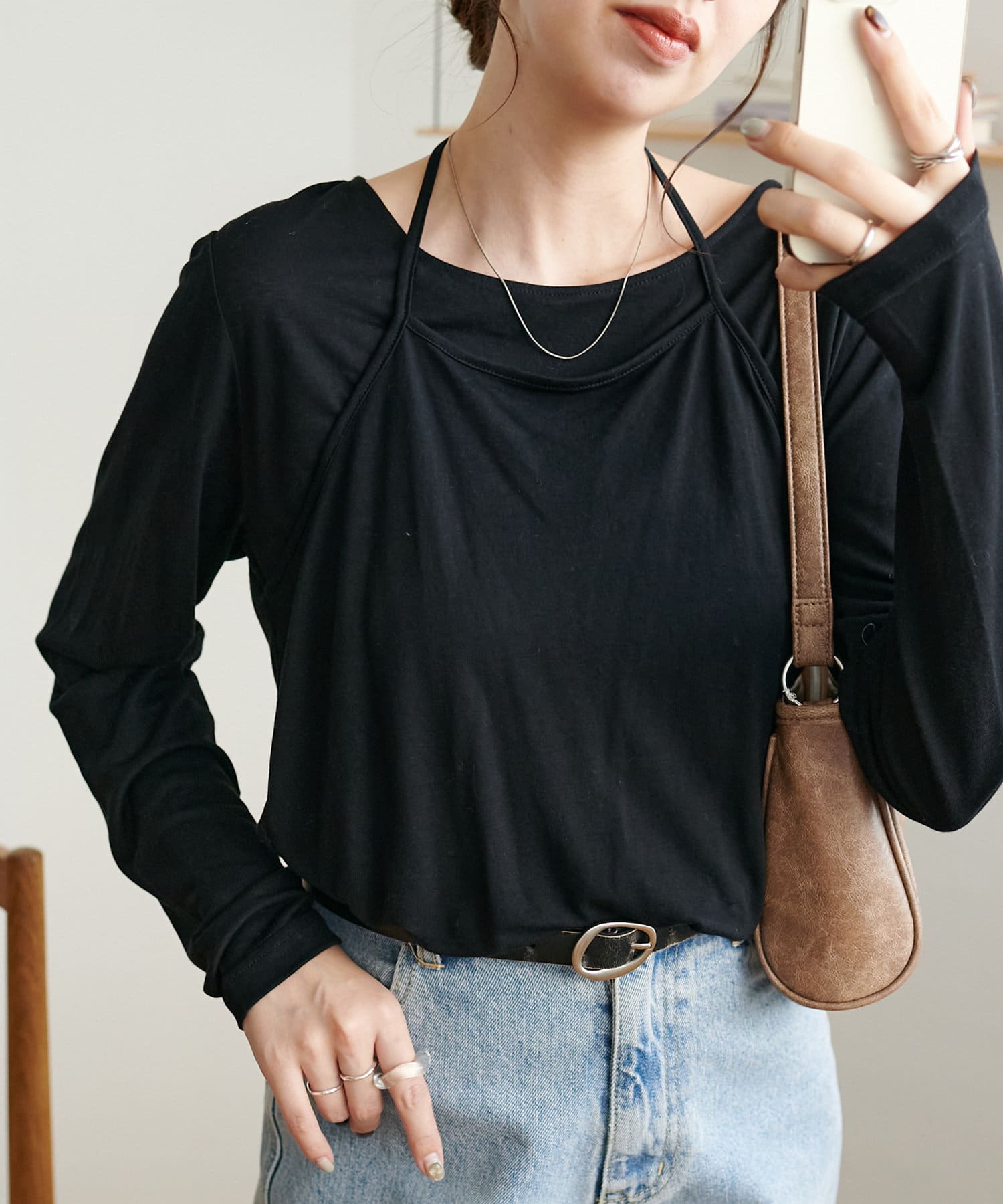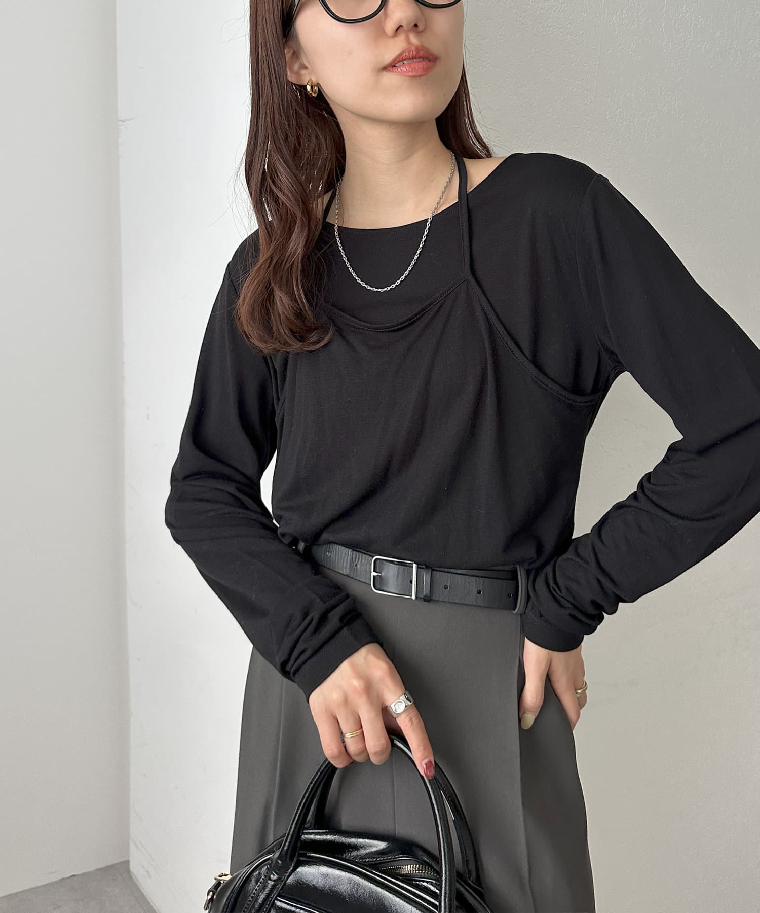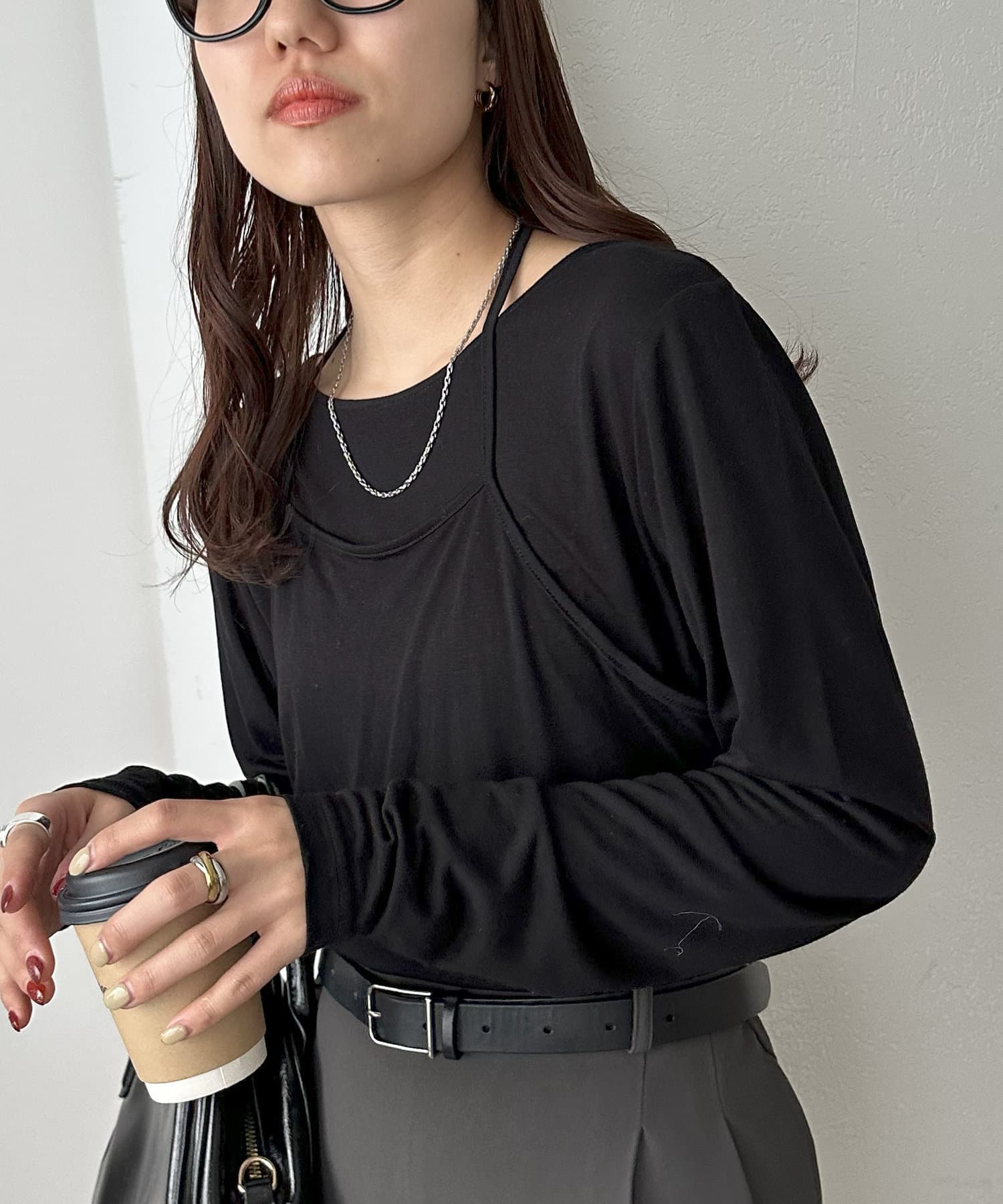 163cmスタッフ:トレンドのレイヤードスタイルが一枚で叶う万能アイテムです。いつものスタイルにプラスするだけで一味違った雰囲気に!