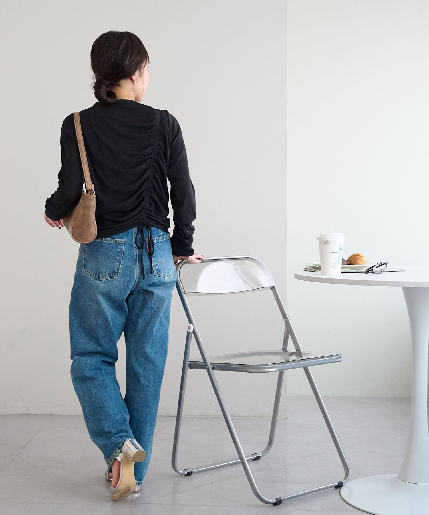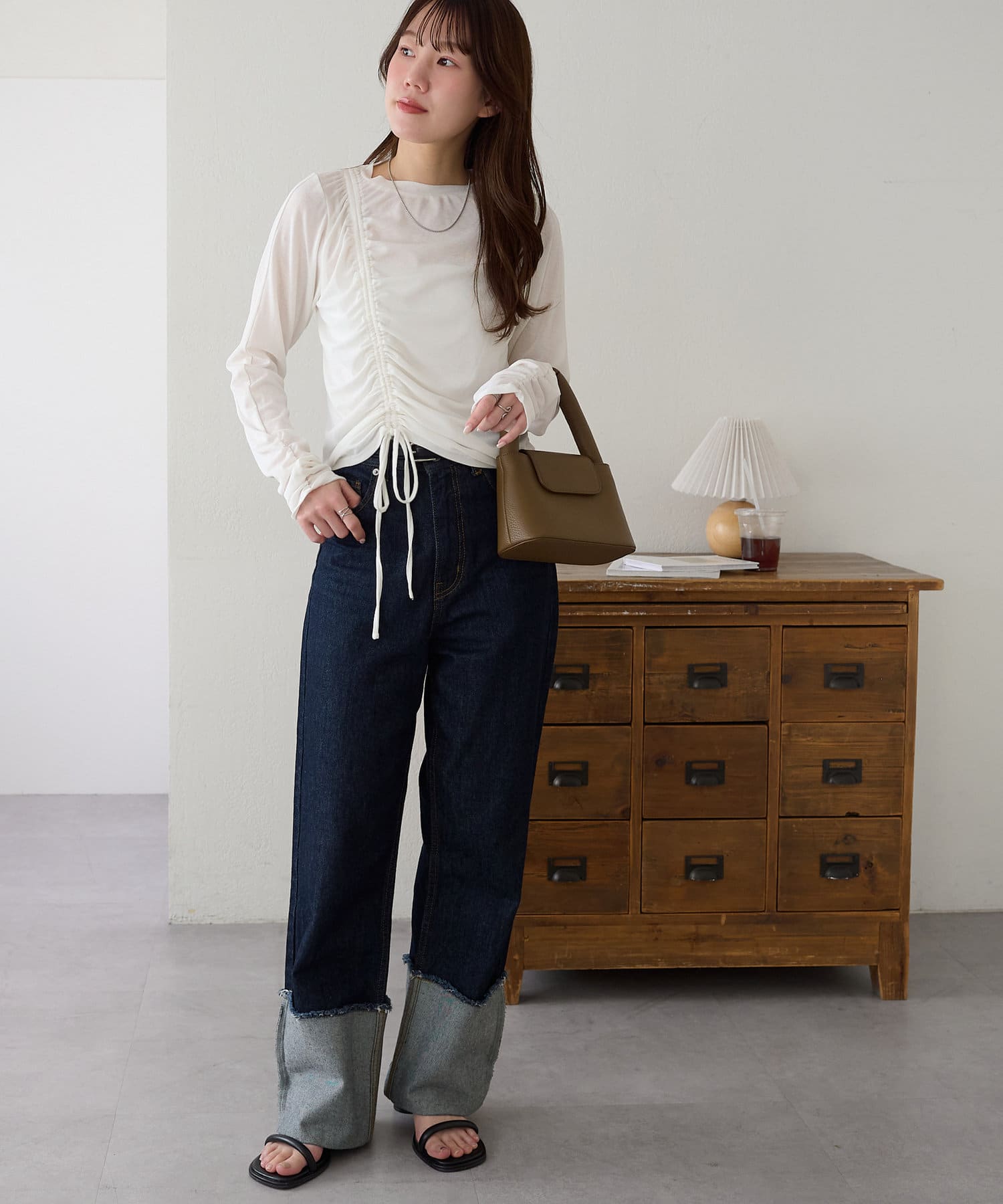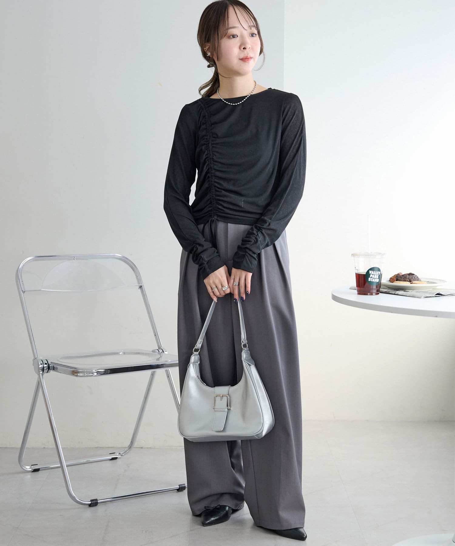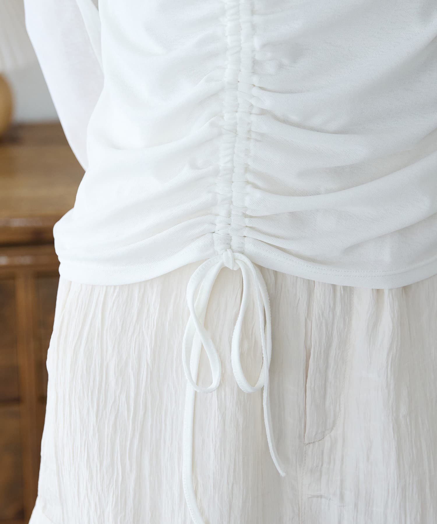 絞り具合で着丈をやや調節できるので、合わせるアイテムによって着こなしを変えて楽しめます◎