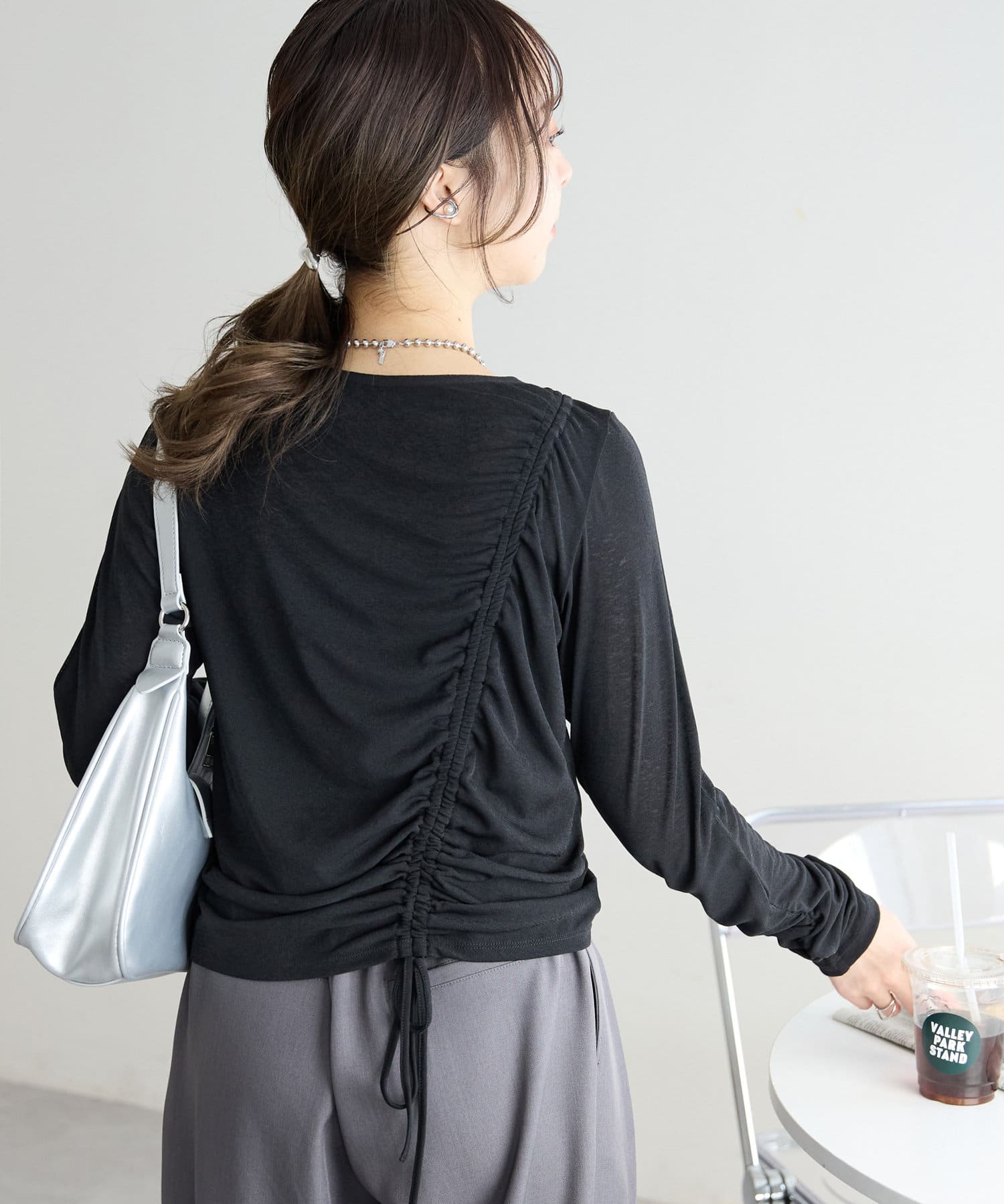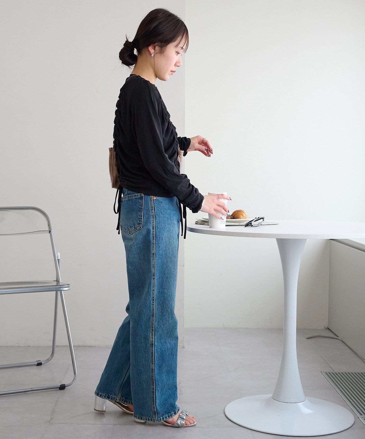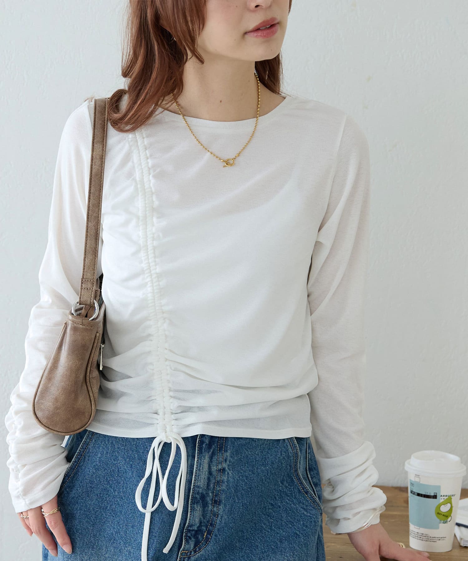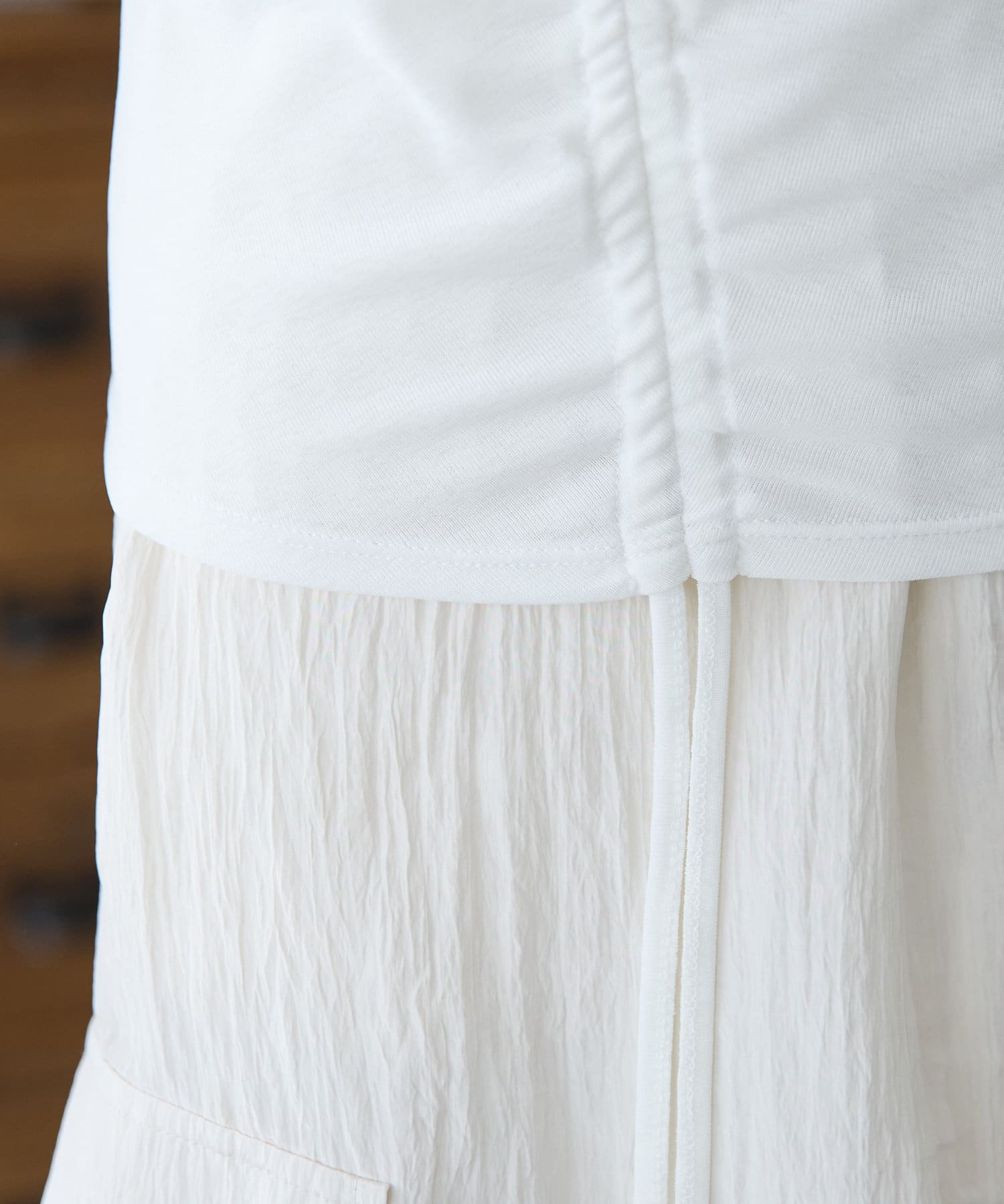 絞り具合で着丈をやや調節できるので、合わせるアイテムによって着こなしを変えて楽しめます◎