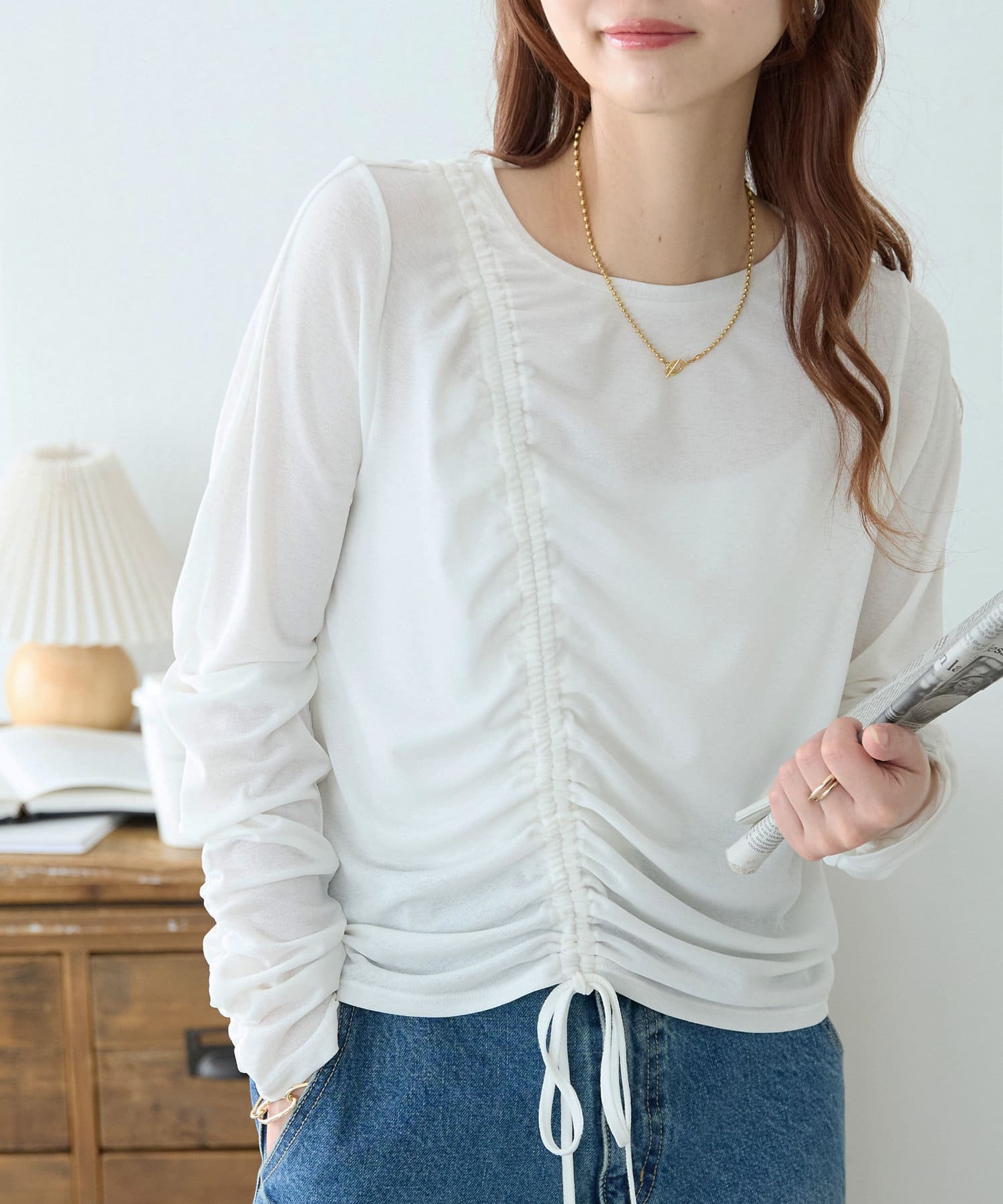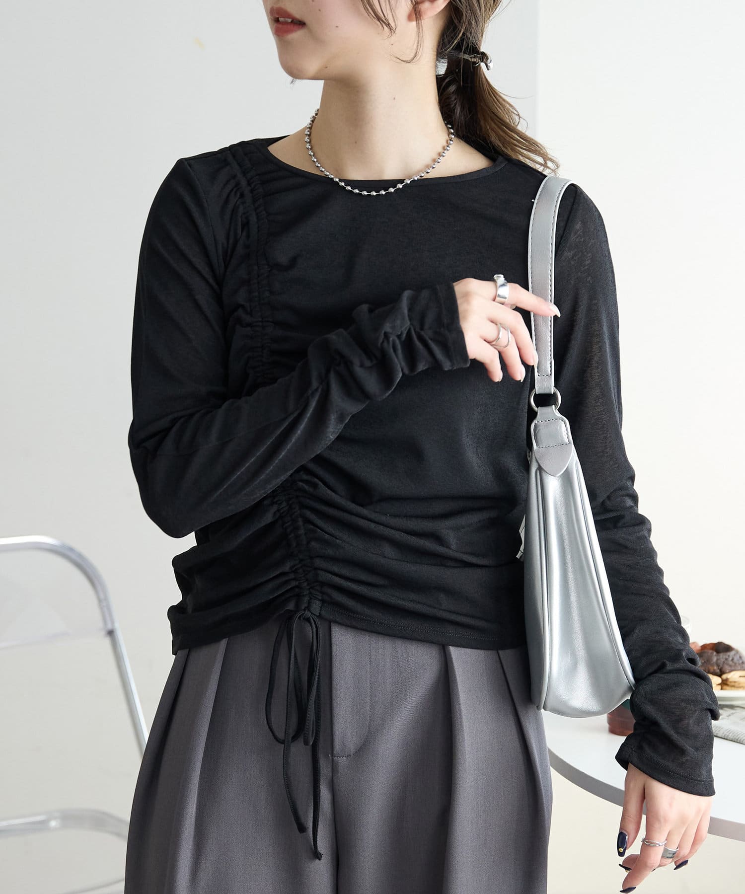 ギャザーのデザインがコーデにメリハリをプラスしてくれるトップス!
