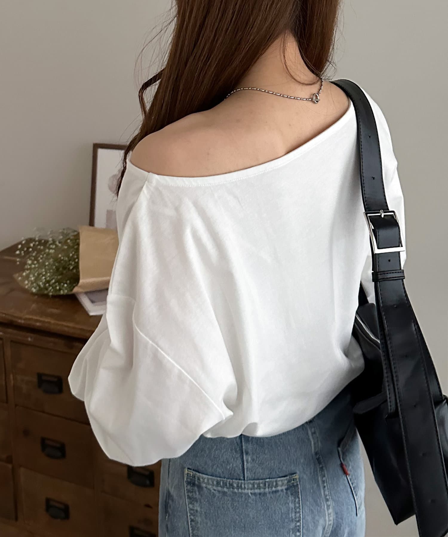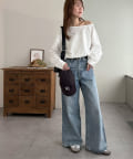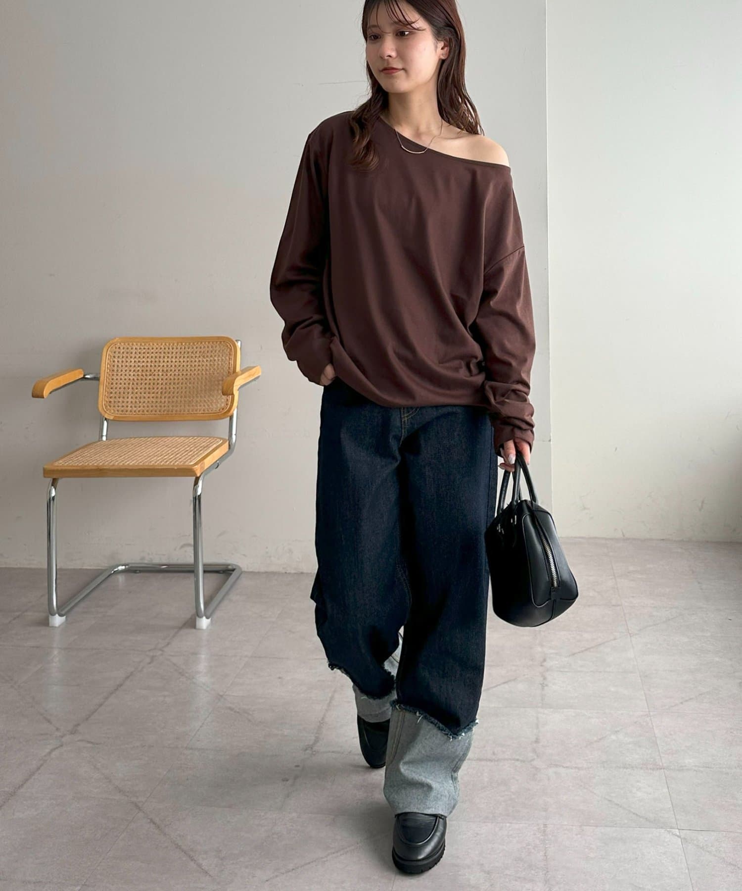・片方の肩見せで女性らしい華やかさと抜け感を演出