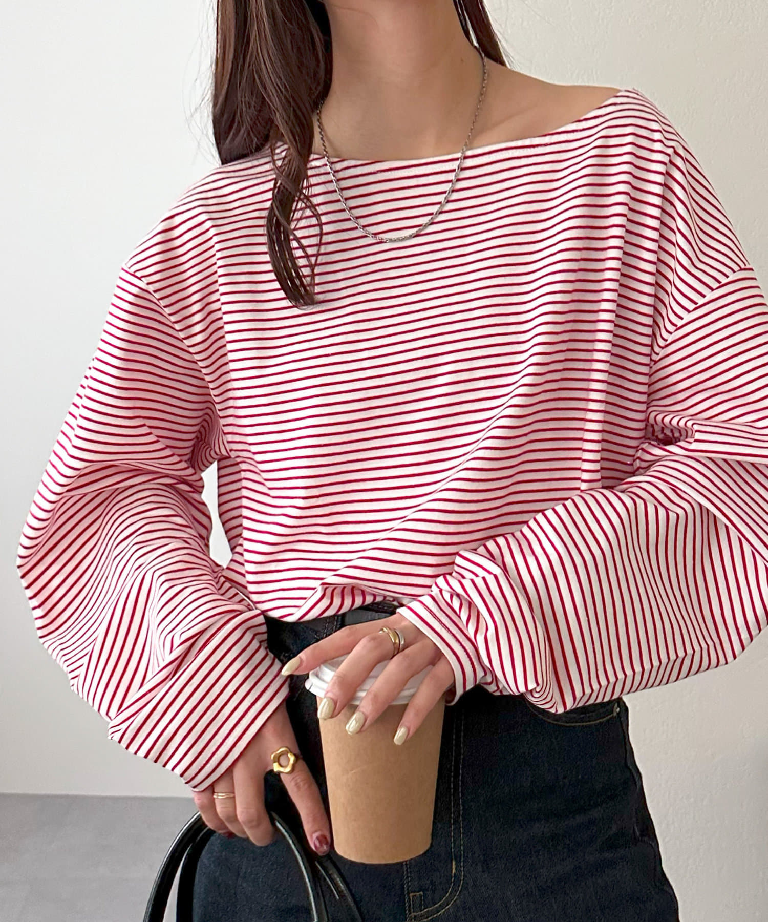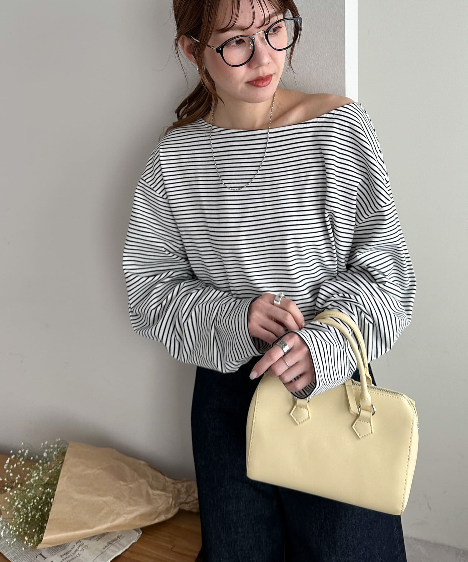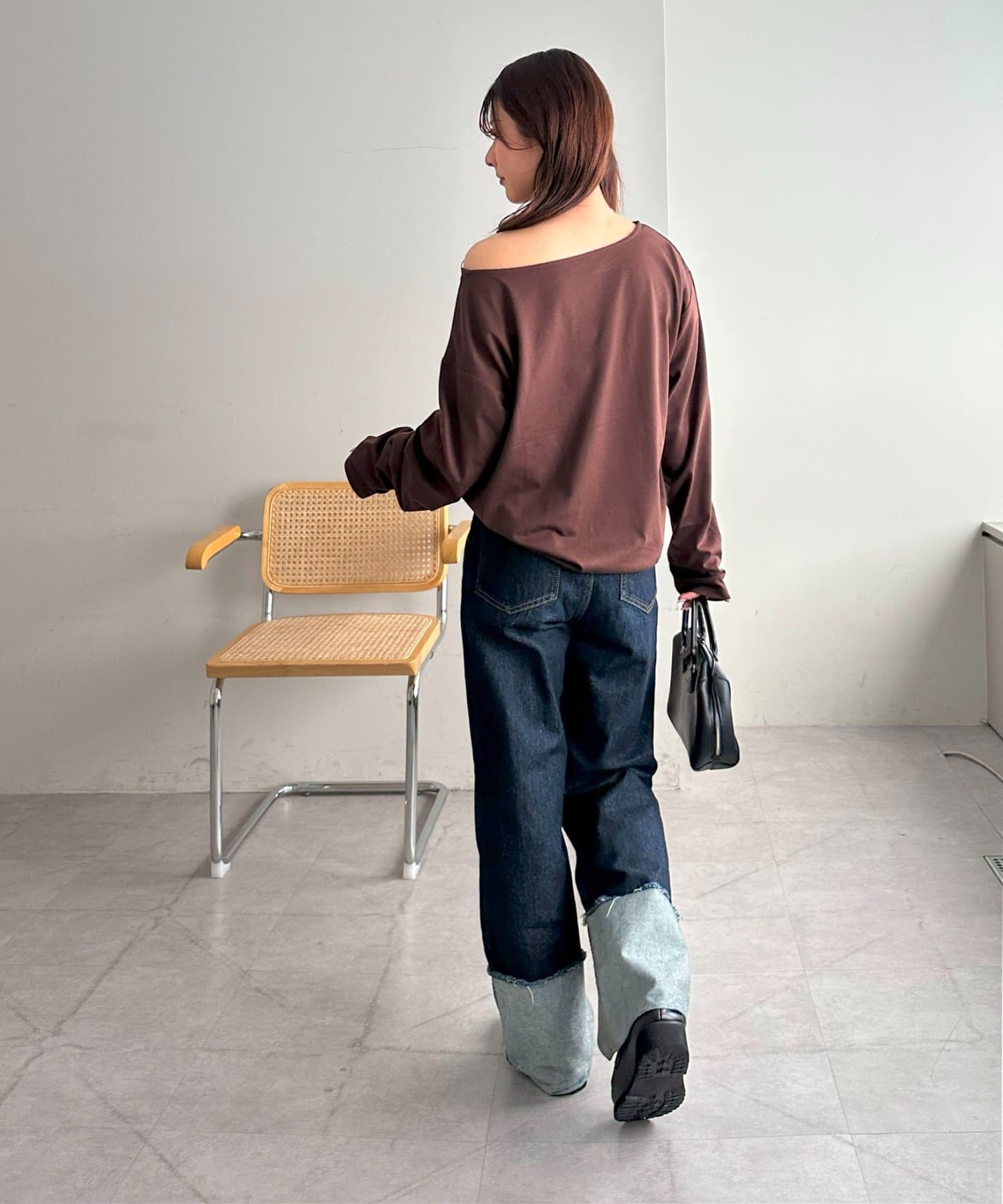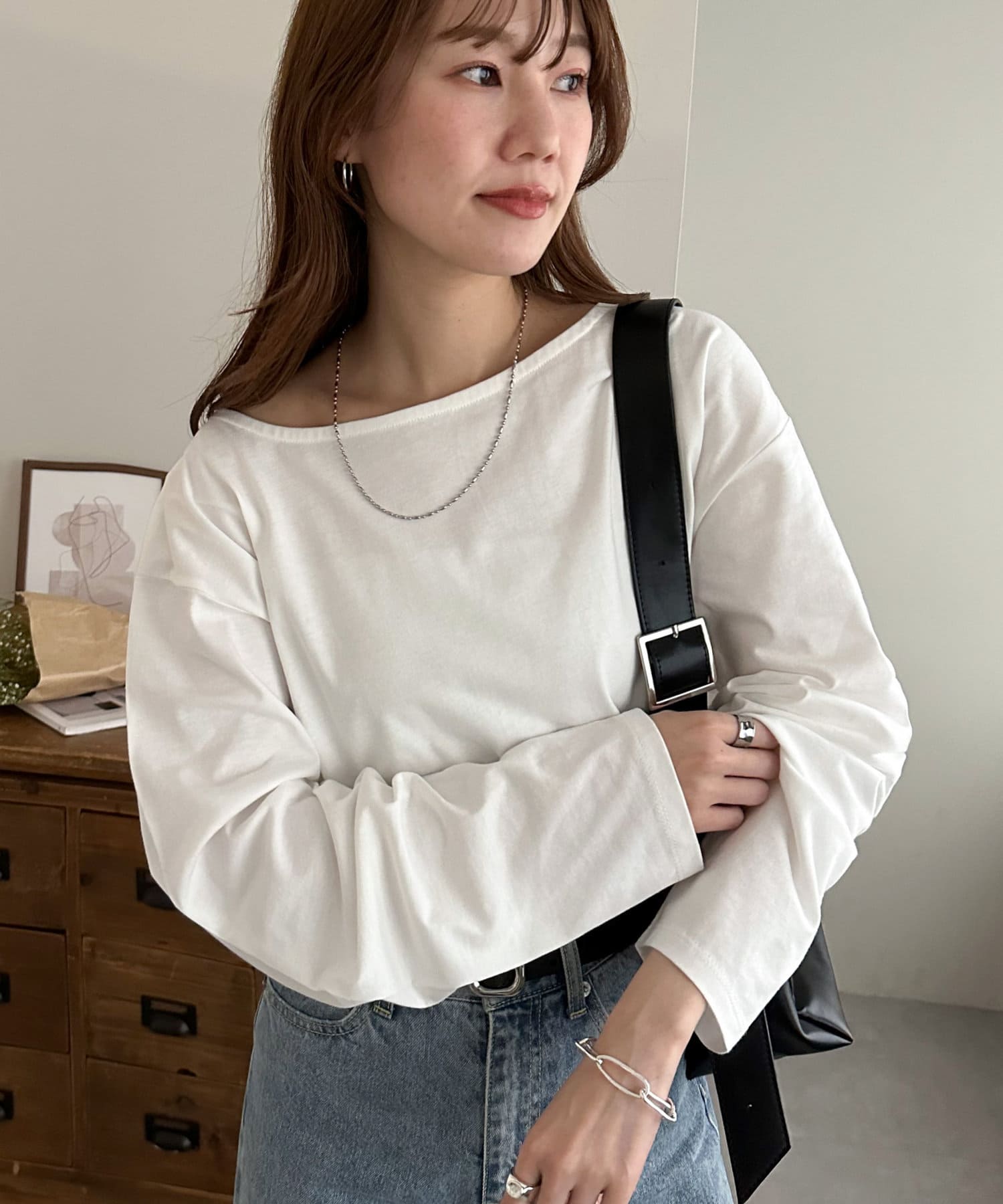 ・158cmスタッフ: オフショルが今年っぽい印象に♪シンプルながらにデザインがあって1枚で着ても様になります!カラー展開も豊富で色違いで欲しくなります。