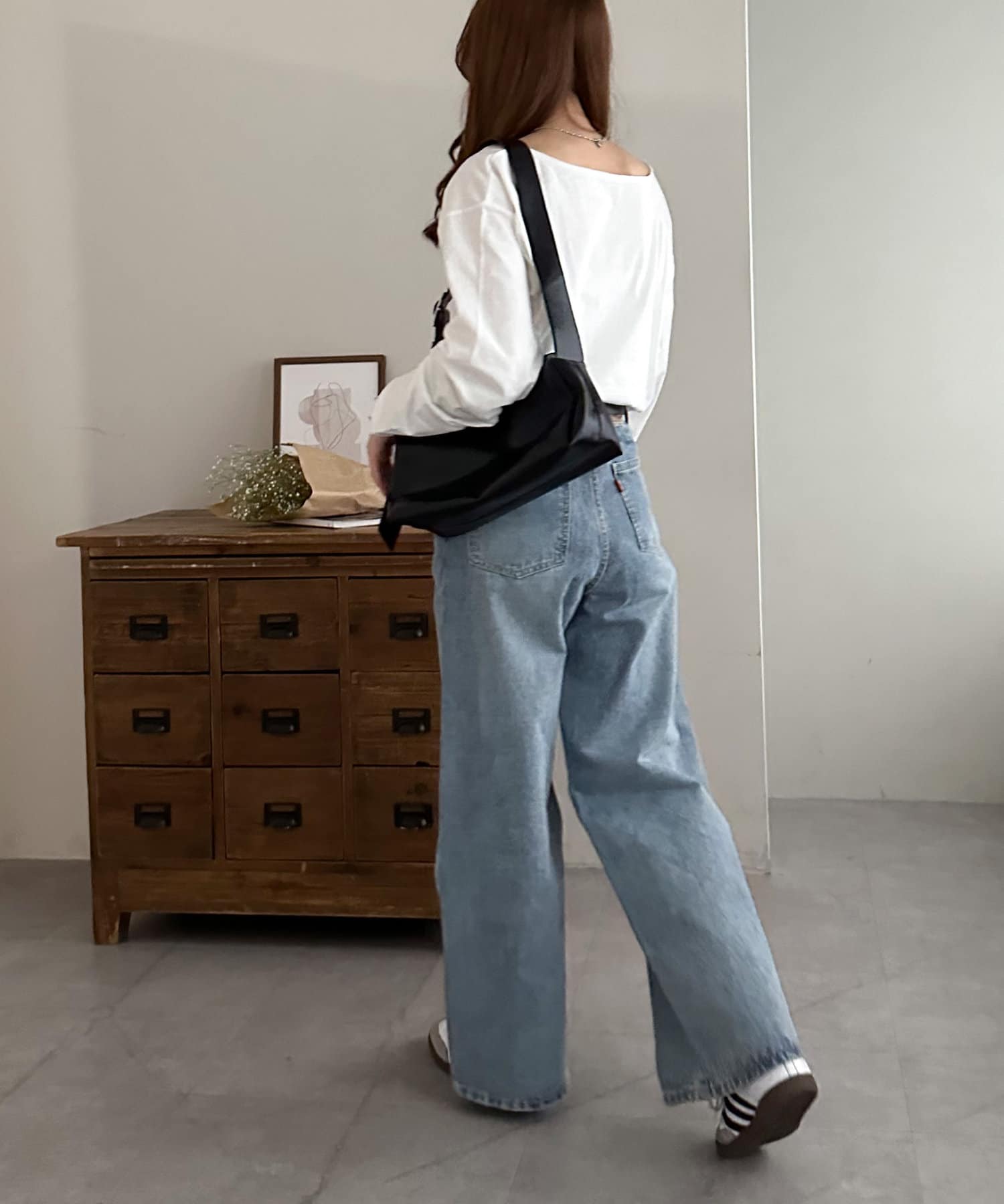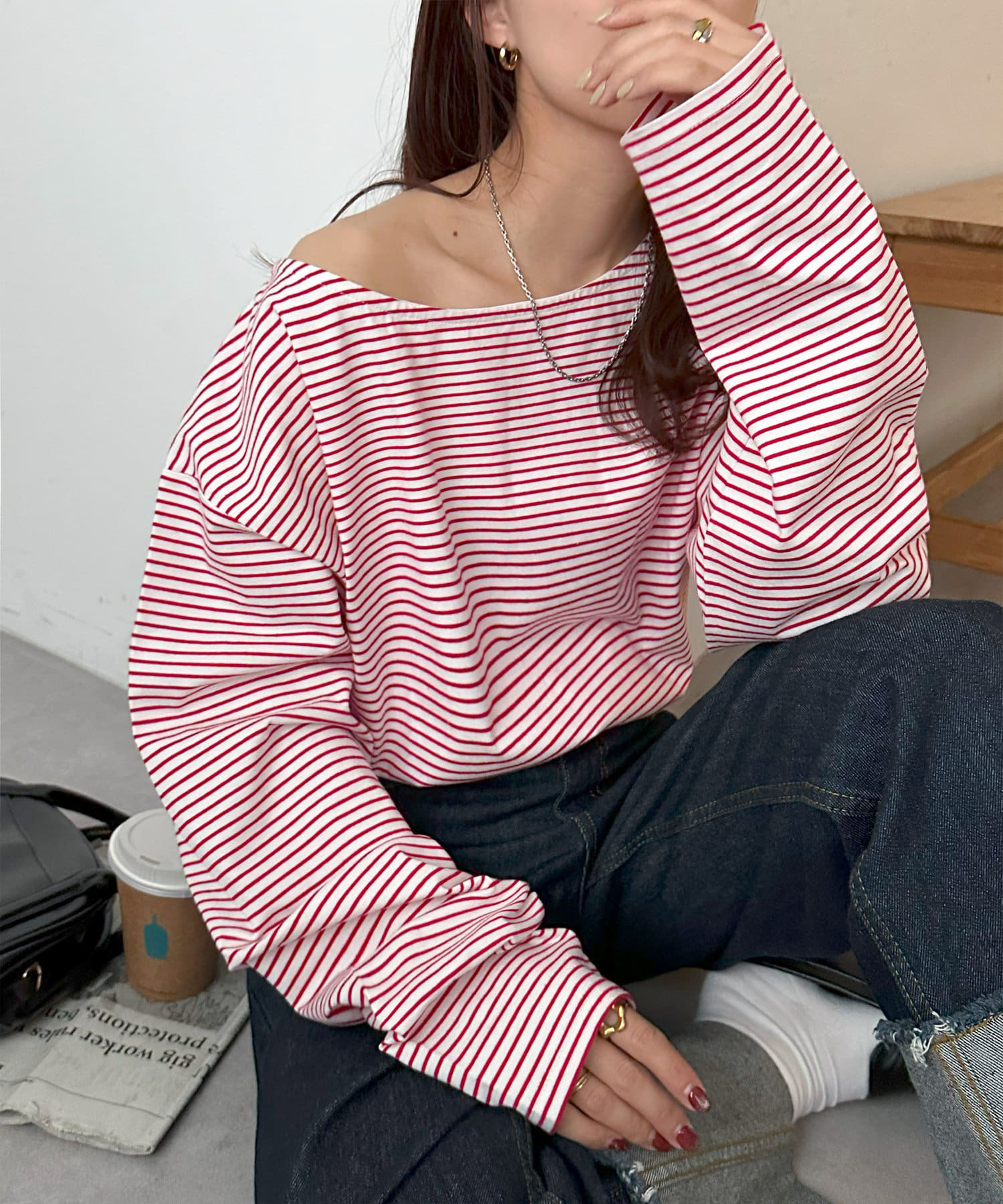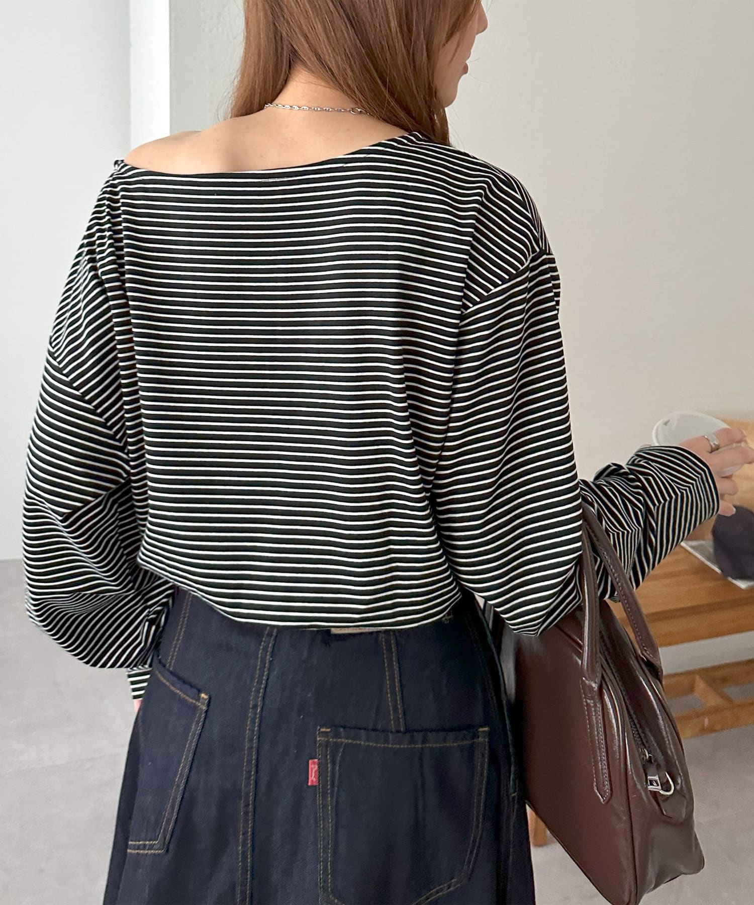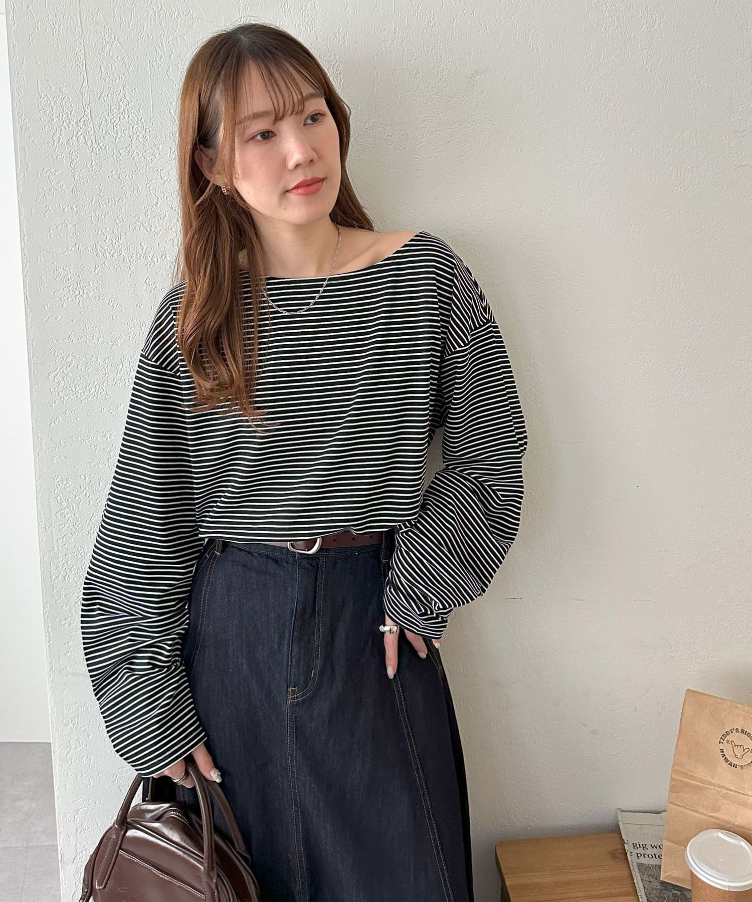 ・158cmスタッフ: オフショルが今年っぽい印象に♪シンプルながらにデザインがあって1枚で着ても様になります!カラー展開も豊富で色違いで欲しくなります。