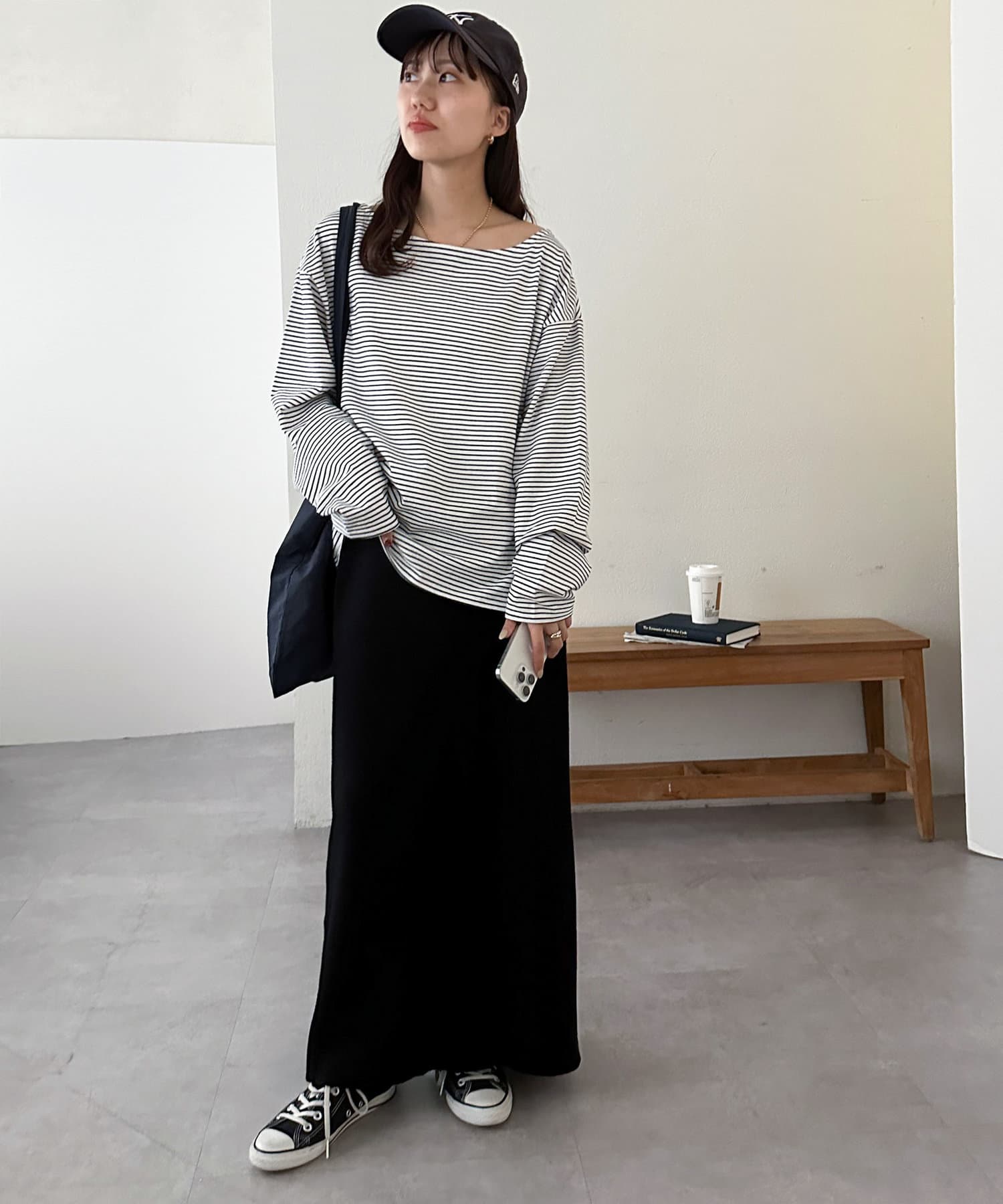 ・スラックスやナロースカートなどキレイめアイテムとも好相性