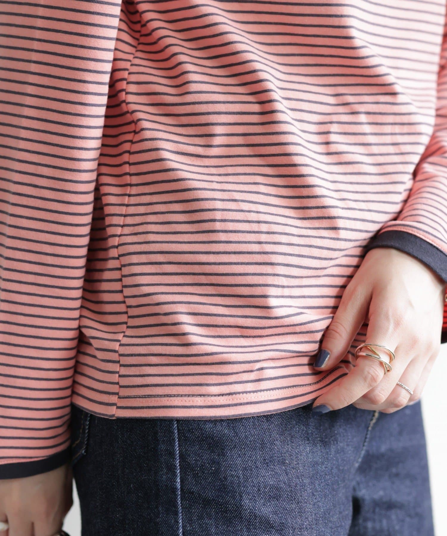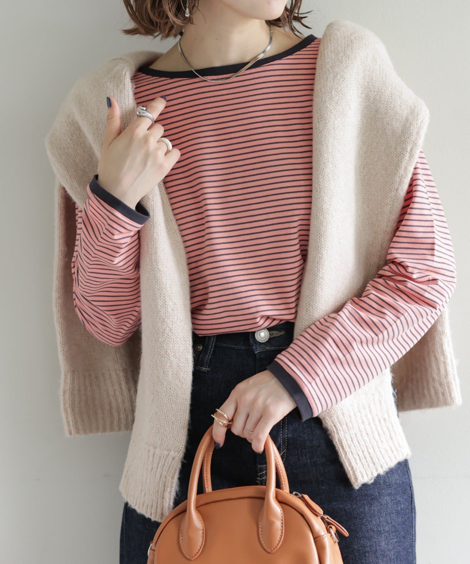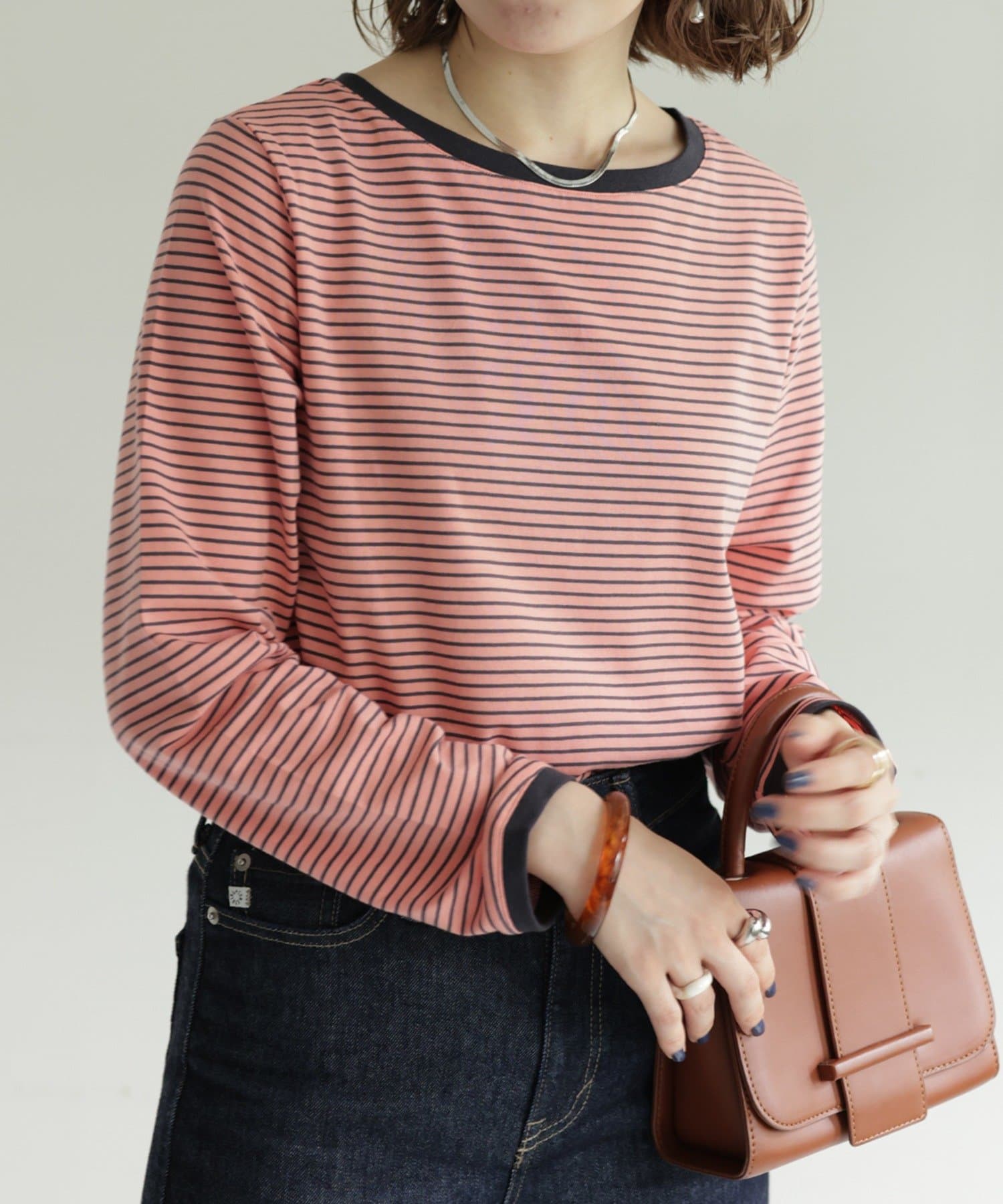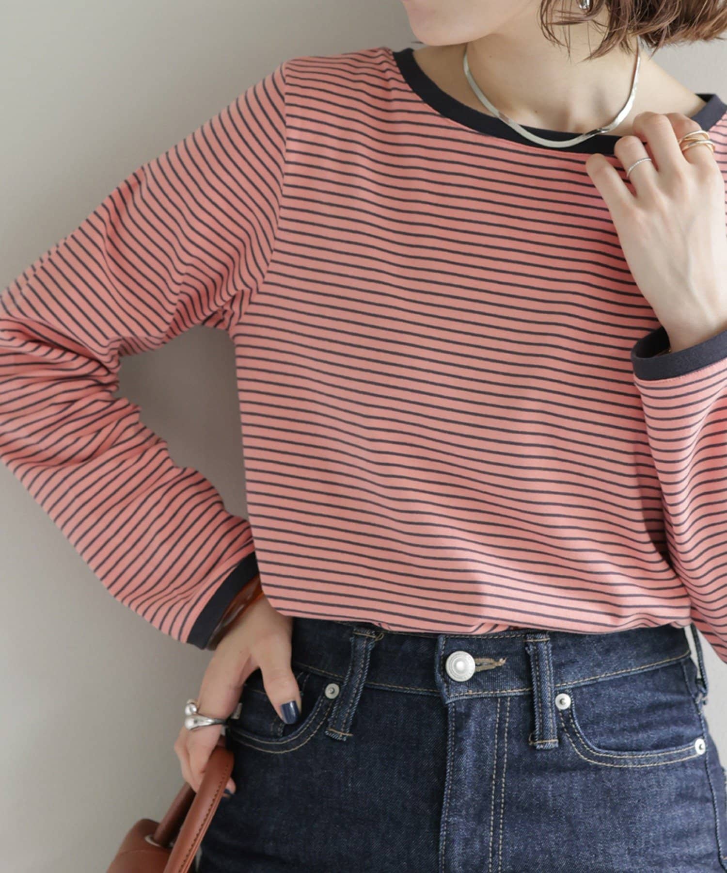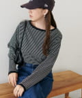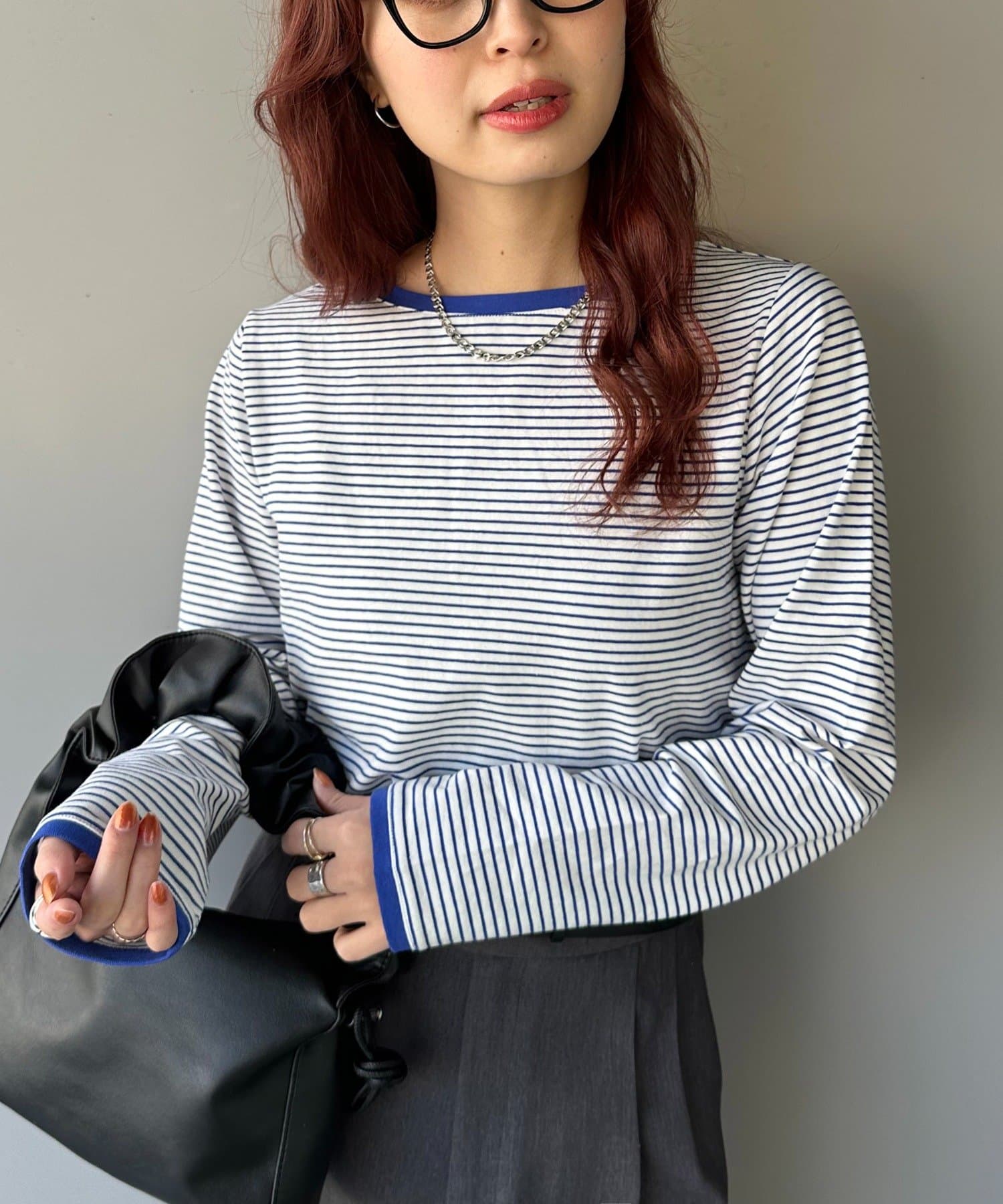 ・細めのピッチで仕上げた旬のボーダー柄と配色使いでアクセントをプラス