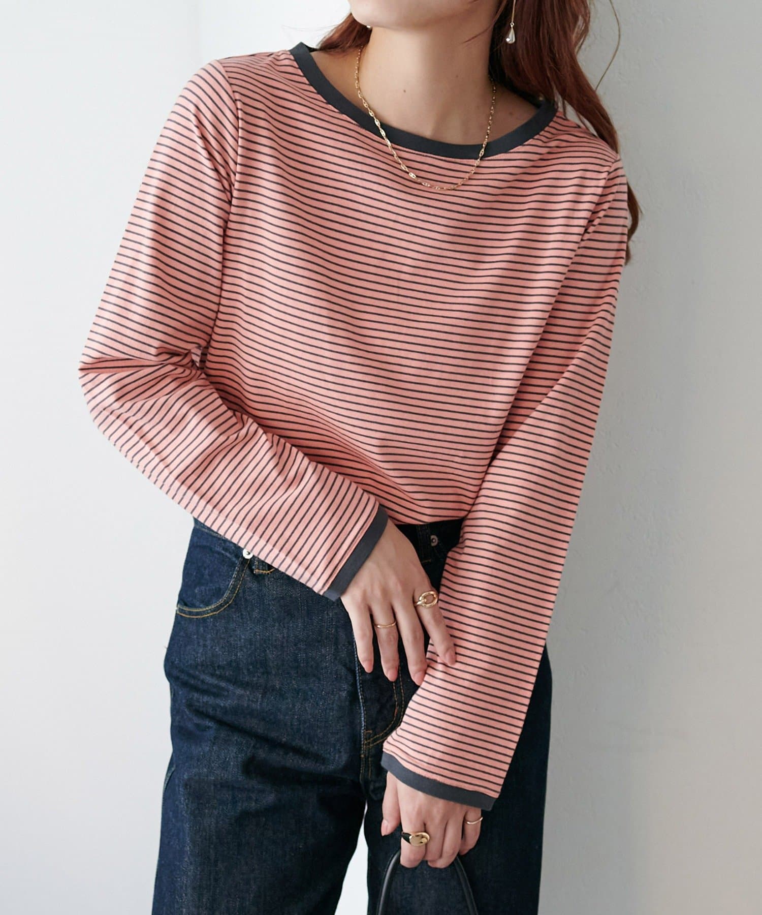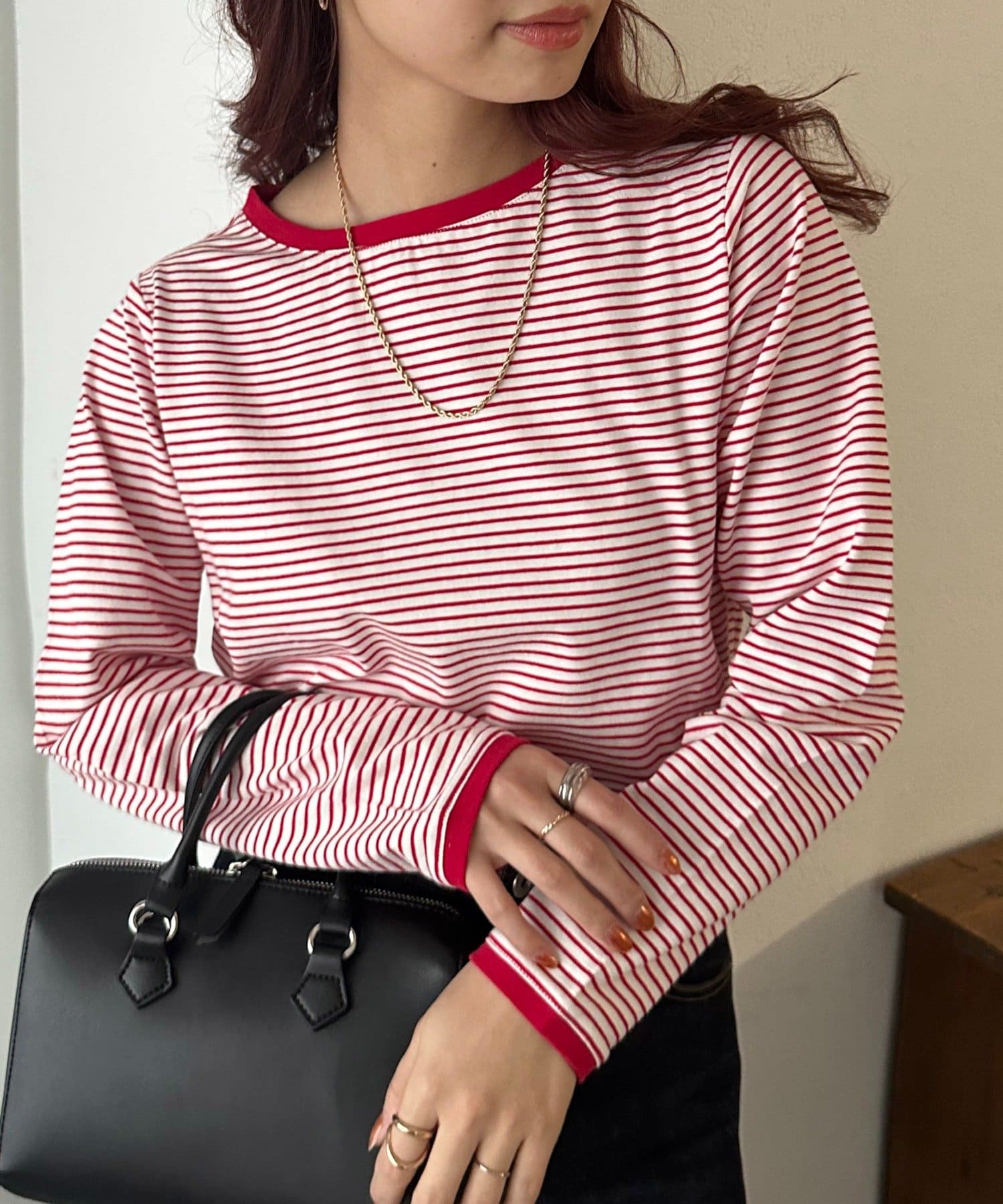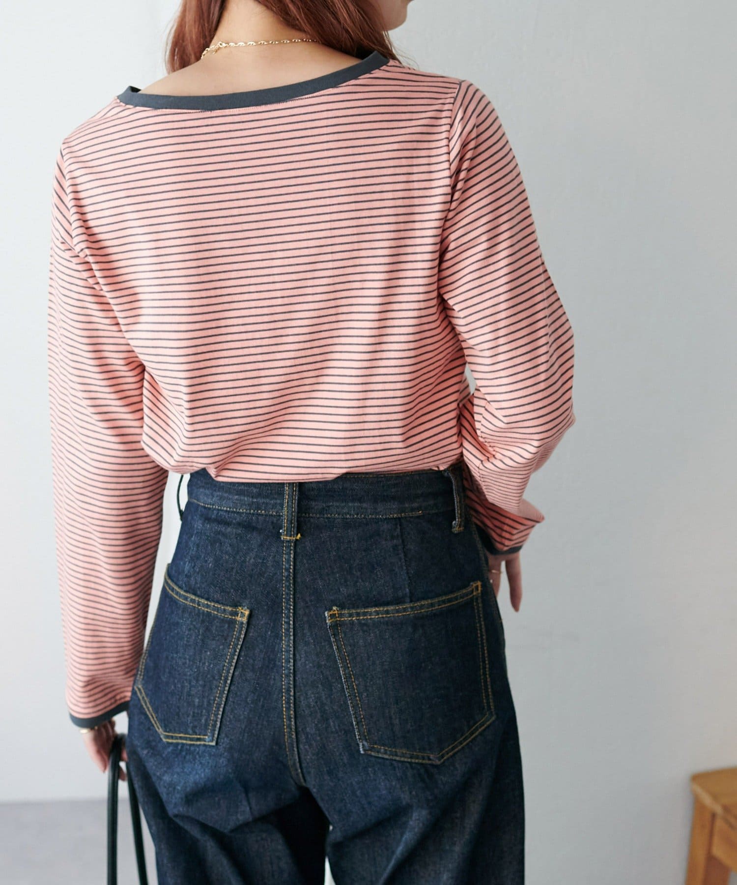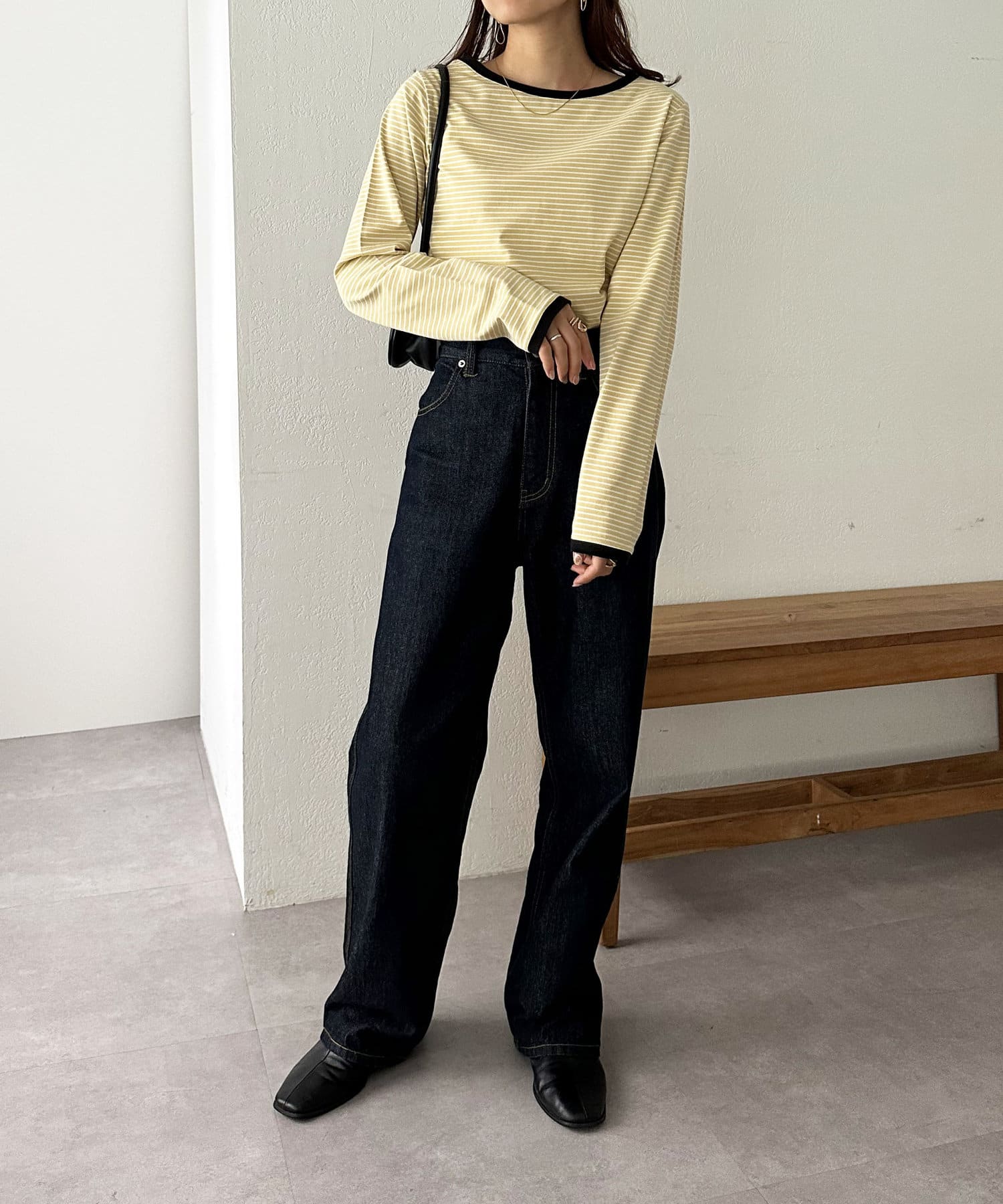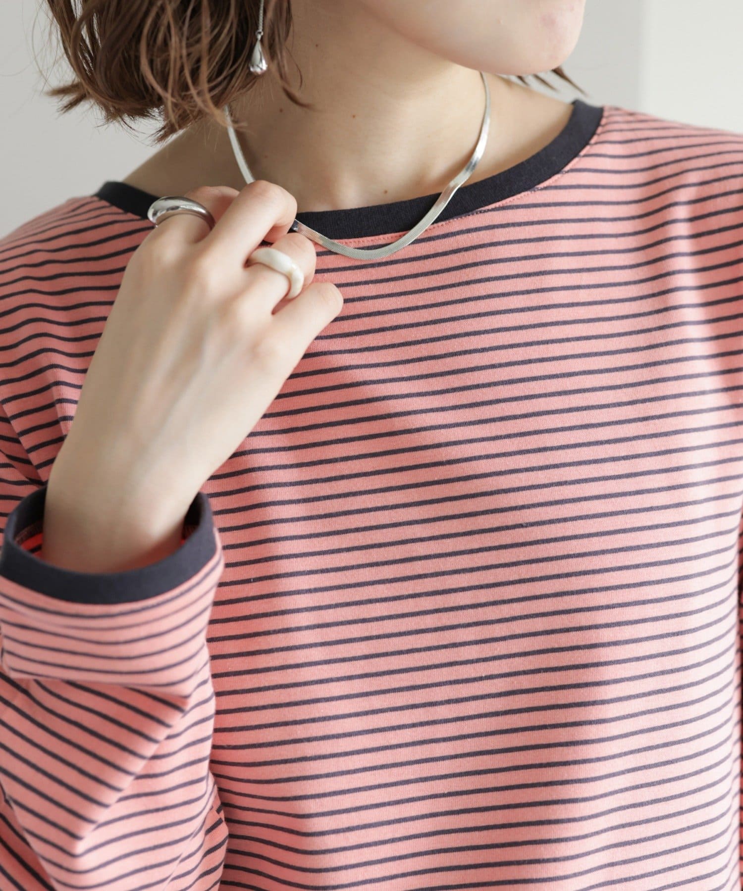 ・細めのピッチで仕上げた旬のボーダー柄と配色使いでアクセントをプラス