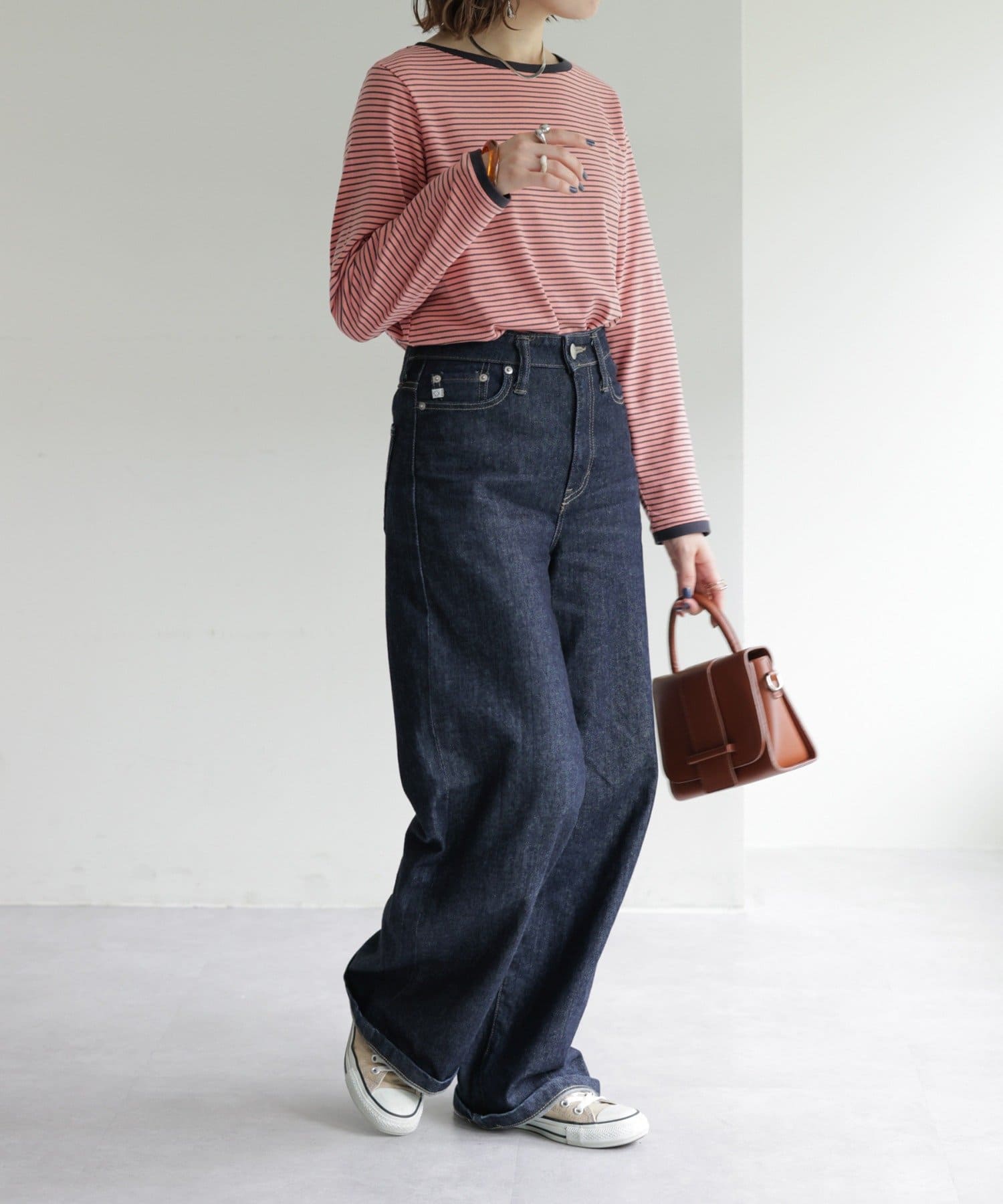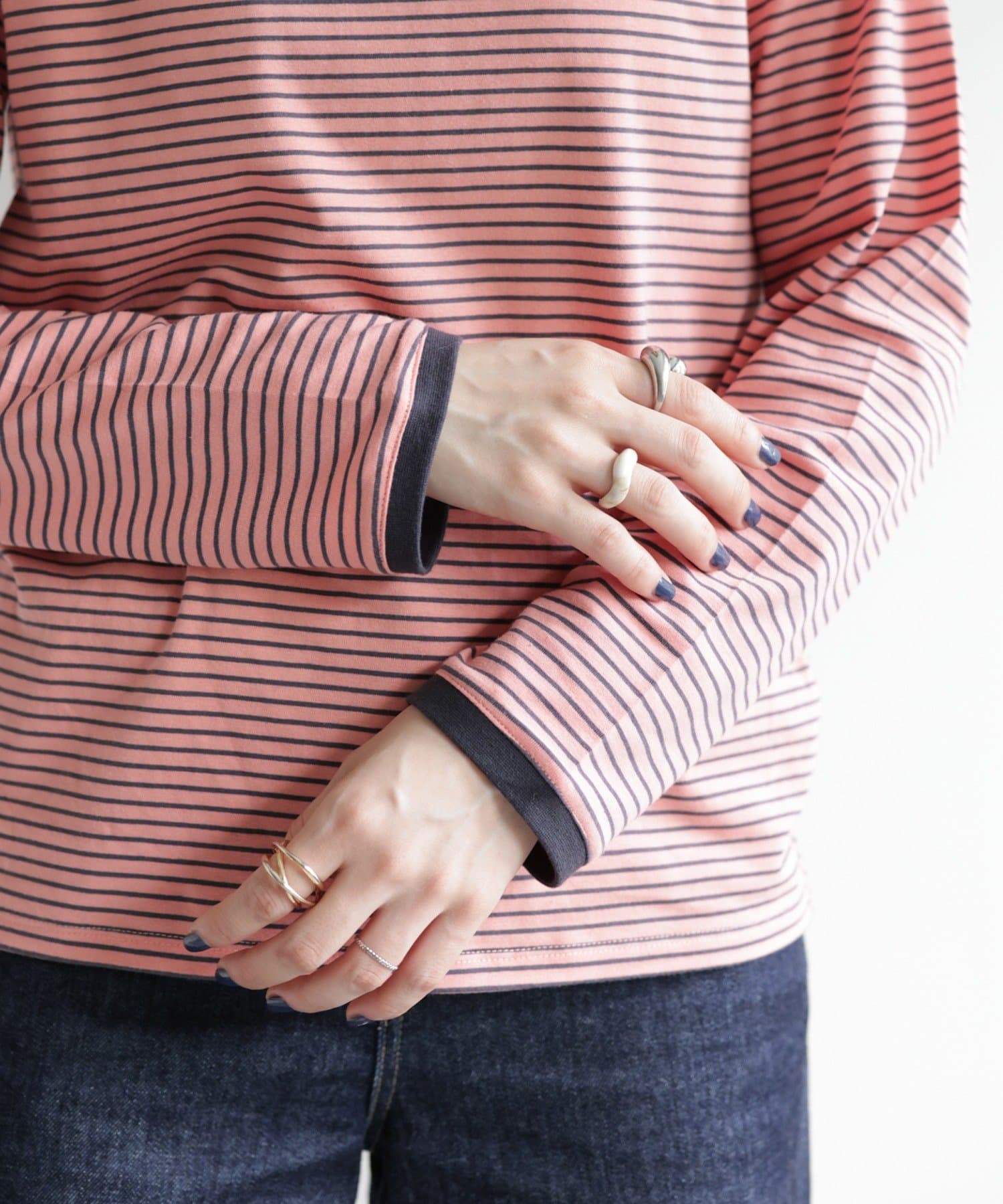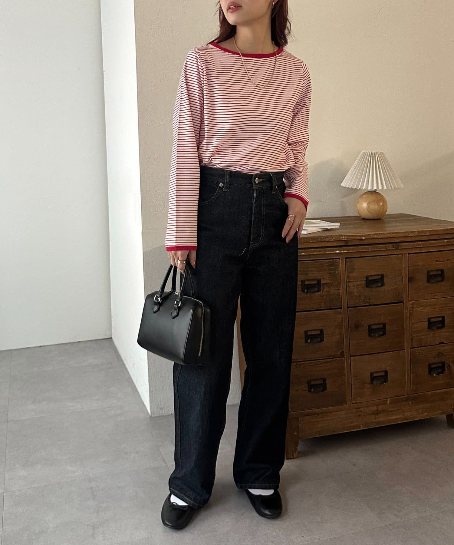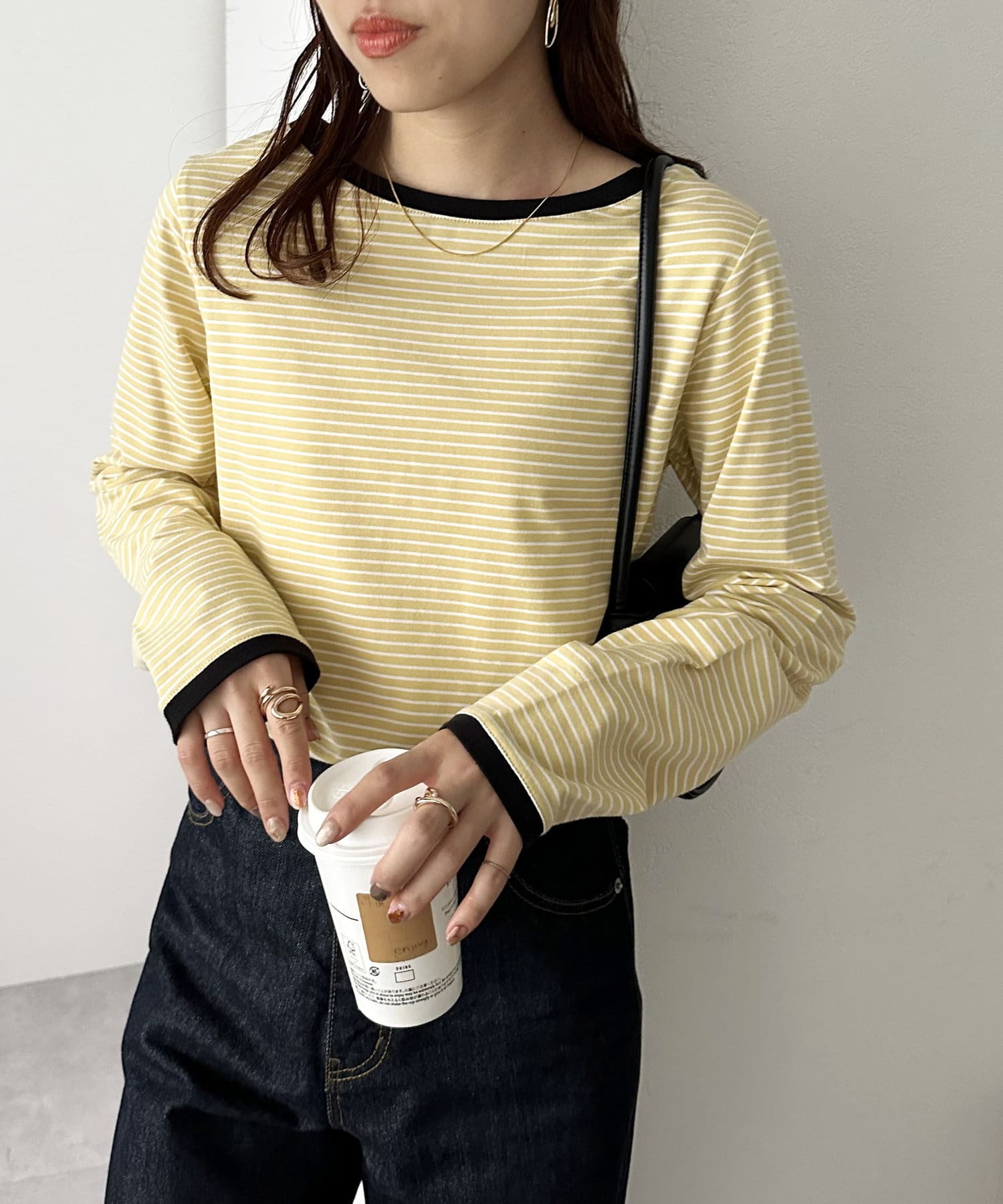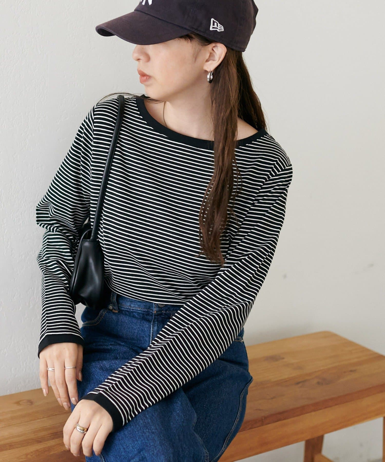 ・細めのピッチで仕上げた旬のボーダー柄と配色使いでアクセントをプラス