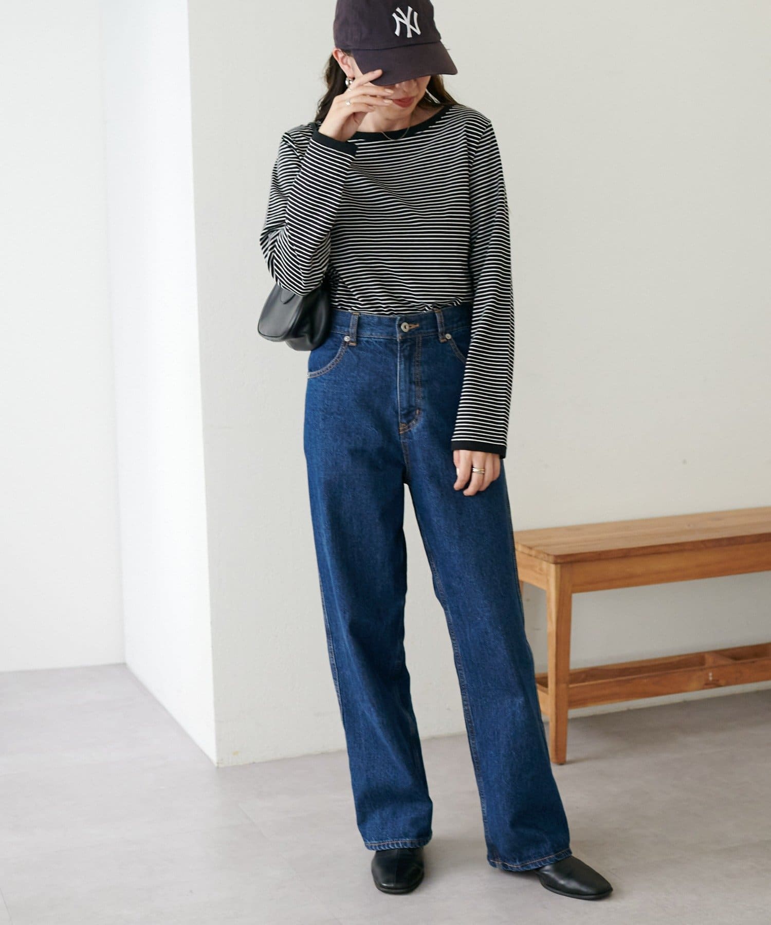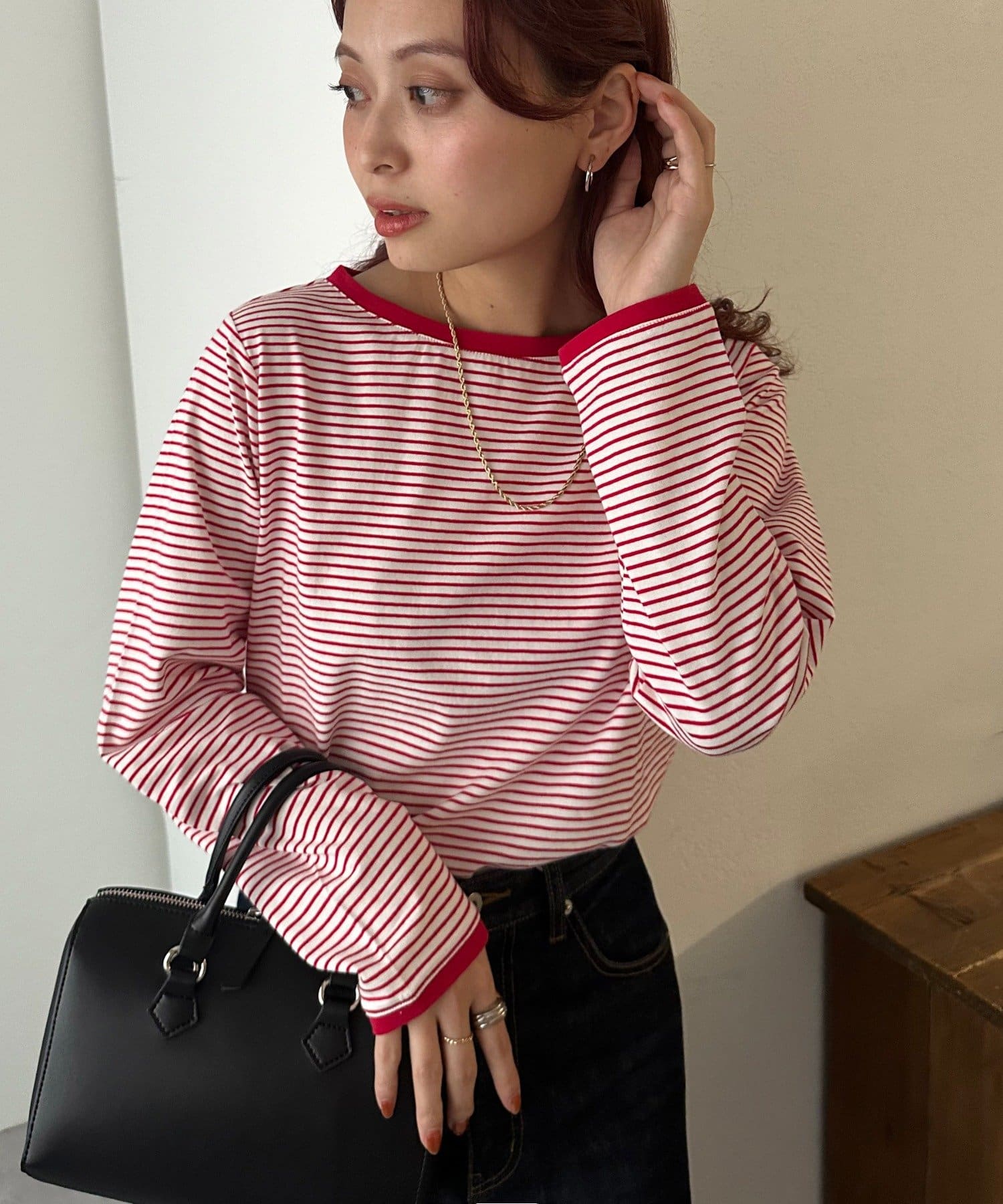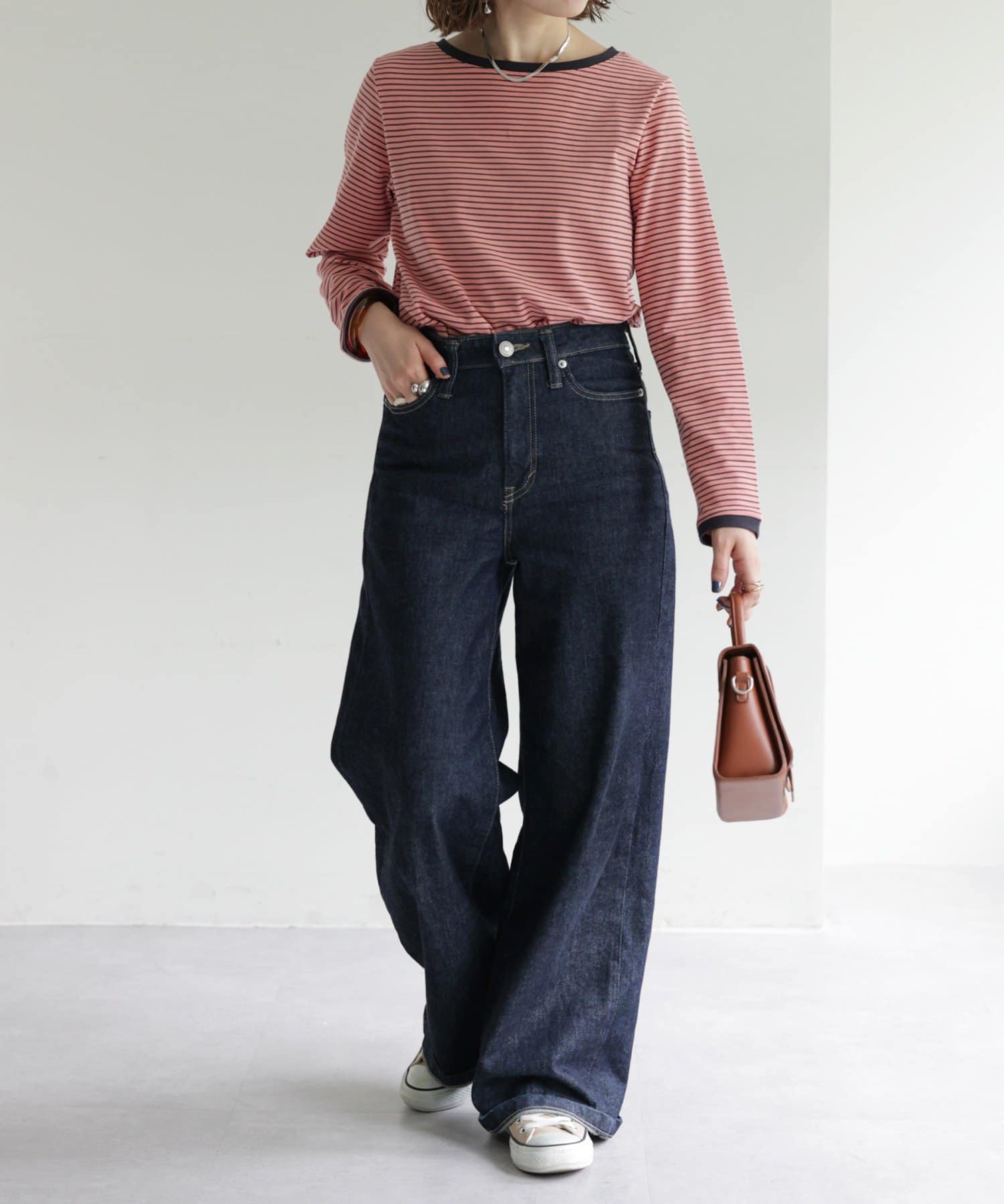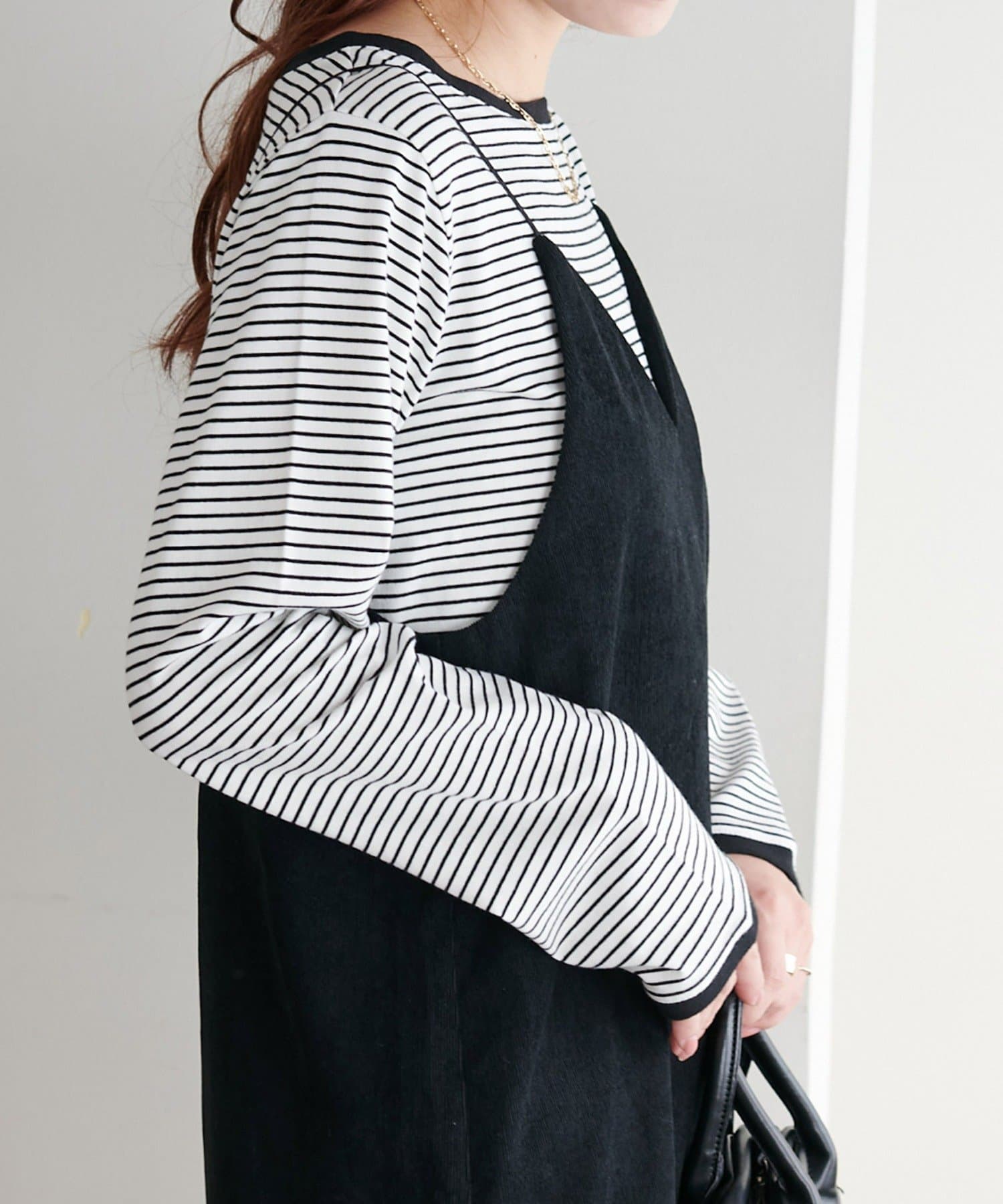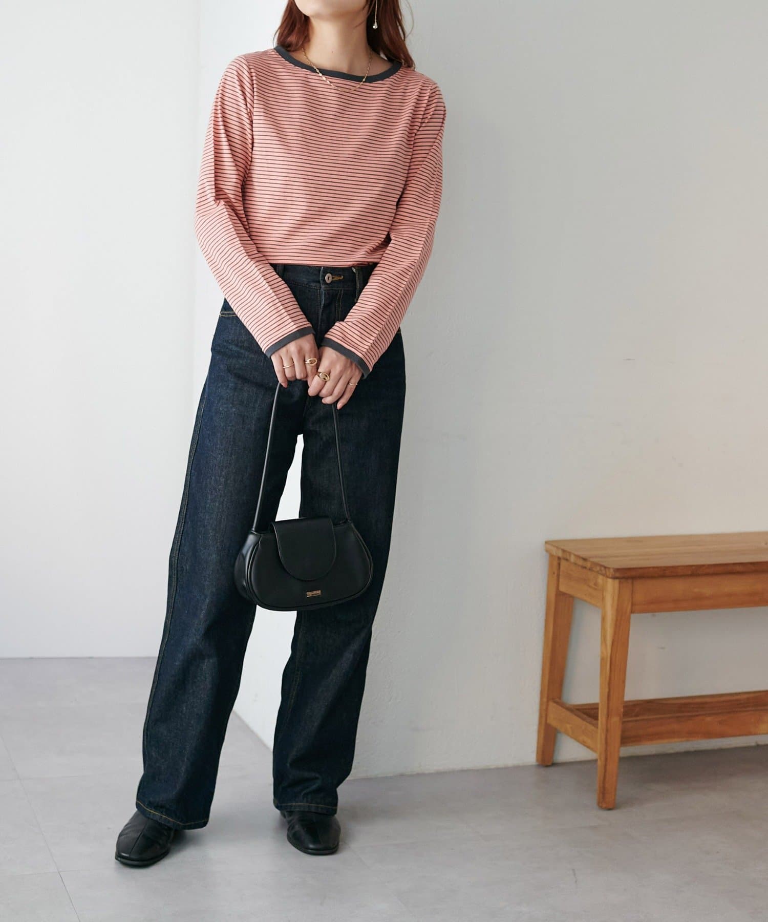 ・細めのピッチで仕上げた旬のボーダー柄と配色使いでアクセントをプラス