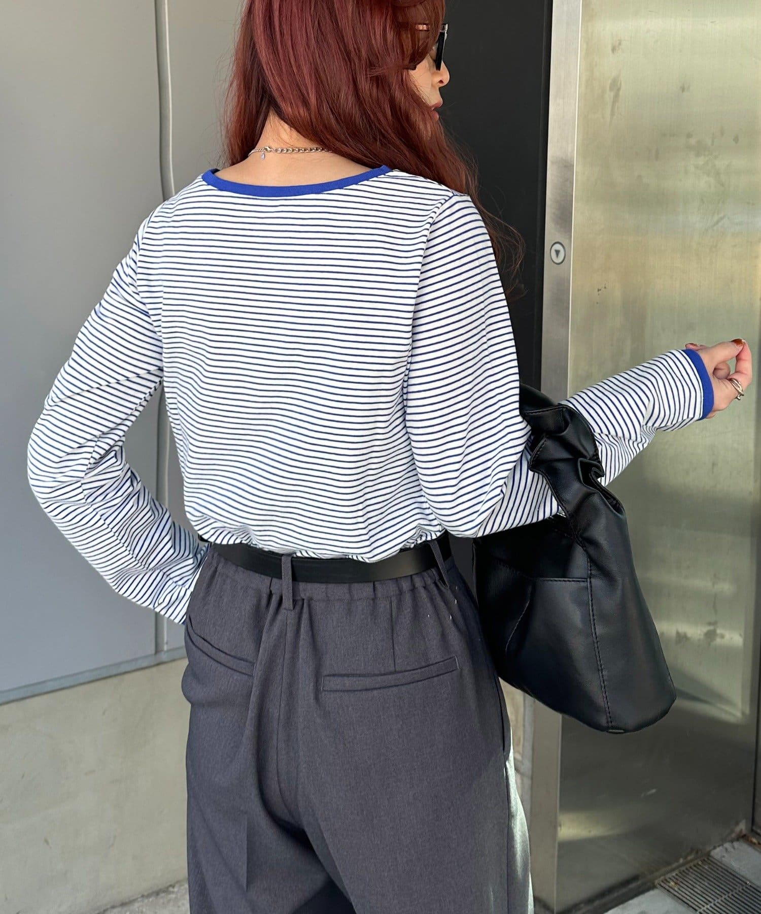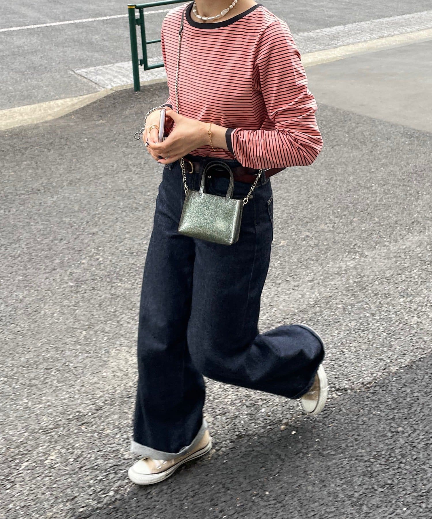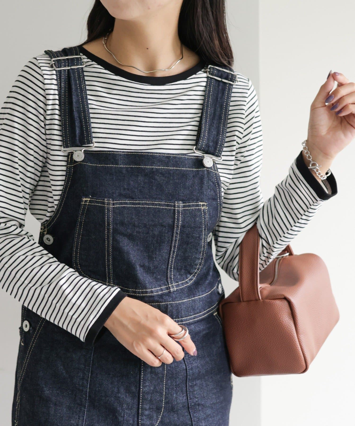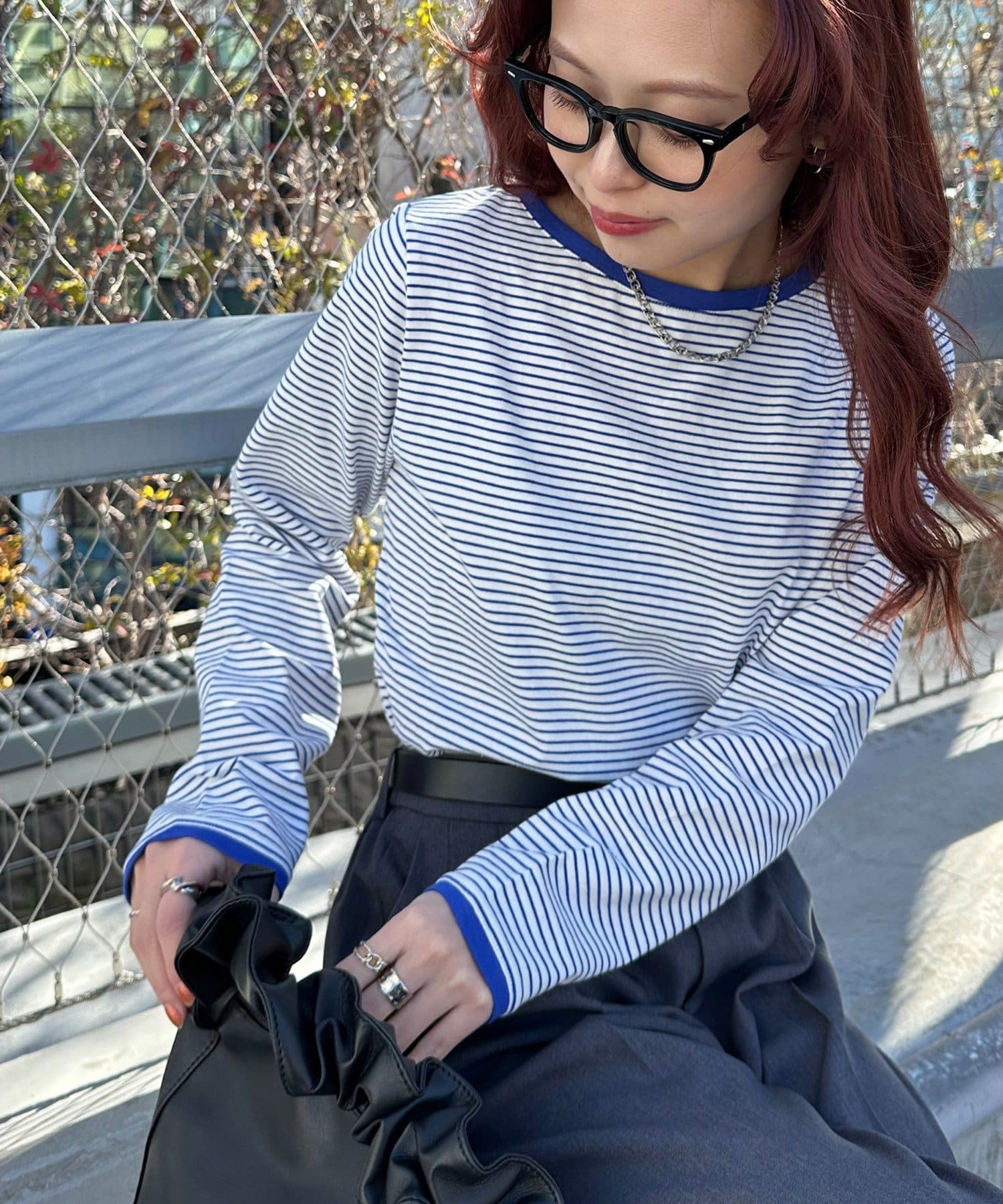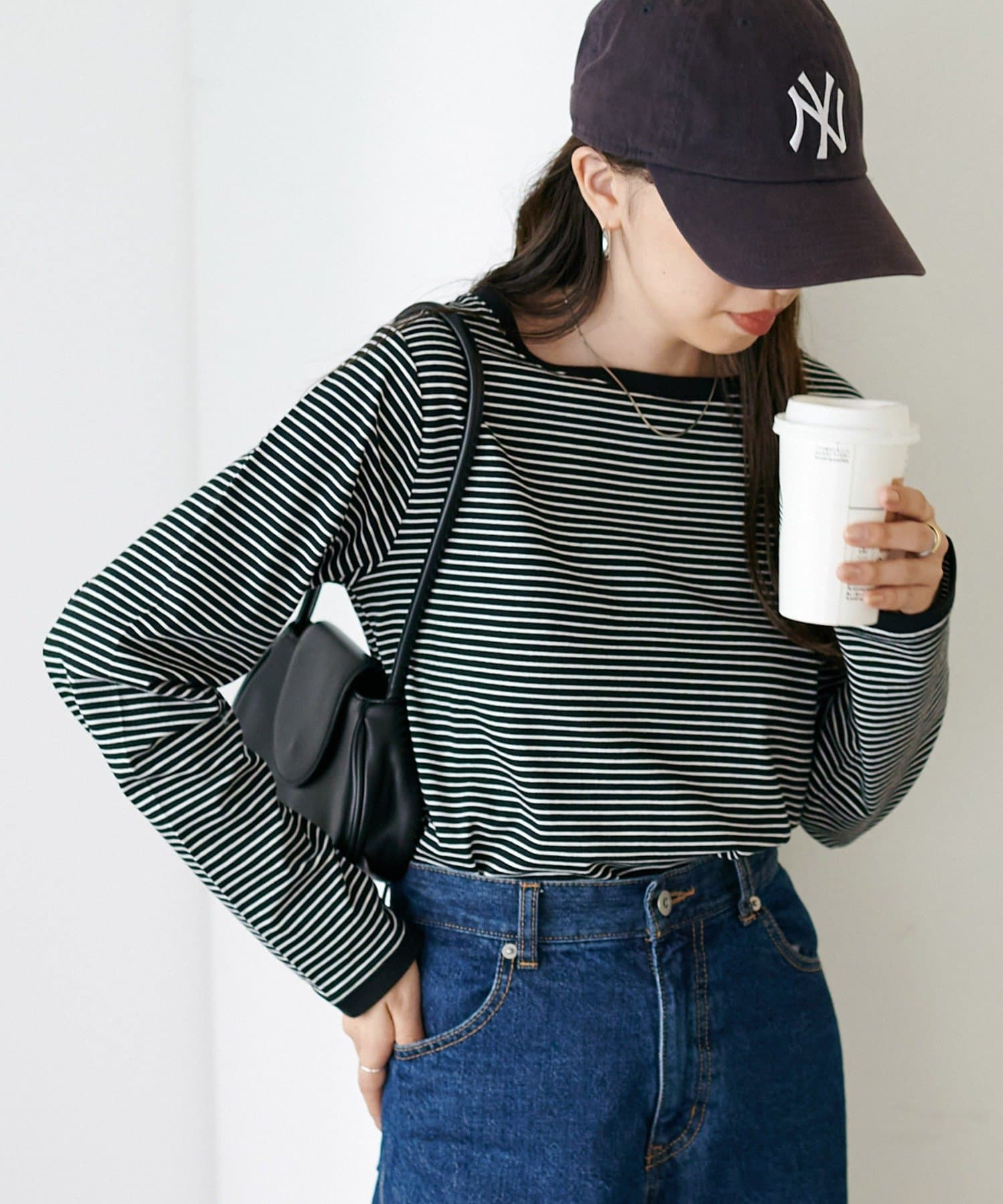 ・細めのピッチで仕上げた旬のボーダー柄と配色使いでアクセントをプラス