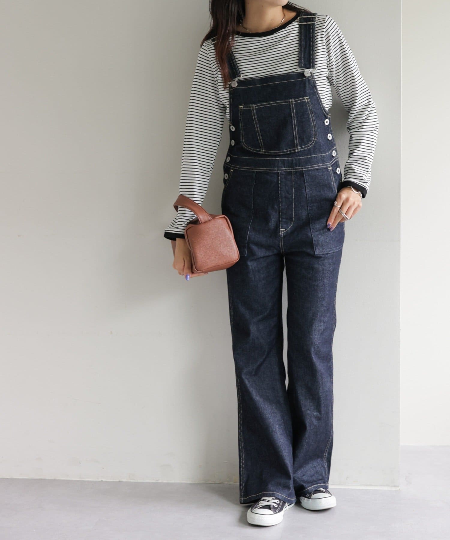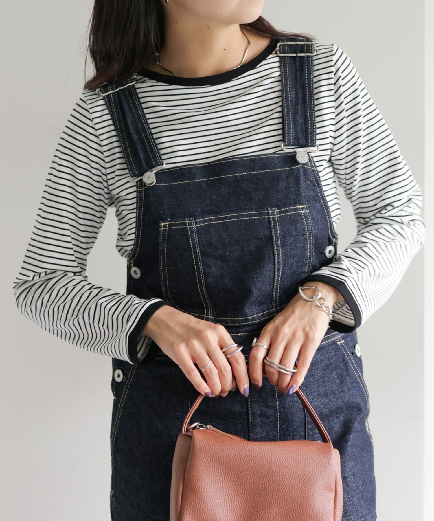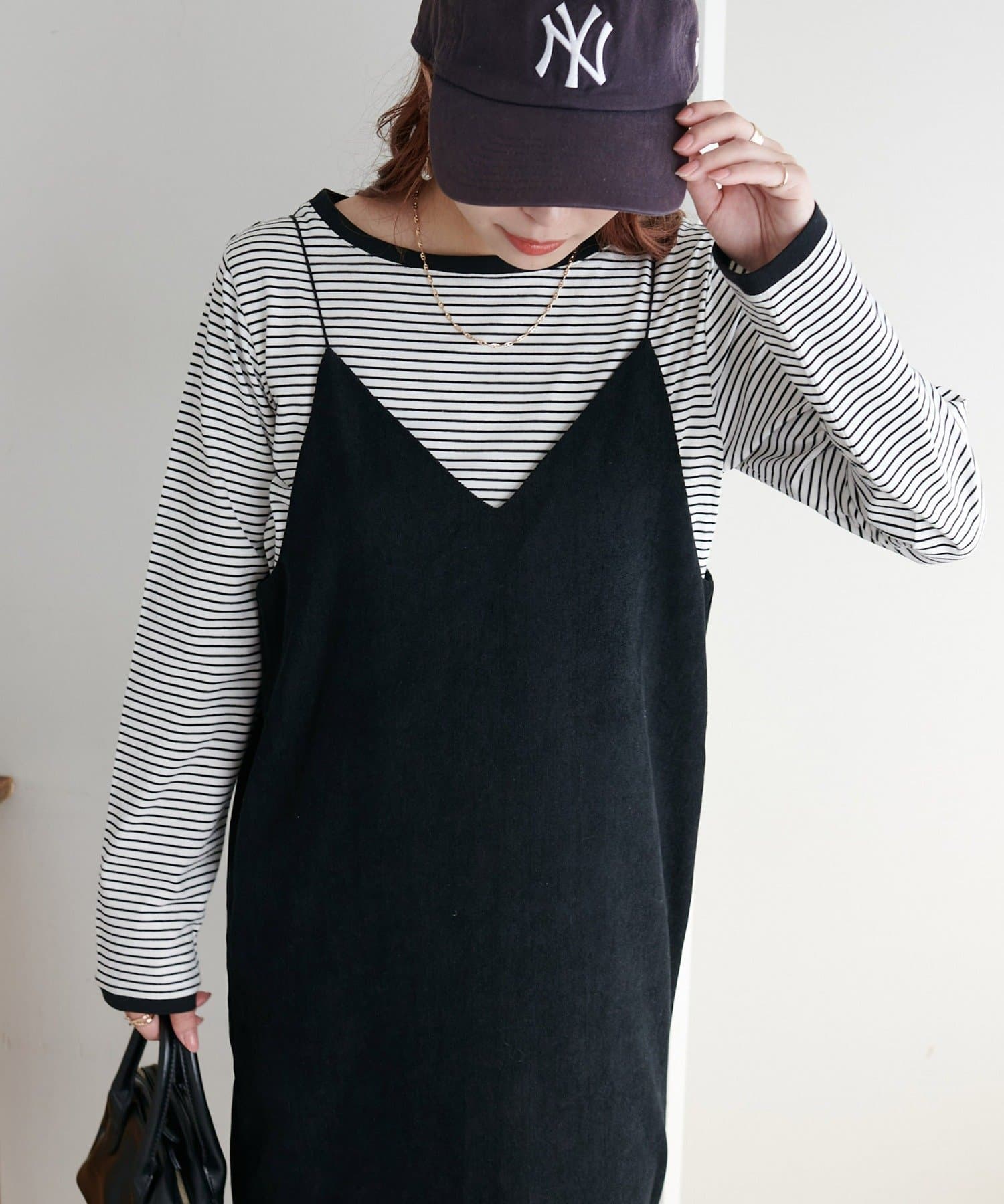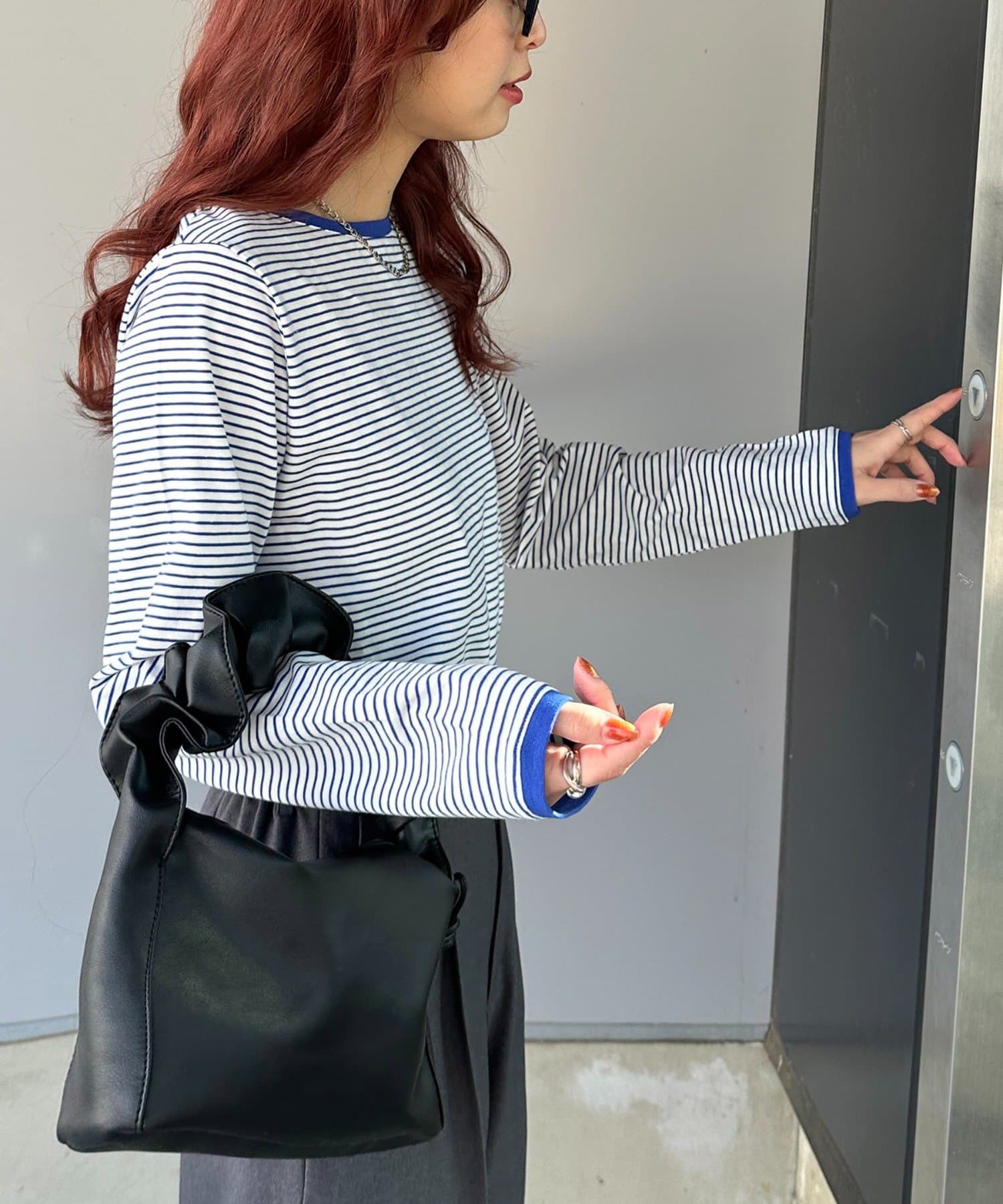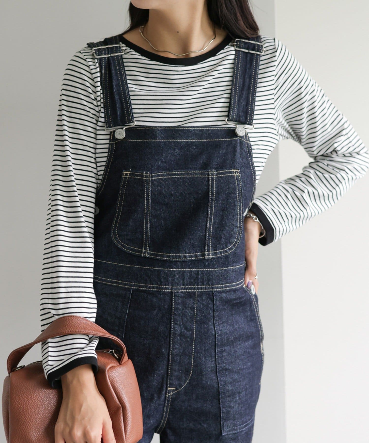 ・細めのピッチで仕上げた旬のボーダー柄と配色使いでアクセントをプラス