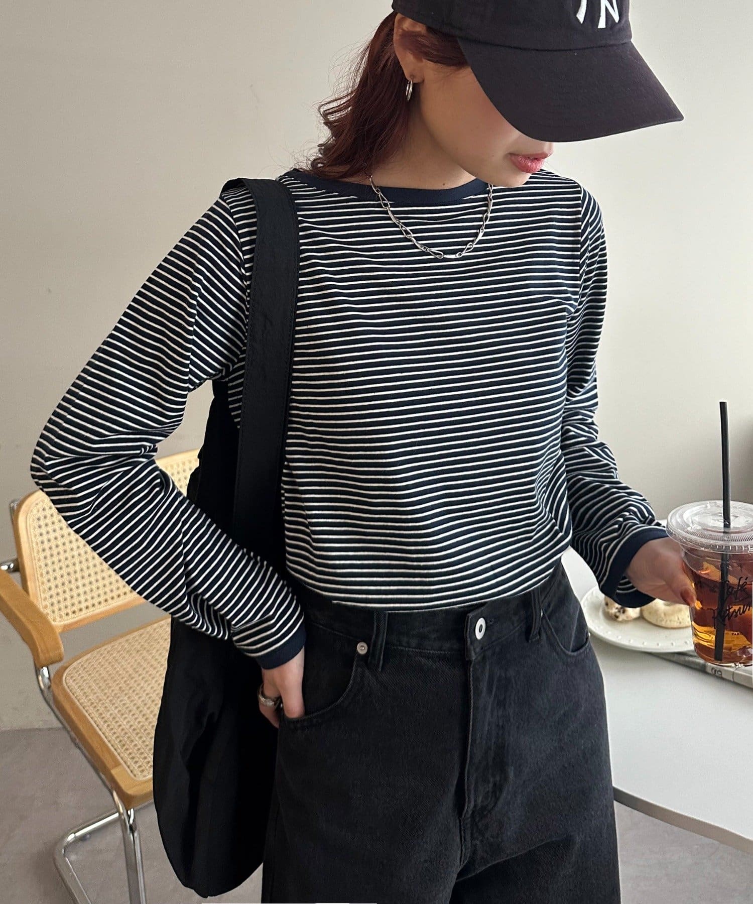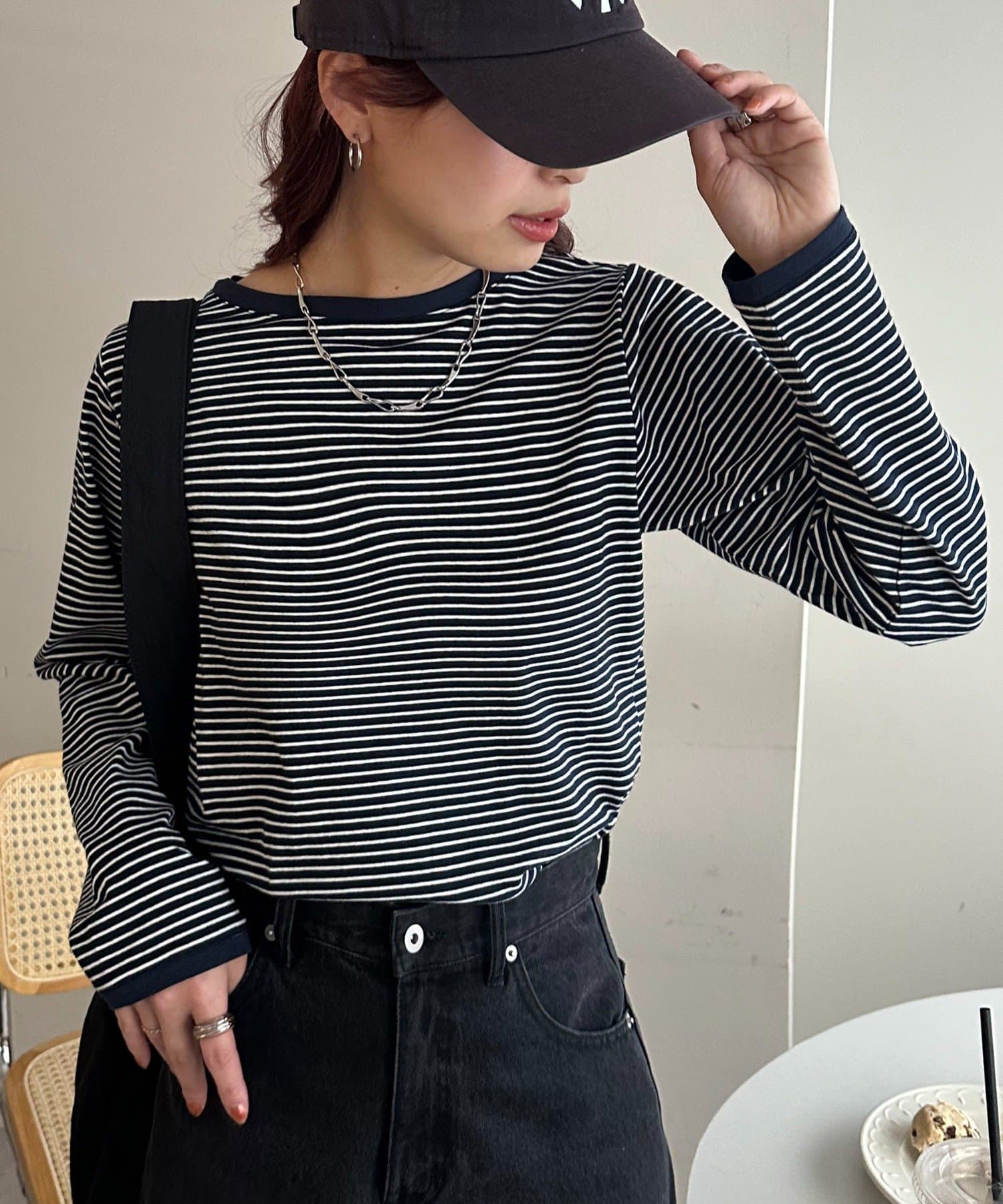 シンプルなのにトレンド感がある、細ボーダーTシャツ