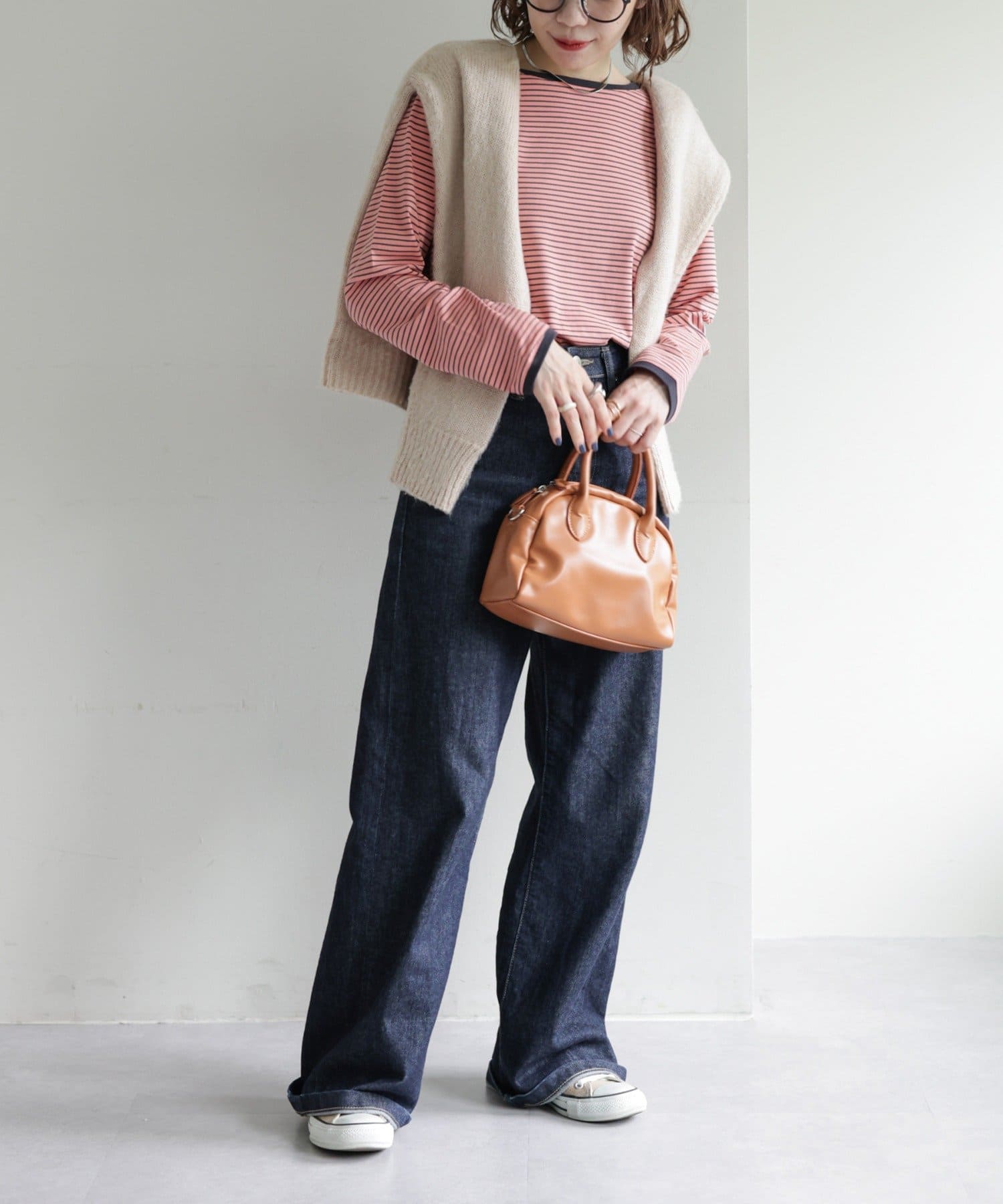 160cmスタッフ:パンツやスカート、どんなボトムスにも合わせやすく、デイリーコーデの幅が広がるのでおすすめです◎