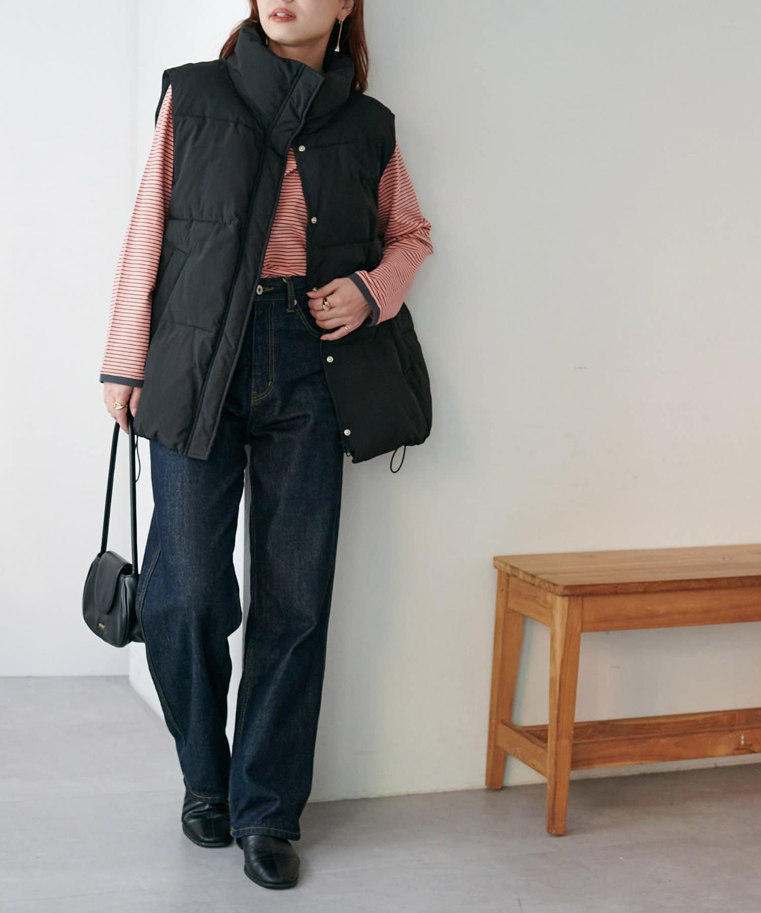 155cmスタッフ:程よくフィットするシルエットで体のラインをきれいに見せつつ、ストレッチ入りの柔らかな生地で快適に着られます!