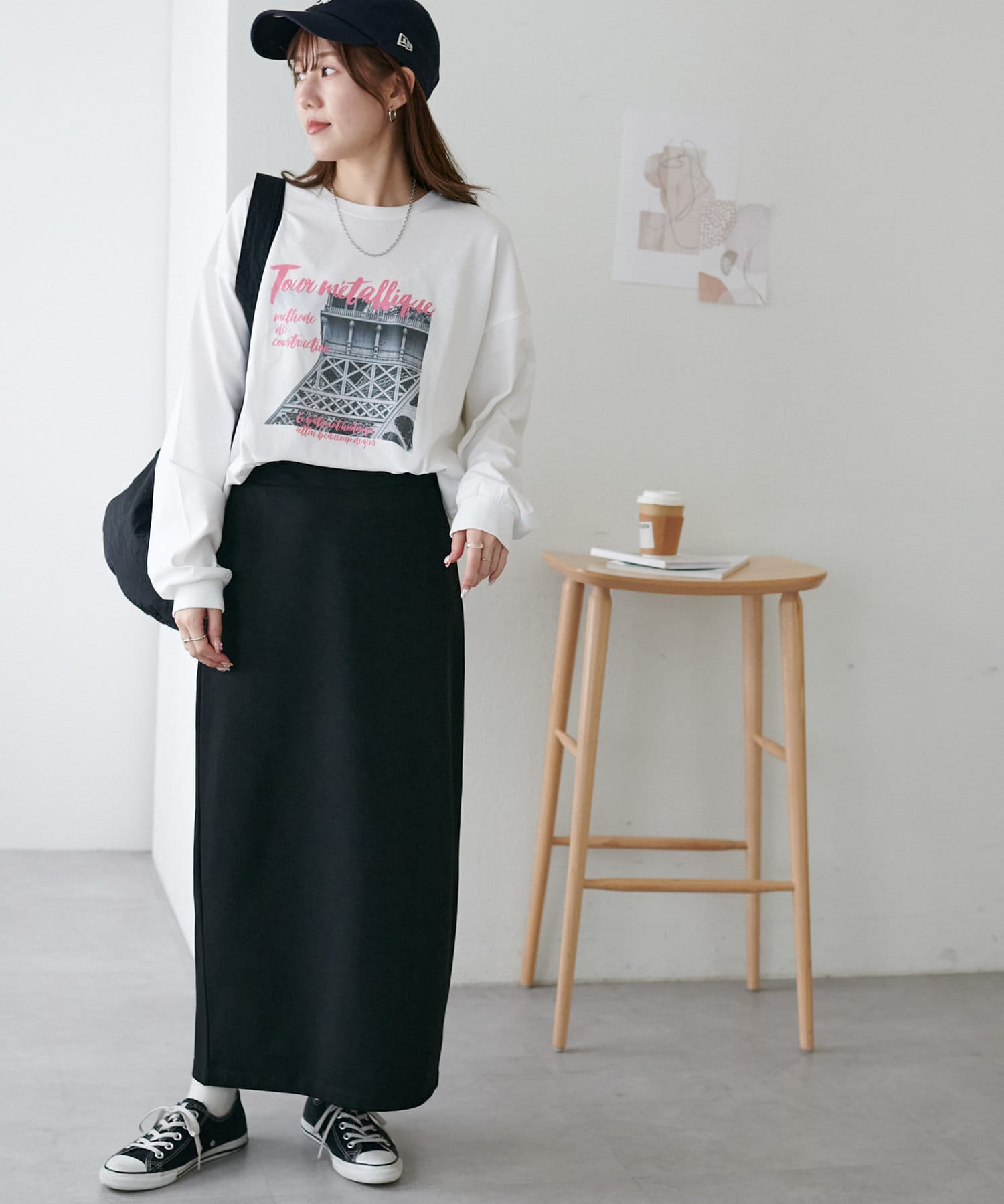 157cmスタッフ:フォトプリントが目を引き、1枚で着映えします。