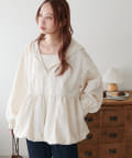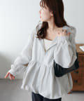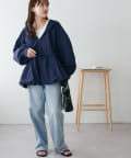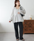 162㎝スタッフ: ゆったりとした着心地で、体型カバーをしつつもウエストから広がるバルーンペプラムがスタイルアップさせてくれます!