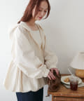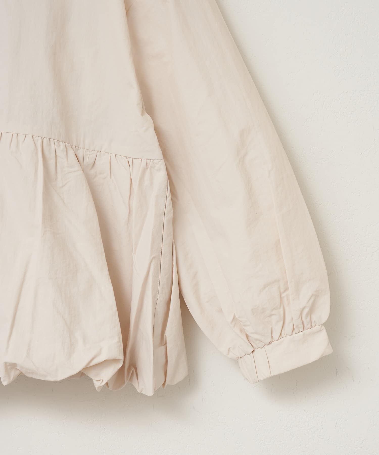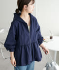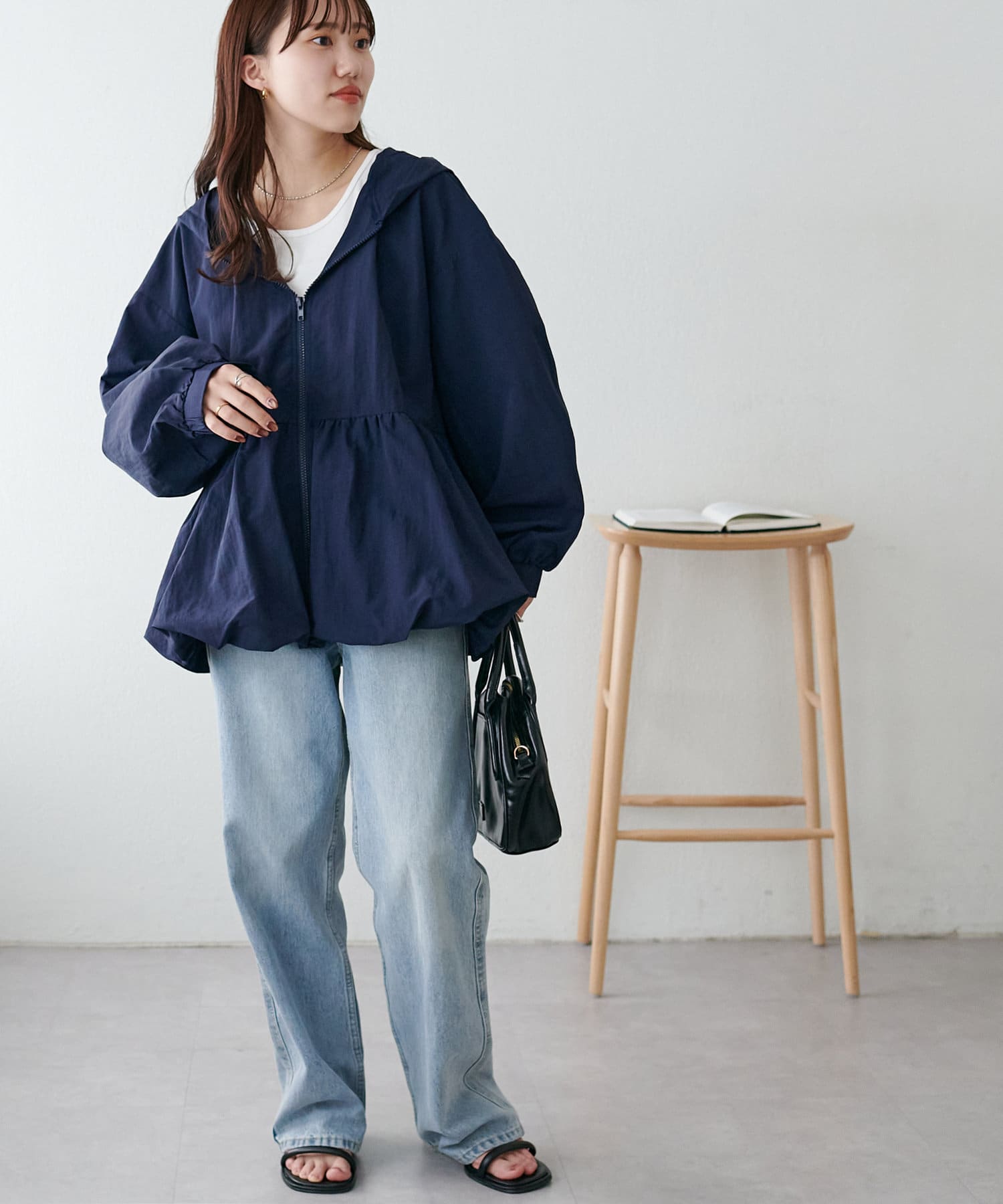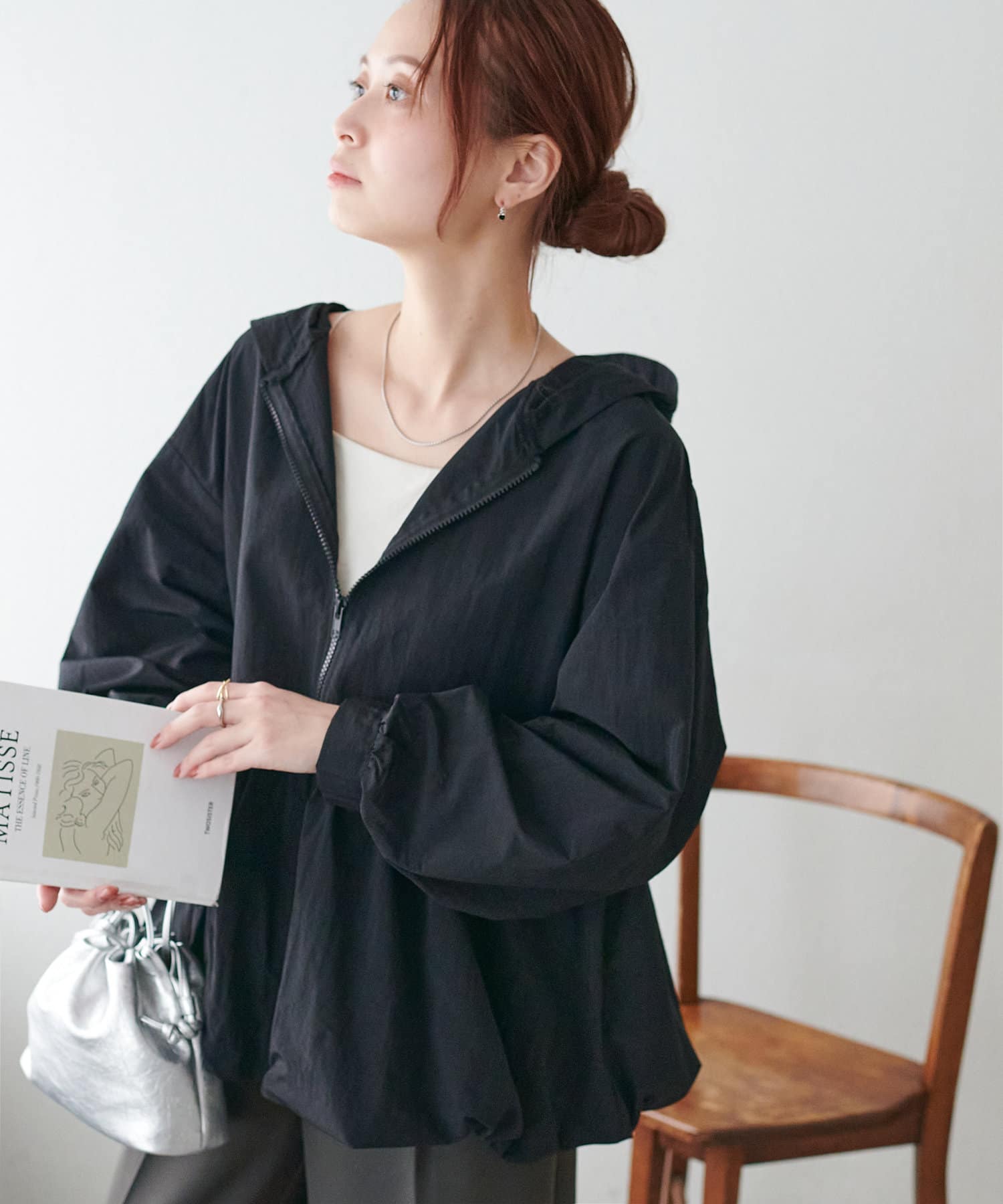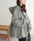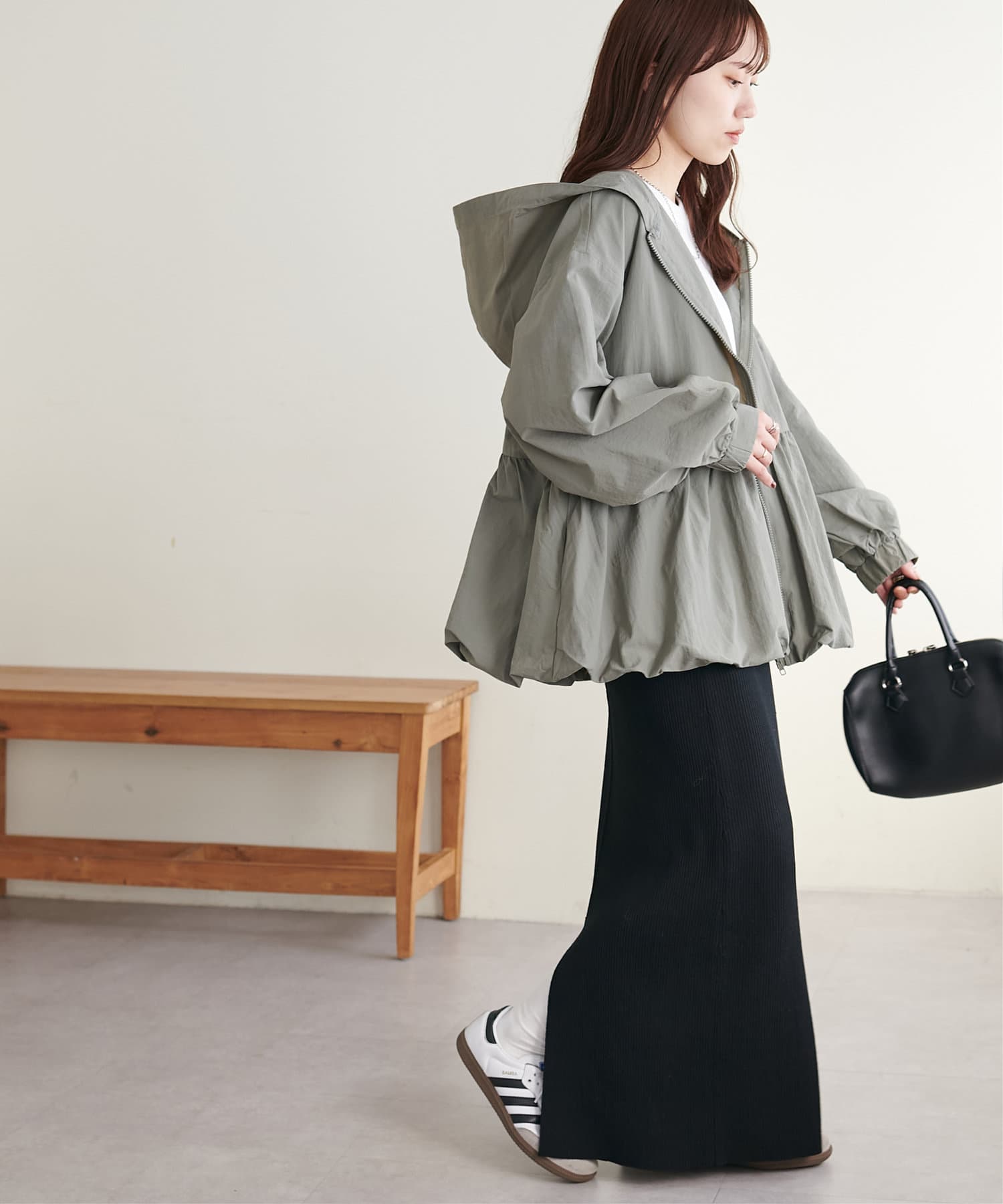 立体的なボリュームスリーブとウエストから広がるバルーンペプラムが特徴のアイテム!1枚羽織るだけで華やかな印象を与えてくれます。裾はバルーン仕立てのふんわりとしたシルエットで、着映え効果も発揮してくれます。フード付きで、急な天候の変化にも対応できるのが嬉しいポイントです。