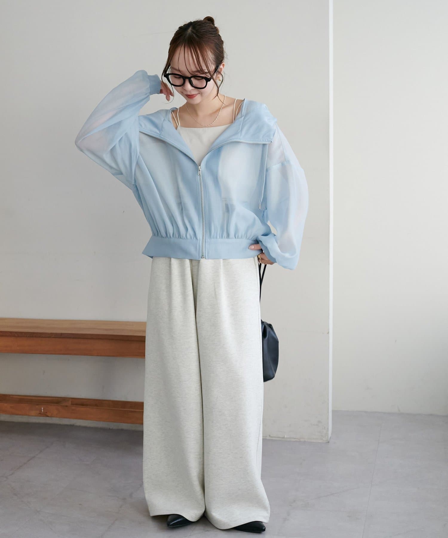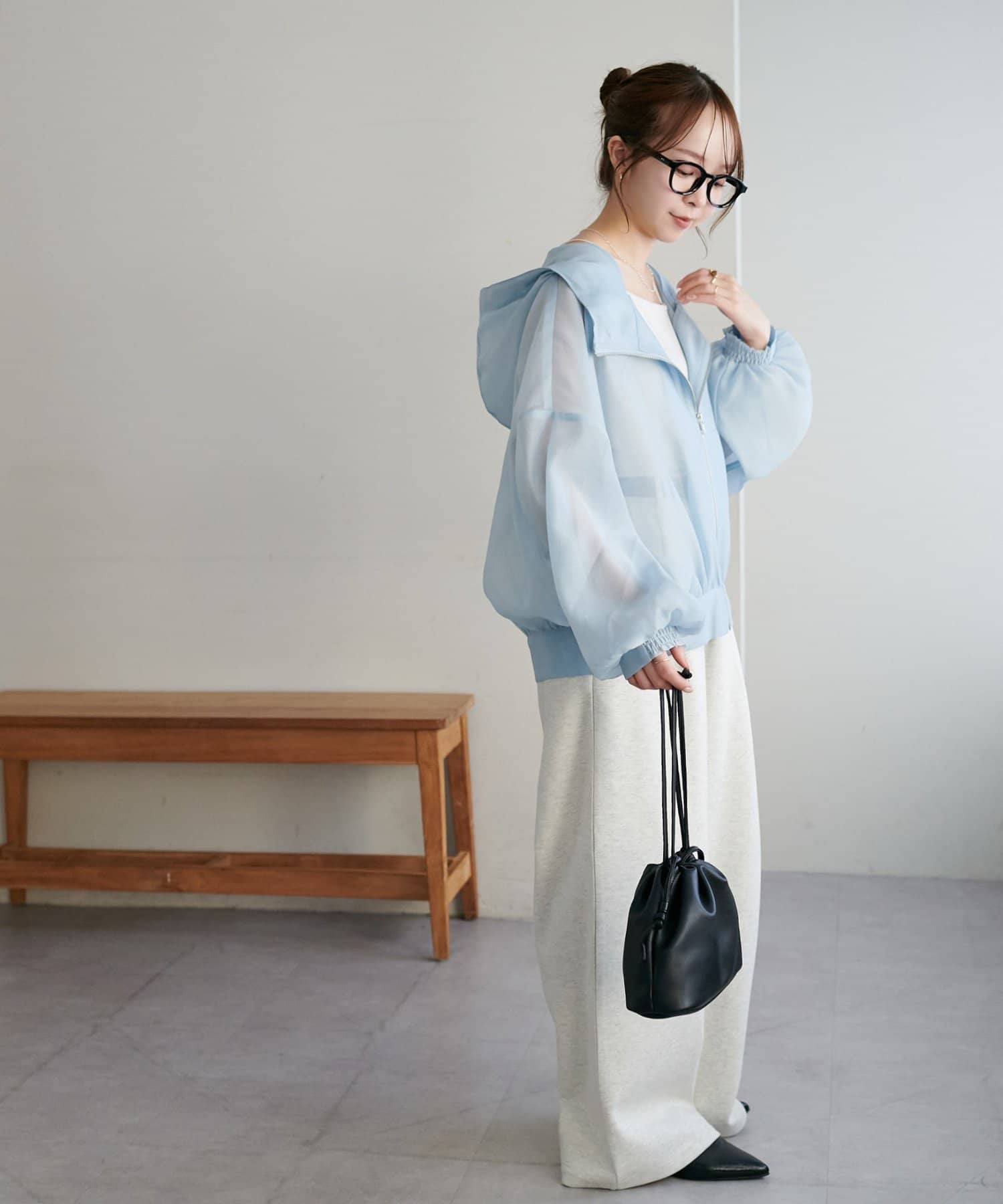 ・透け感のある素材でスポーティーになりすぎず、フェミニンなワンピースやロングスカートと好相性