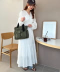 コンパクトな見た目ながら内・外側合わせて11個のポケットがあり、圧倒的に収納力の高いトートバッグです。程よくふっくらとした柔らかい印象のパフィーデザインも特徴の1つです。また、取り外し可能なアジャスター付きのショルダー紐も付属している為、シーンに合わせて持ち方を変えられます◎さらに、背面部分がキャリーケースのハンドルに通せるキャリーオンバッグ仕様になっている為、旅行時にもピッタリです♪撥水加工も施され、天気を気にせずコーデに合わせることができるのも魅力。カラー展開はブラック、ベージュ、ネイビー、ブラウン、チャコールグレーのベーシックカラー5色です。