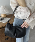 フロントのタックデザインと、コロンとした丸みシルエットが上品さと女性らしさをプラスするだけでなく、高見えも叶えます◎マチが9.5㎝としっかりあるので、コンパクトな見た目ながら収納力抜群です♪