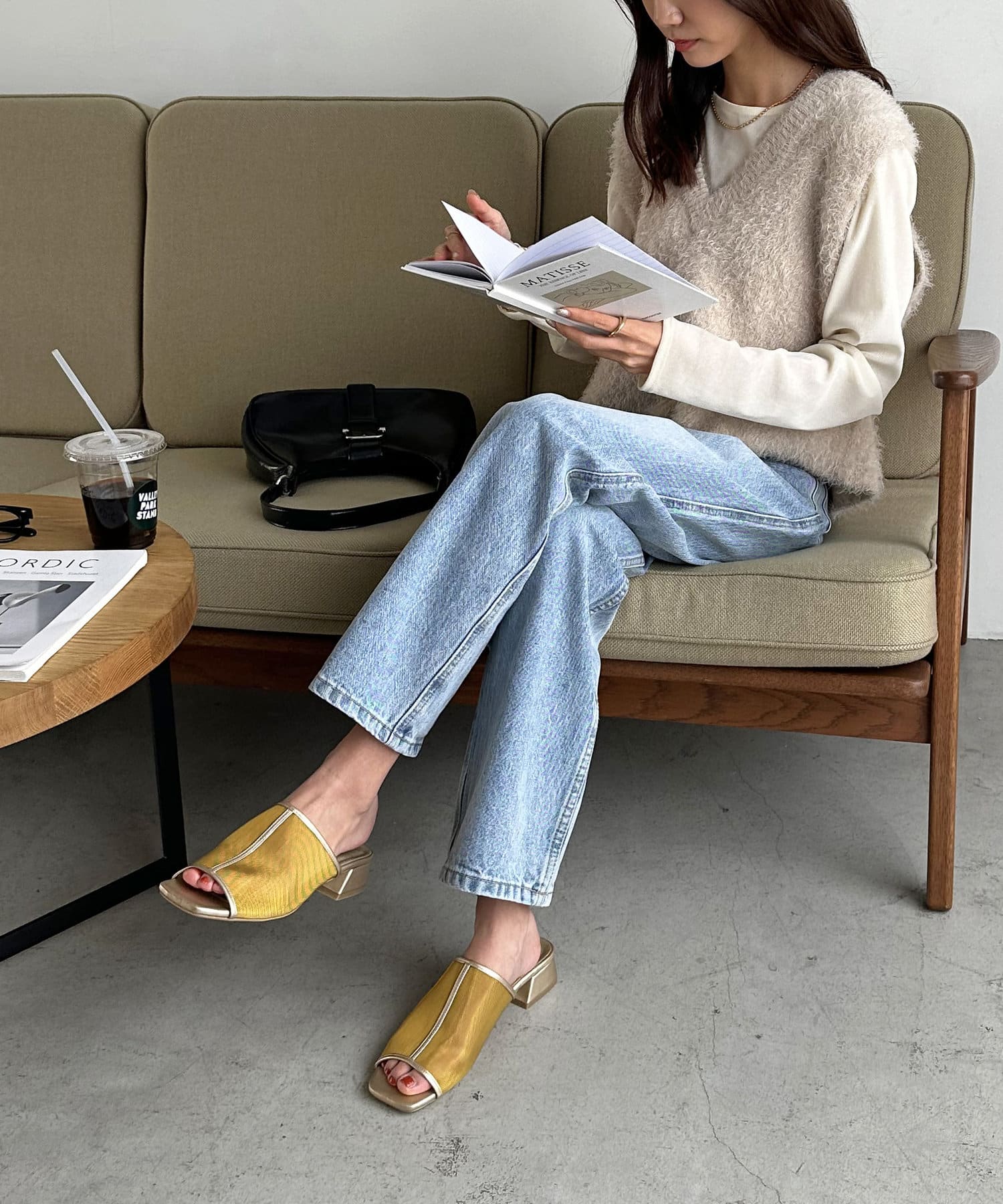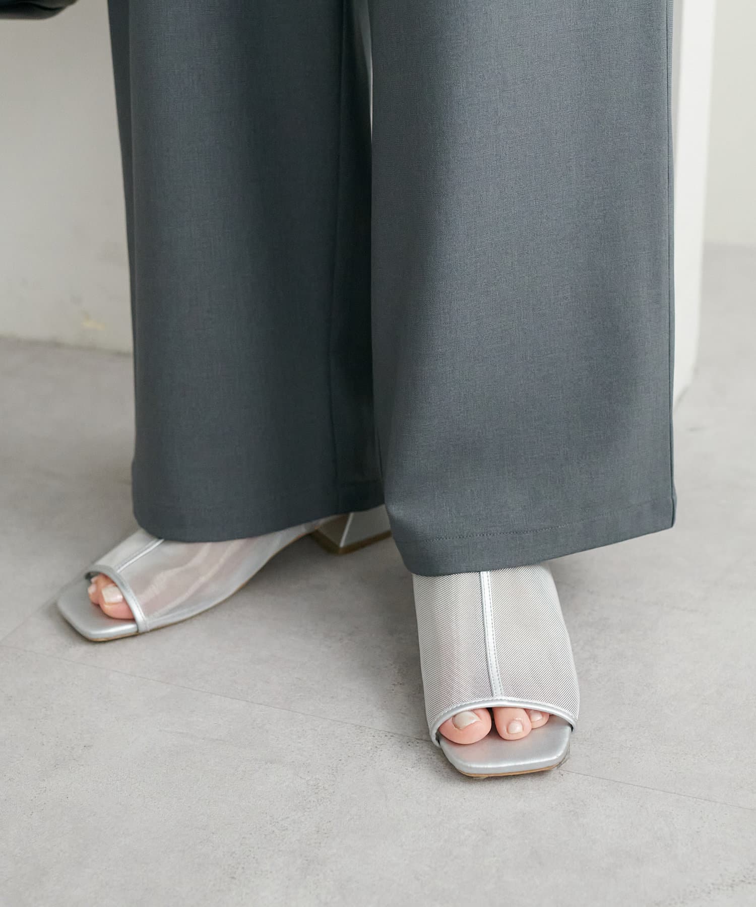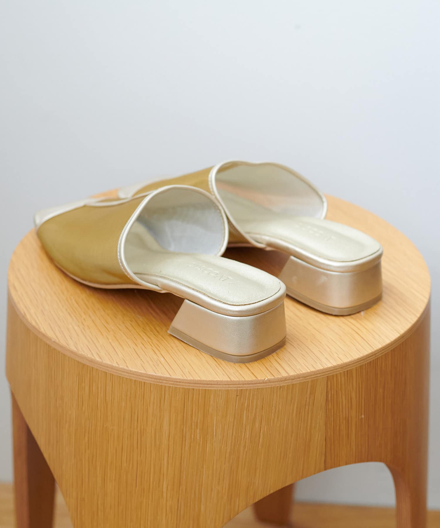 夏コーデの定番 “シアーアイテム”を足元から‼透け過ぎないチュール素材で、程よい抜け感と素肌感を演出してくれます♪ヒールは3㎝と高すぎない高さの台形ヒールで安定感があり、長時間履いても疲れにくいです。また、程よくスタイルアップも叶います◎サッと気軽に足入れでき、デイリー使いにピッタリなアイテムです。チュール素材ですが、きれいめスタイルだけでなく、デニムなどのカジュアルコーデとも相性抜群です◎