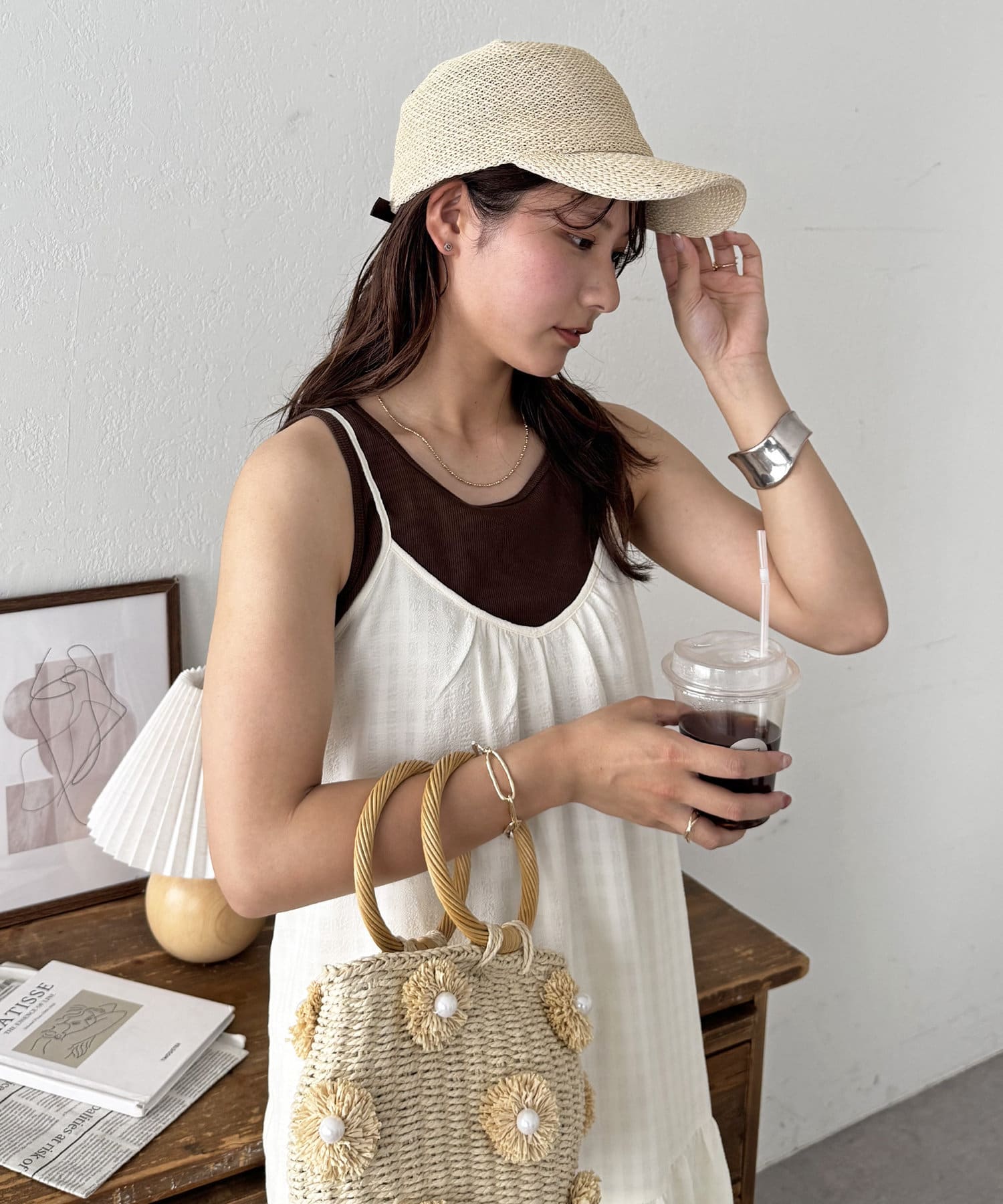 通気性に優れたペーパー素材を使用し、軽やかなかぶり心地を実現したキャップ。ナチュラルな風合いとシンプルなデザインが、カジュアルからフェミニンまで幅広いスタイリングにマッチします♪広めのつばが日差しをしっかりカバーしてくれるので夏の紫外線対策もばっちりです◎軽量で持ち運びやすいので、旅行やアウトドアシーンのお供にもぴったりです。
