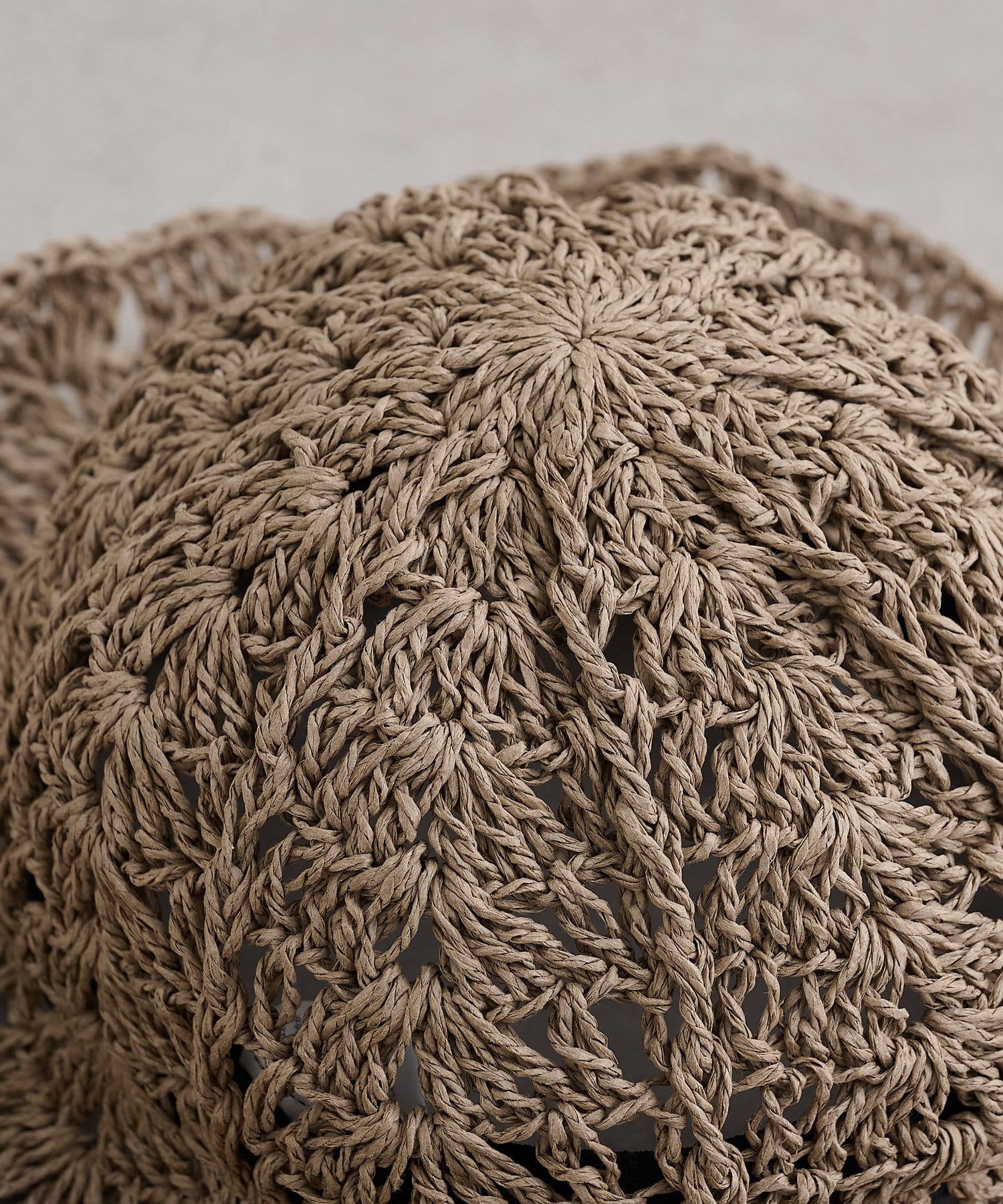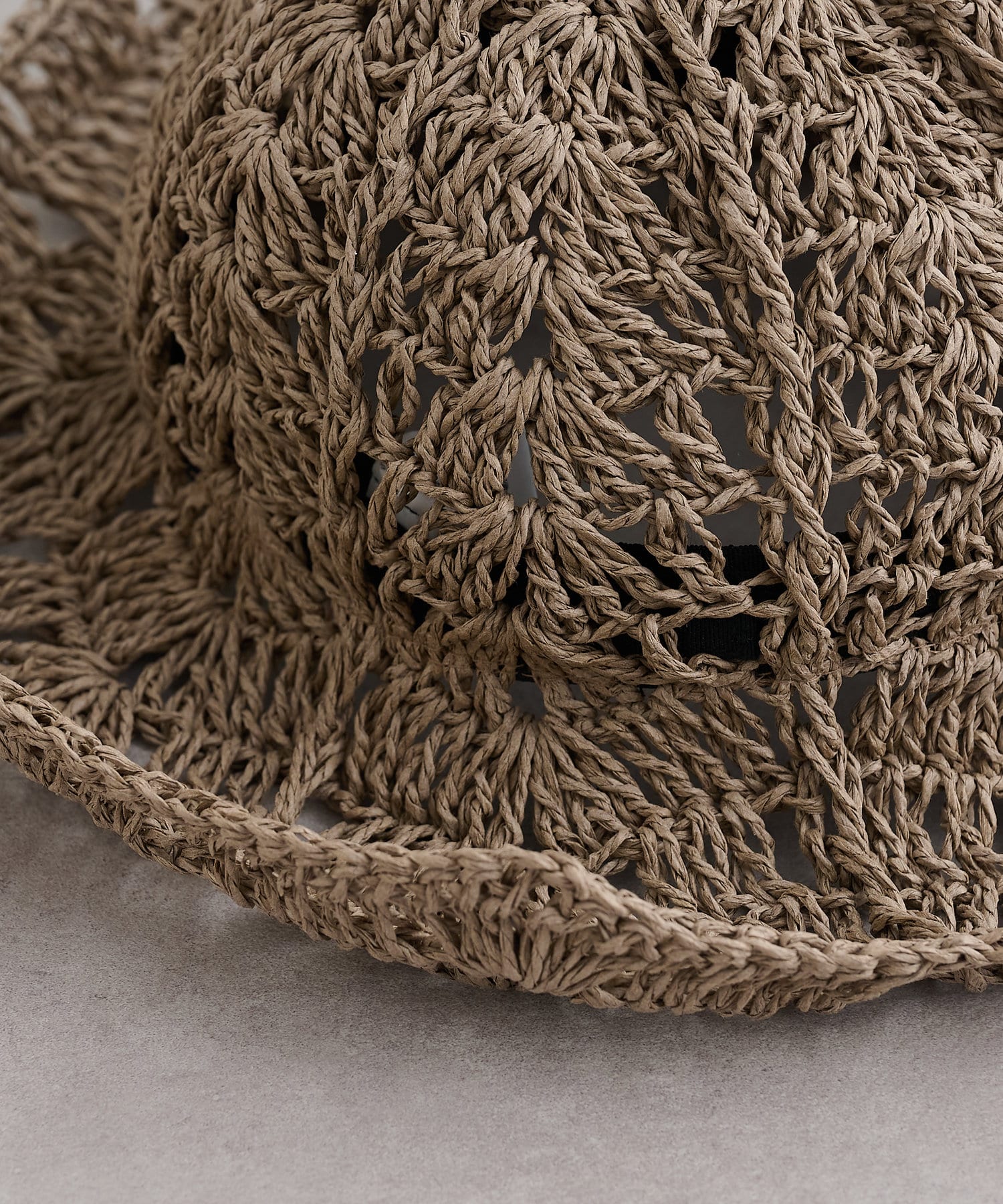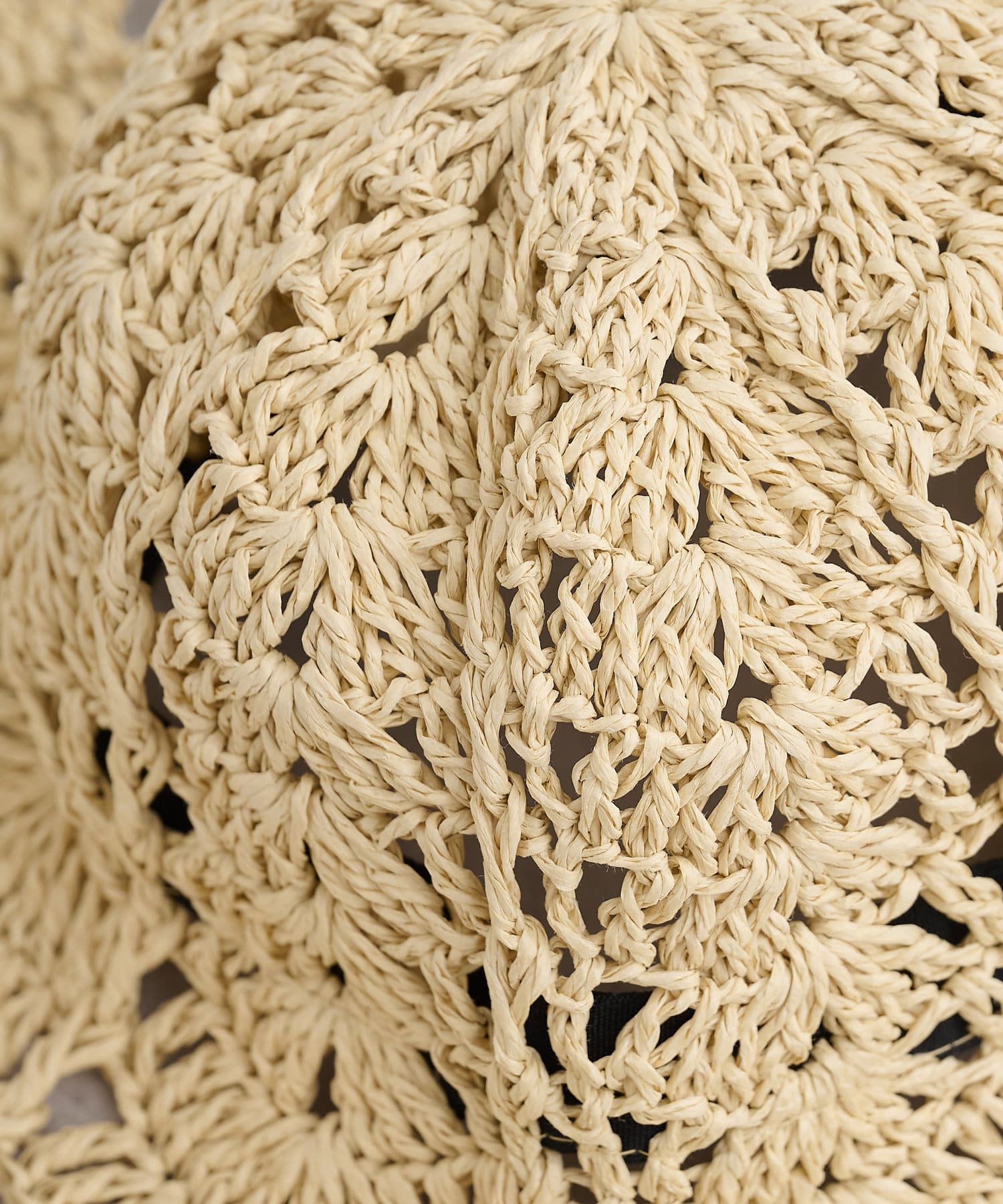 通気性の良いペーパー素材で、蒸れにくく、暑い季節も心地よく過ごせます。ナチュラルな風合いと、ちょっぴり甘めなシルエットが大人のかわいさを引き立て、ワンピースやブラウスなど、女性らしい装いにも相性バッチリ♪つば先のニュアンスがしっかりあるので、日よけ対策としても安心◎くるっと折りたたんで持ち歩ける軽さも、夏のお出かけに嬉しいポイントです。