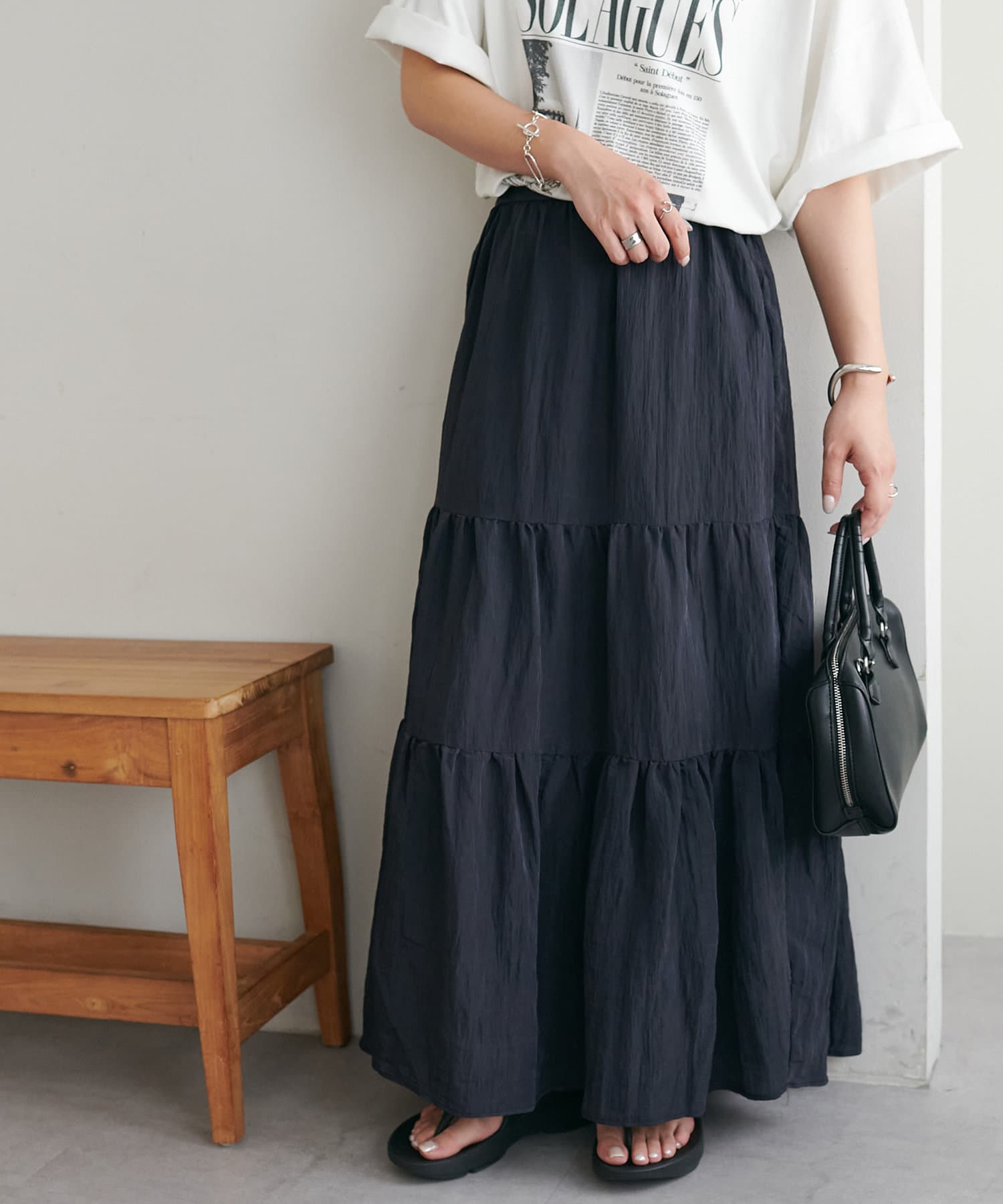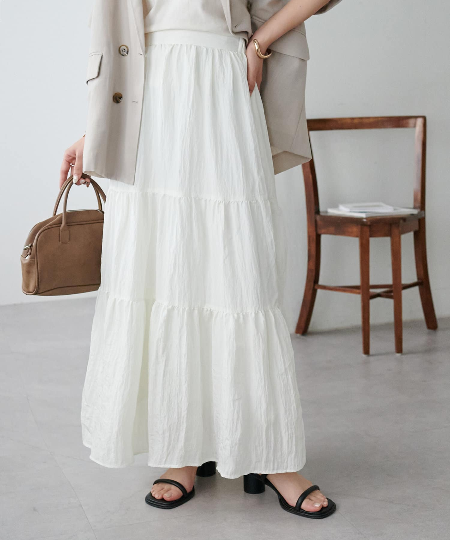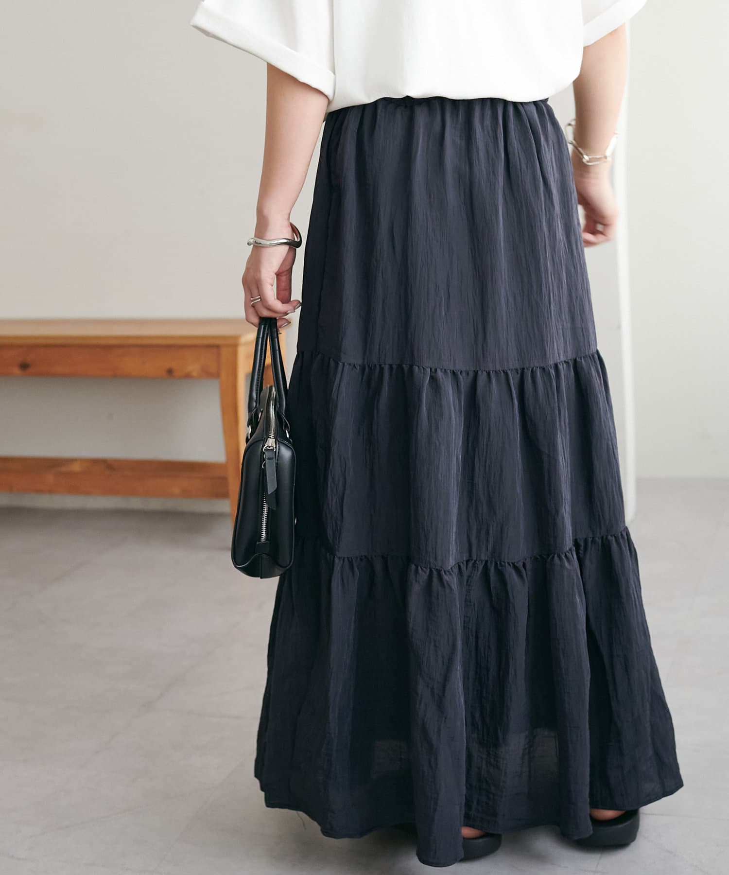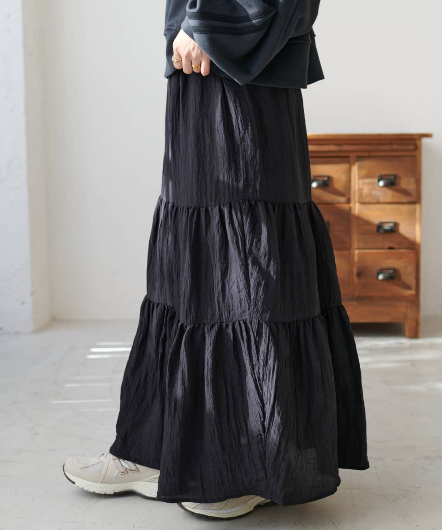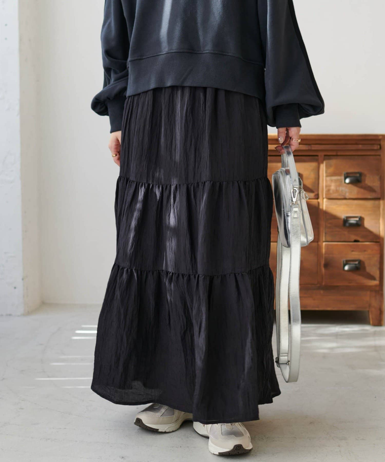 【サイズ展開あり】サテンワッシャーボリュームティアードスカート《WEB限定》