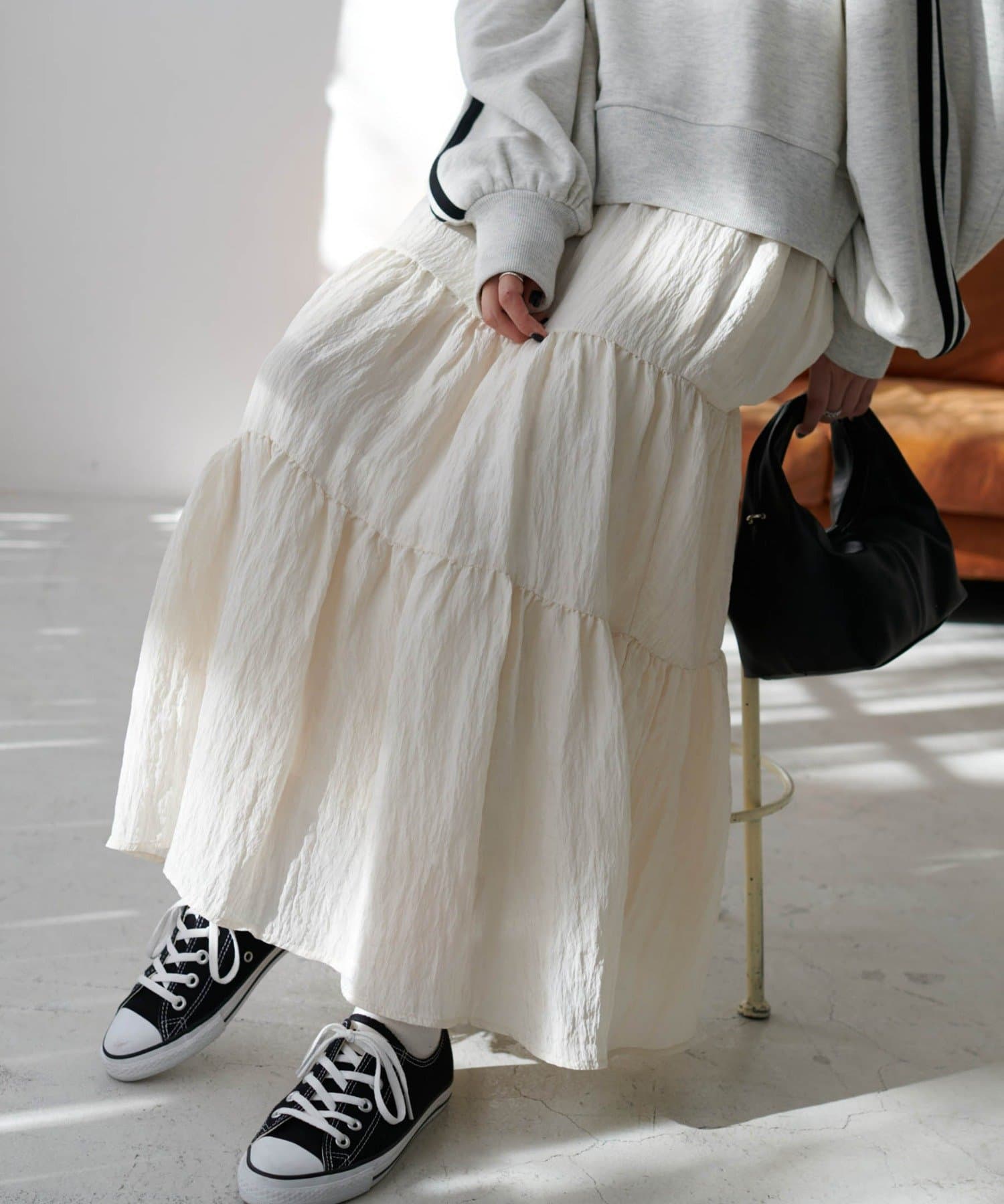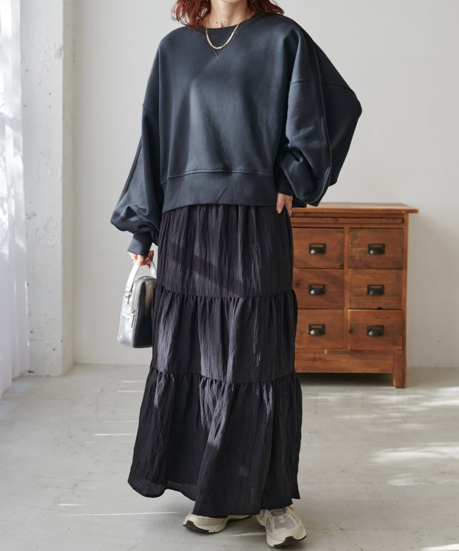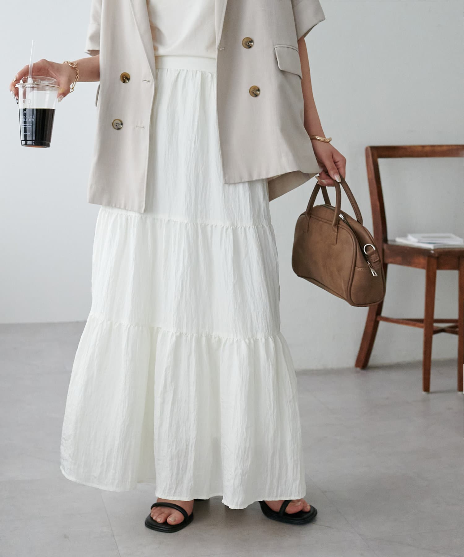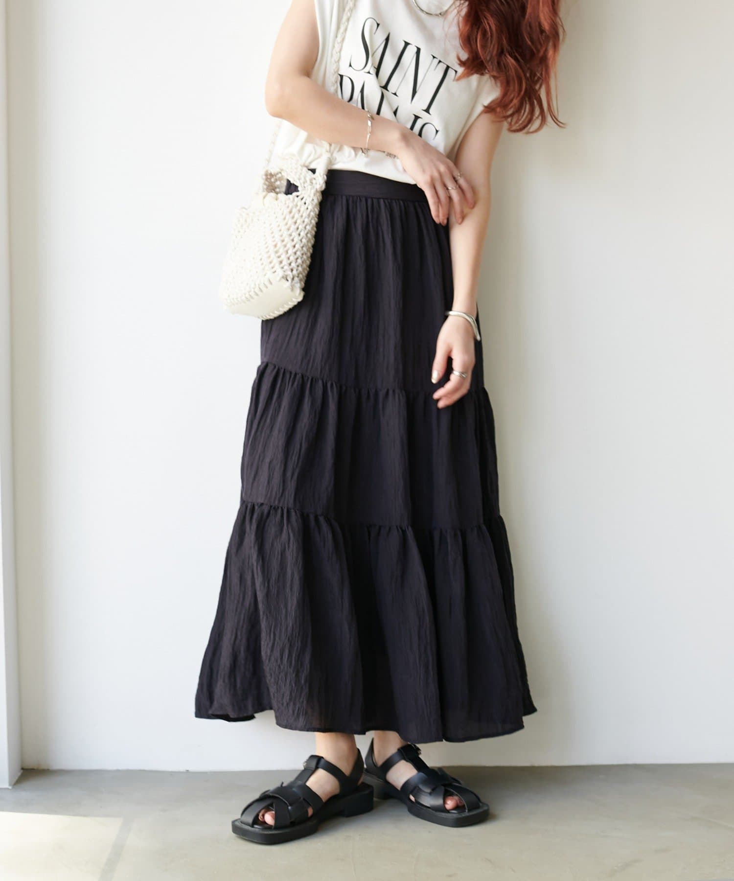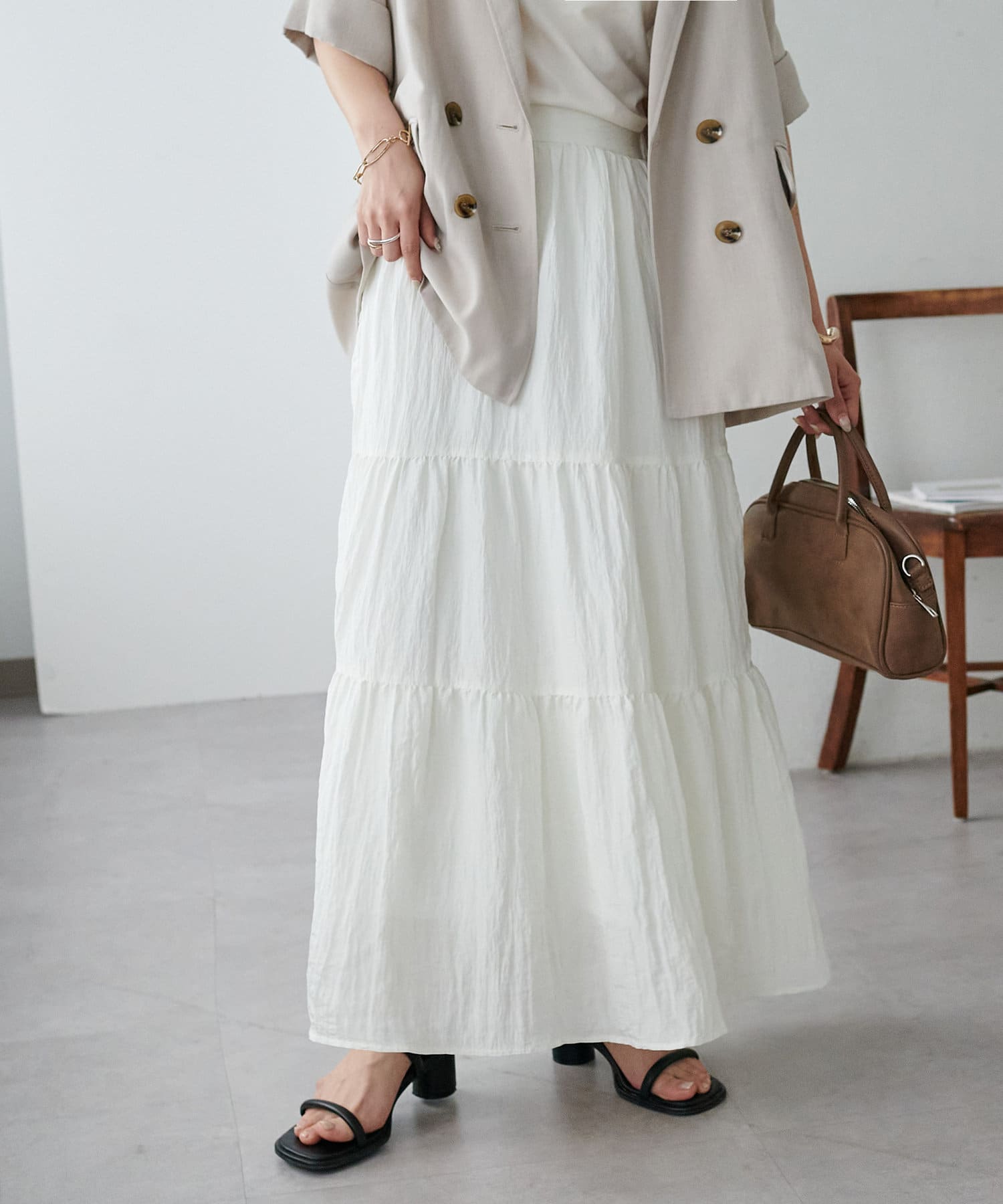 【サイズ展開あり】サテンワッシャーボリュームティアードスカート《WEB限定》