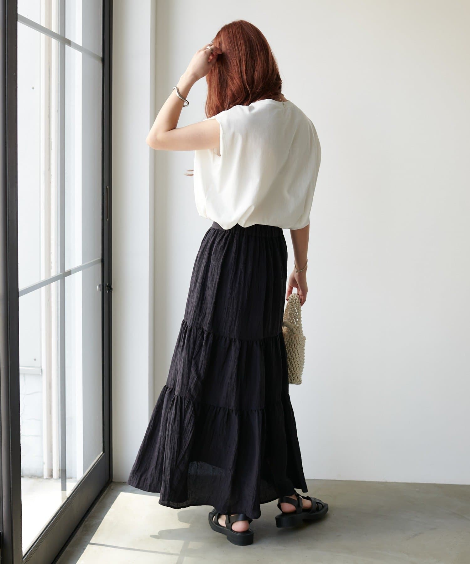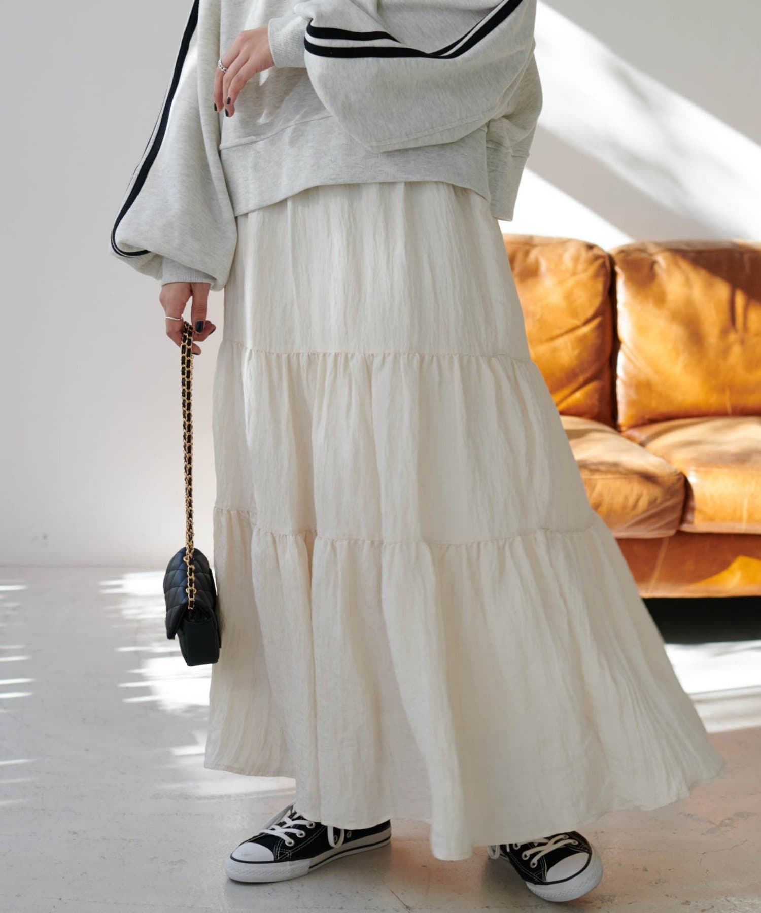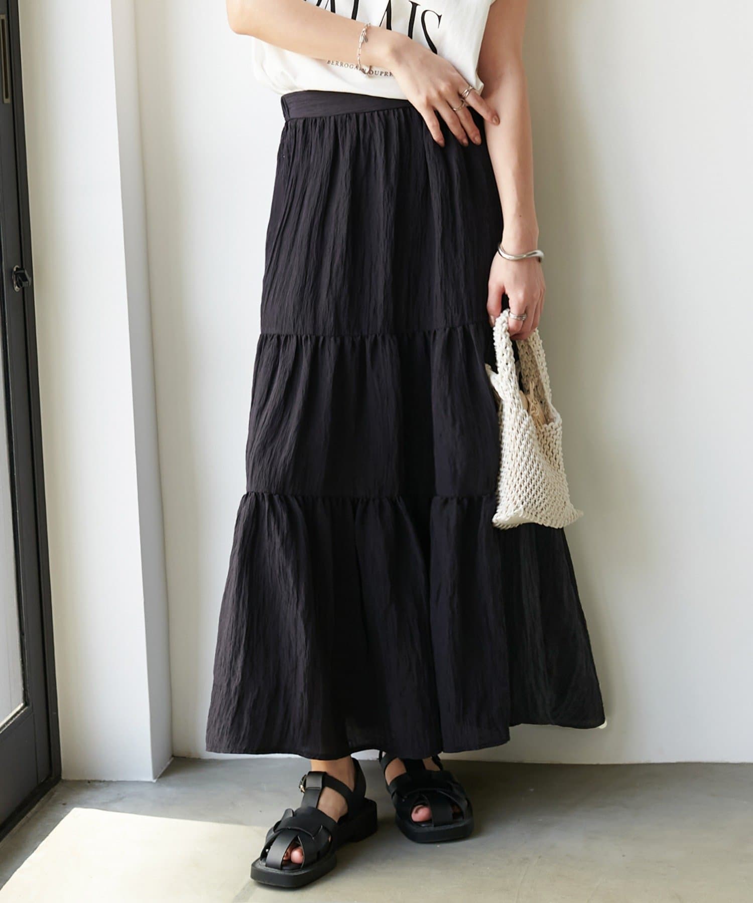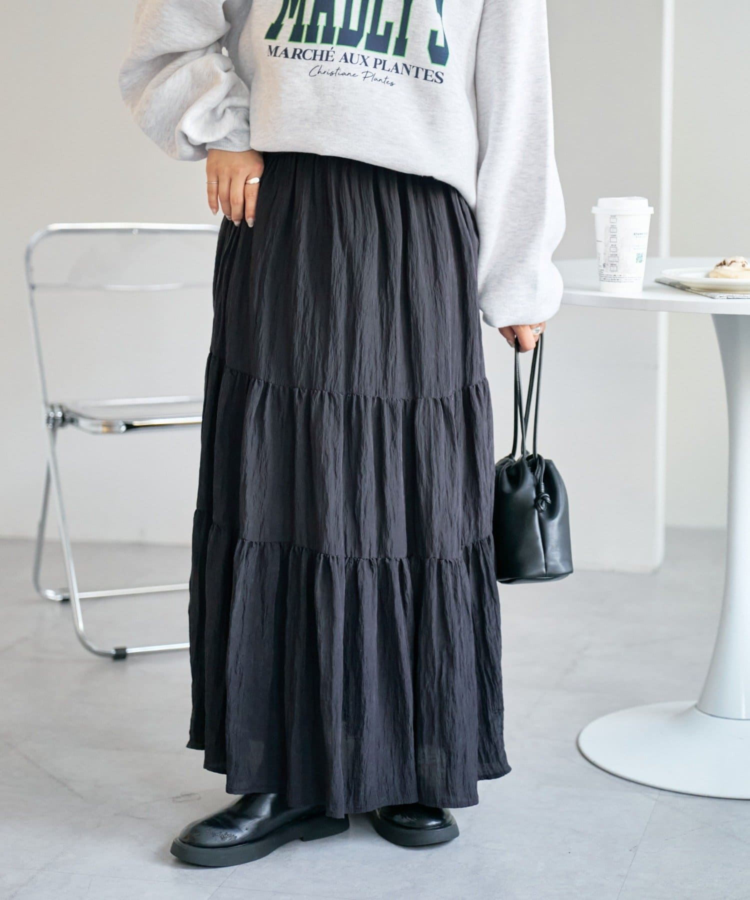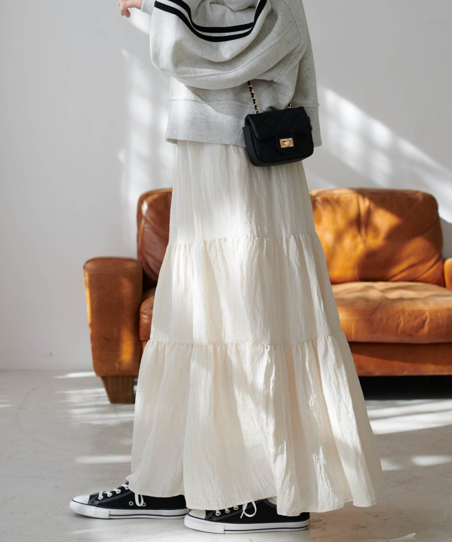 【サイズ展開あり】サテンワッシャーボリュームティアードスカート《WEB限定》