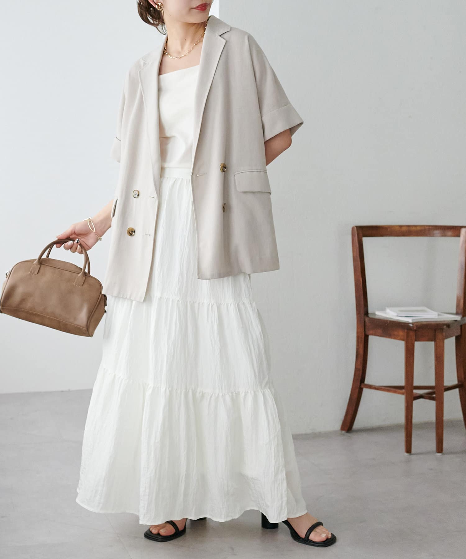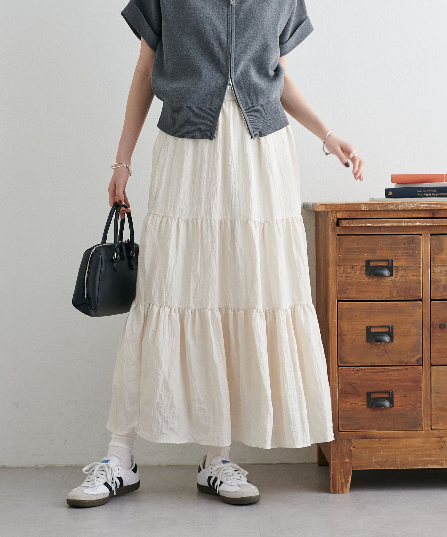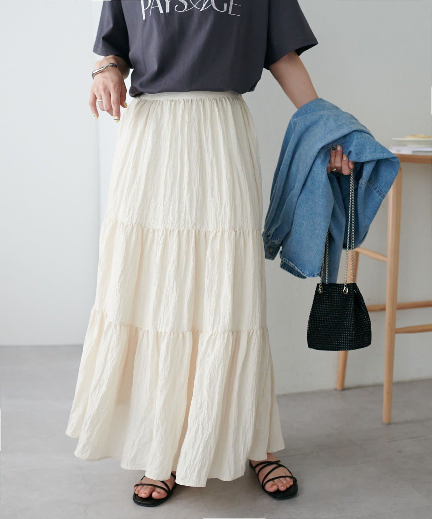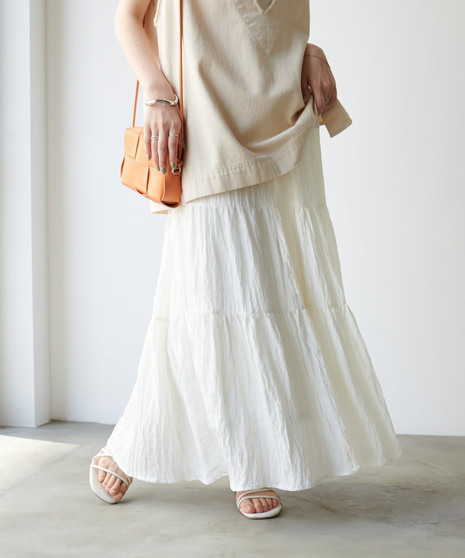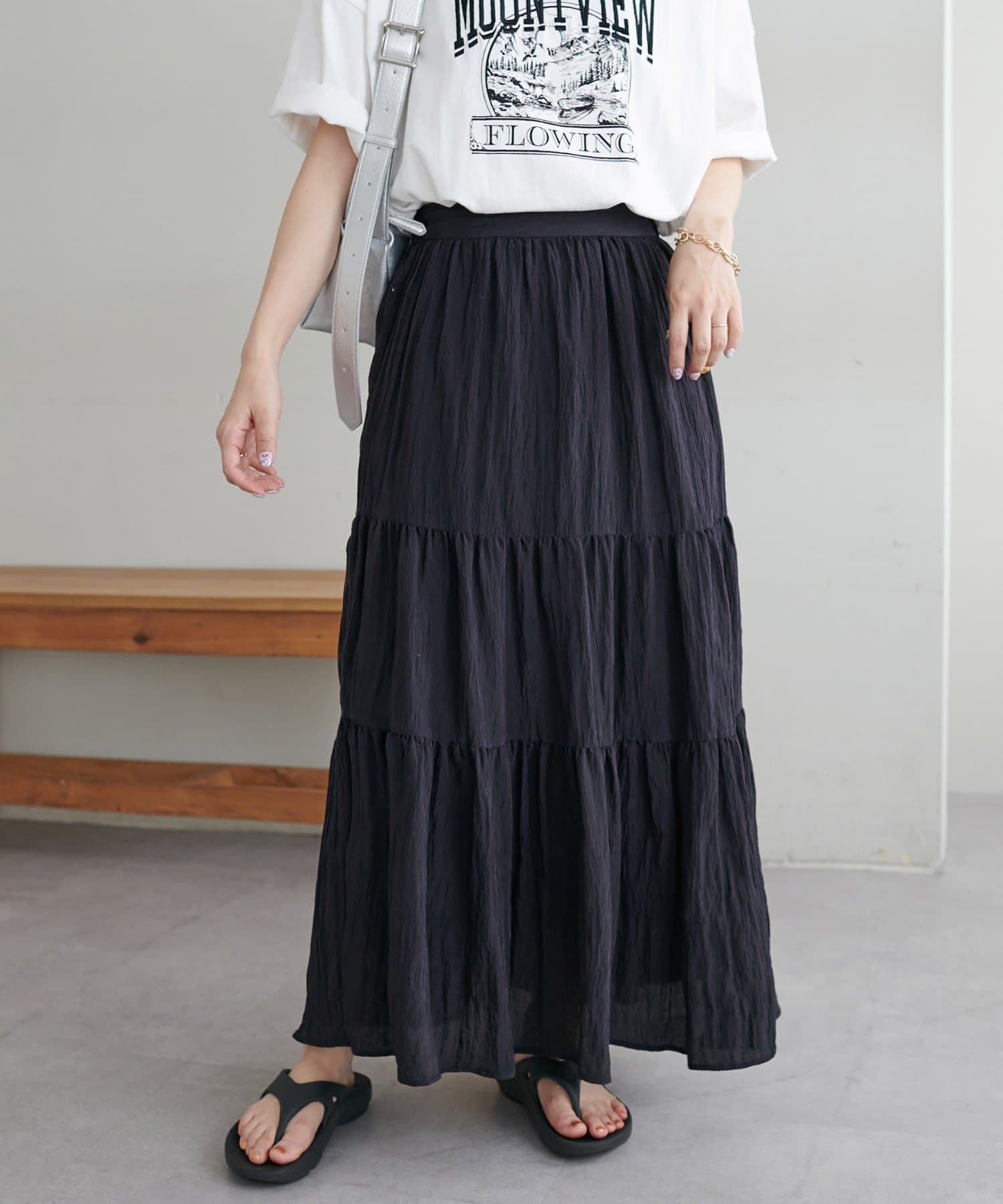 【サイズ展開あり】サテンワッシャーボリュームティアードスカート《WEB限定》