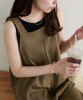 155cmスタッフ:サラッと軽い素材感で、暑い季節でも快適に着られます!肩紐の華奢なデザインで女性らしい印象になるのが嬉しいです◎