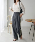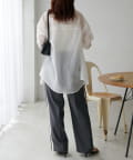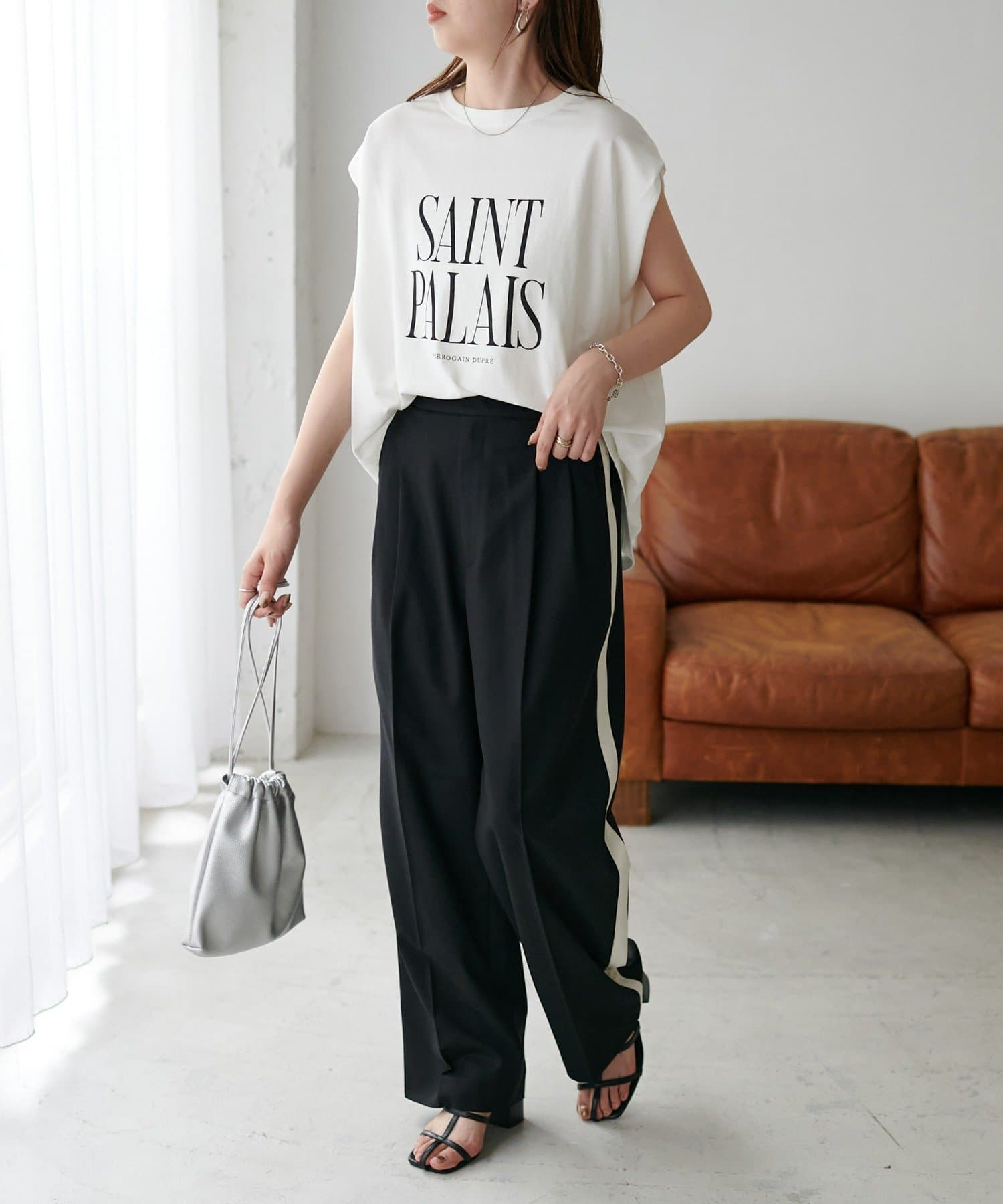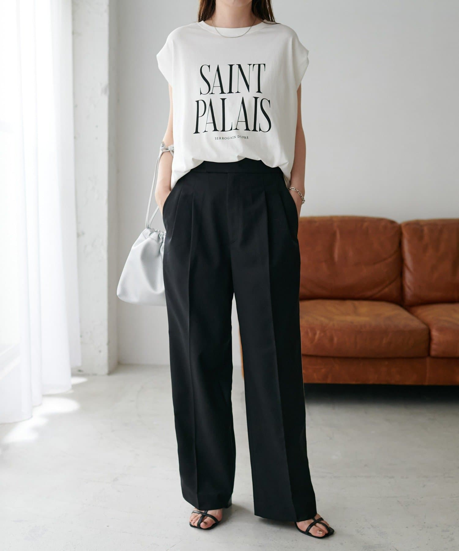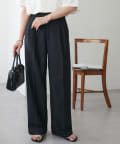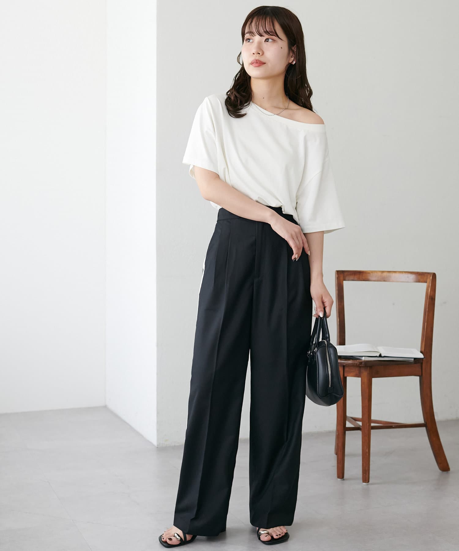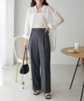 タックデザインなので、Tシャツをインしたスタイリングや、ニットやスウェットを前だけインしていただくとすっきりとした印象で着ていただけます!