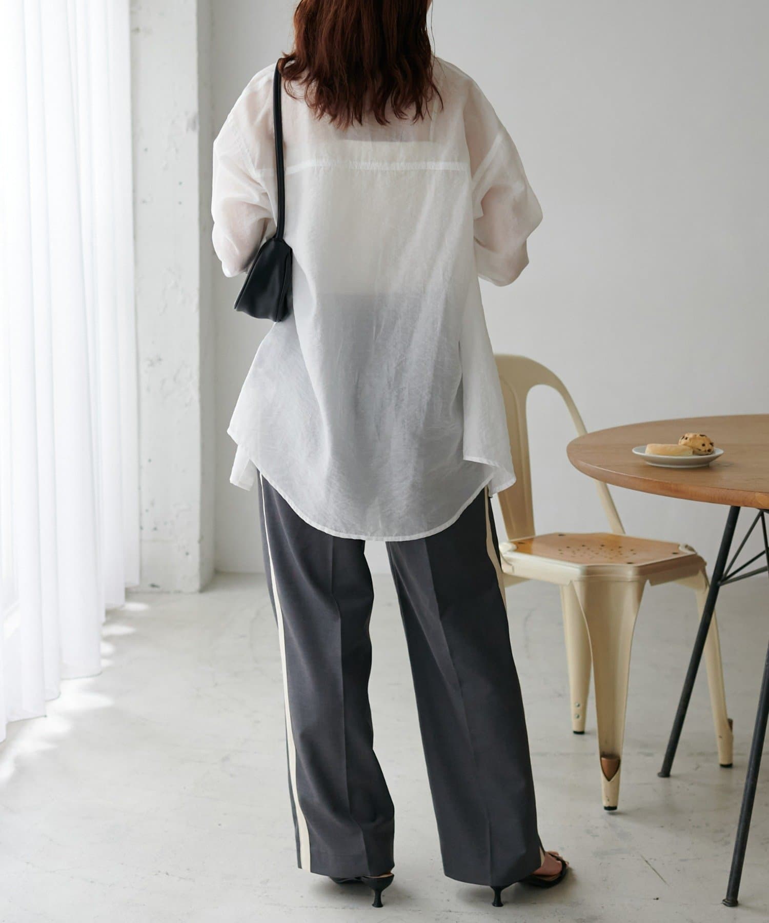 サイドラインのデザインがメリハリを出してくれるので、低身長が着てもスッキリとした印象もプラスしてくれます◎