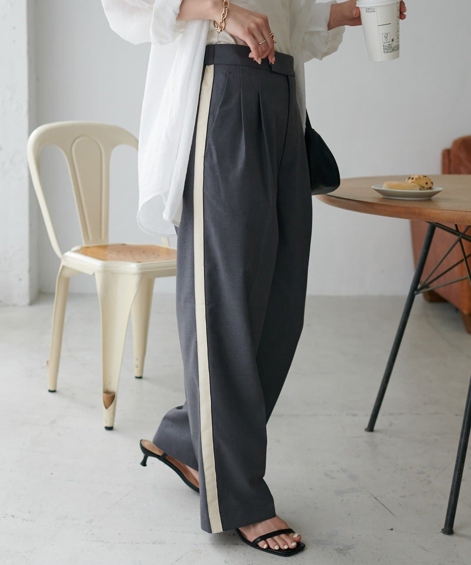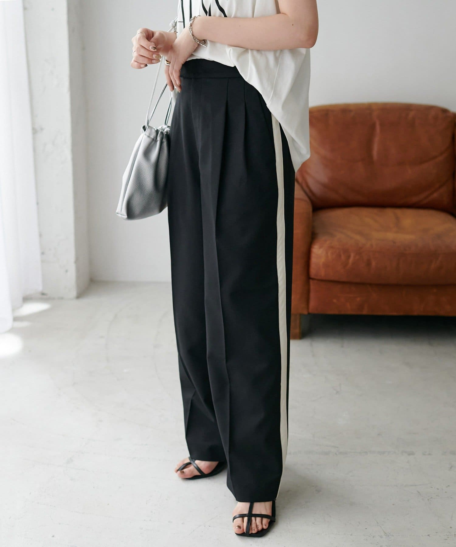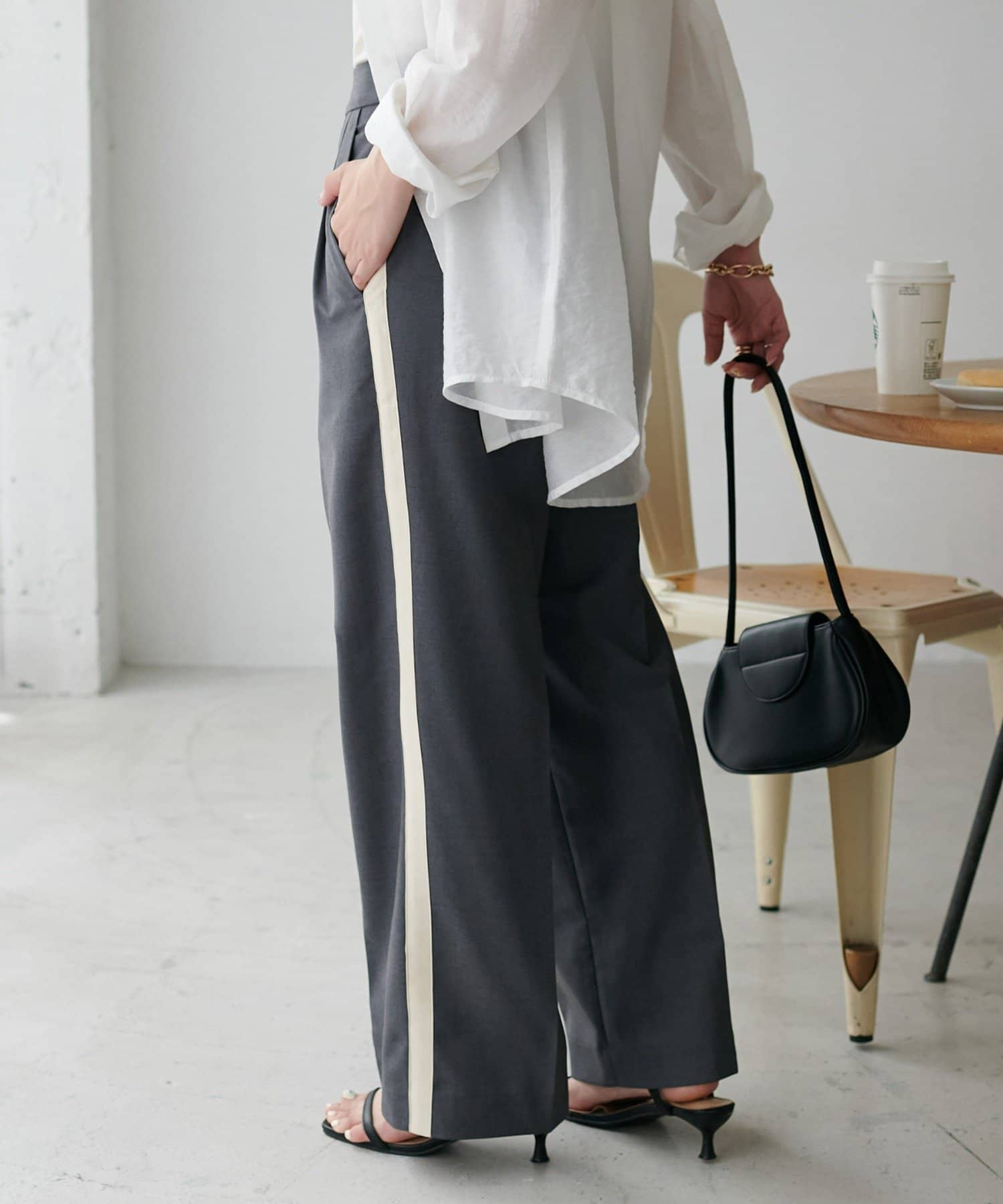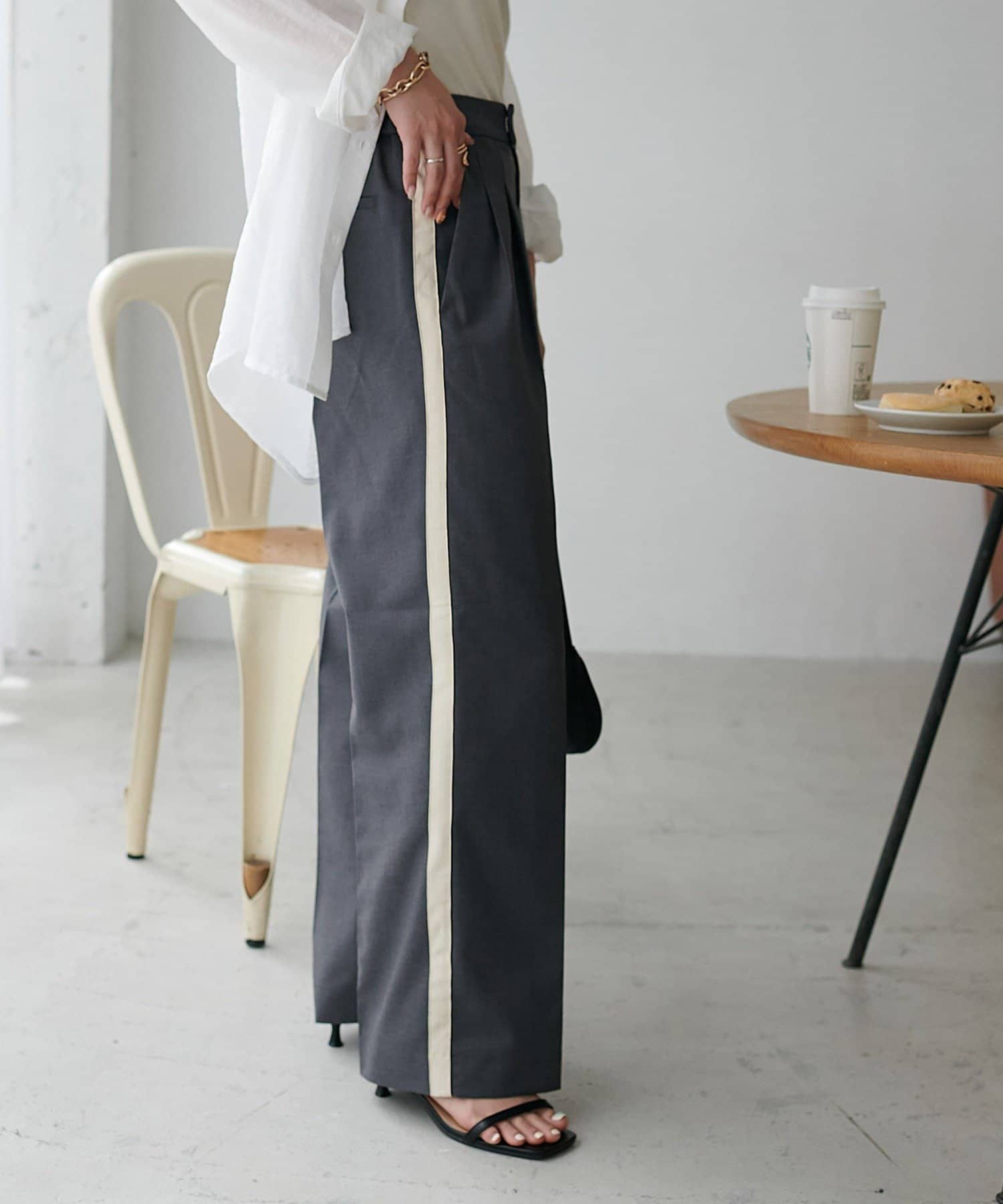 サイドラインのデザインがすっきりとした印象とコーデにアクセントをプラスしてくれるパンツです!