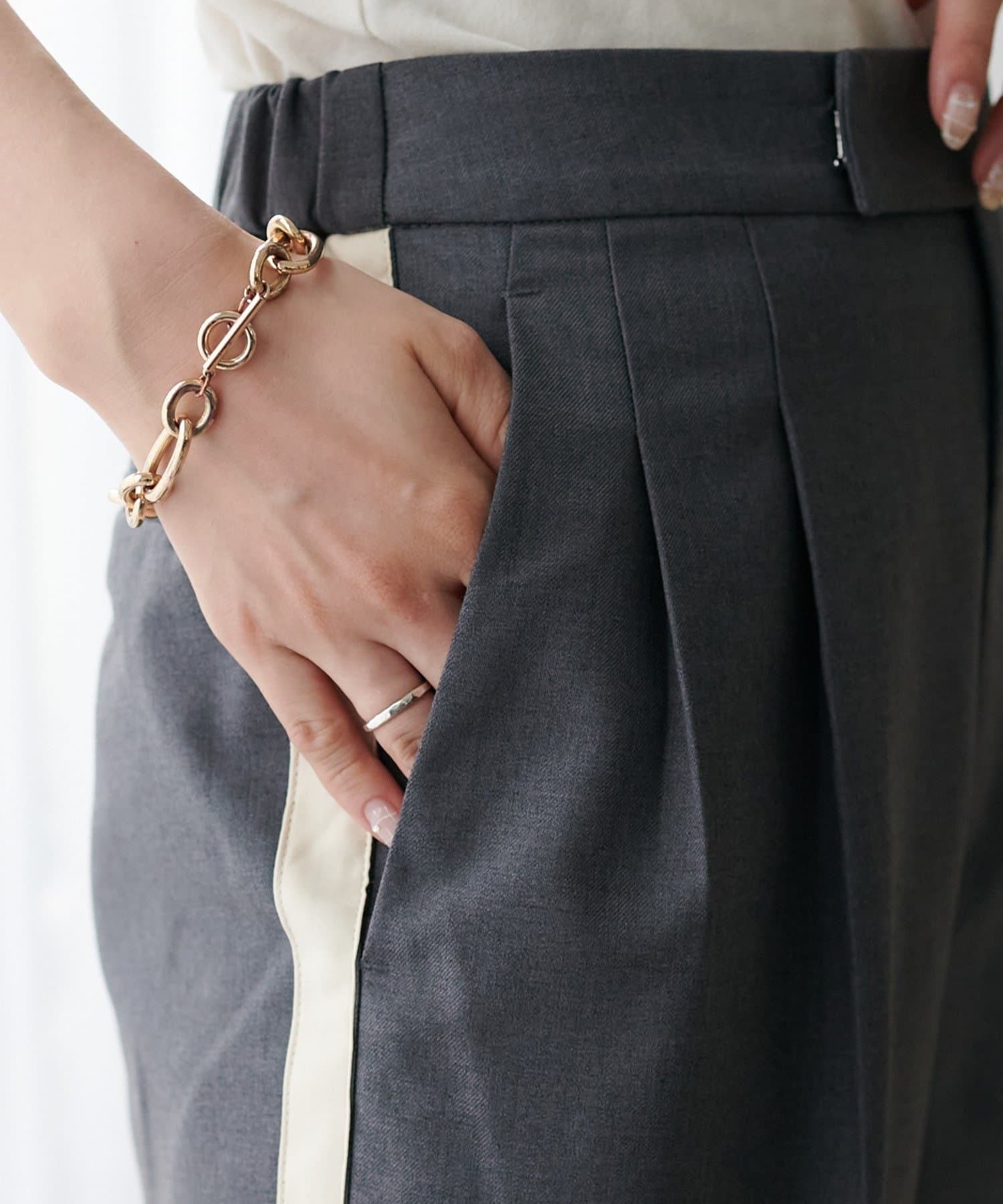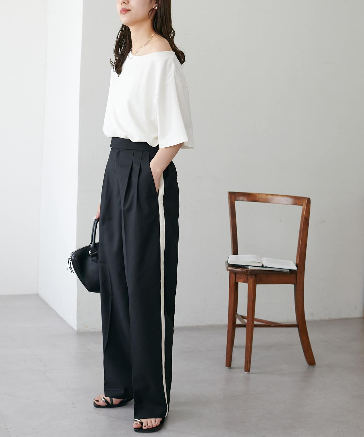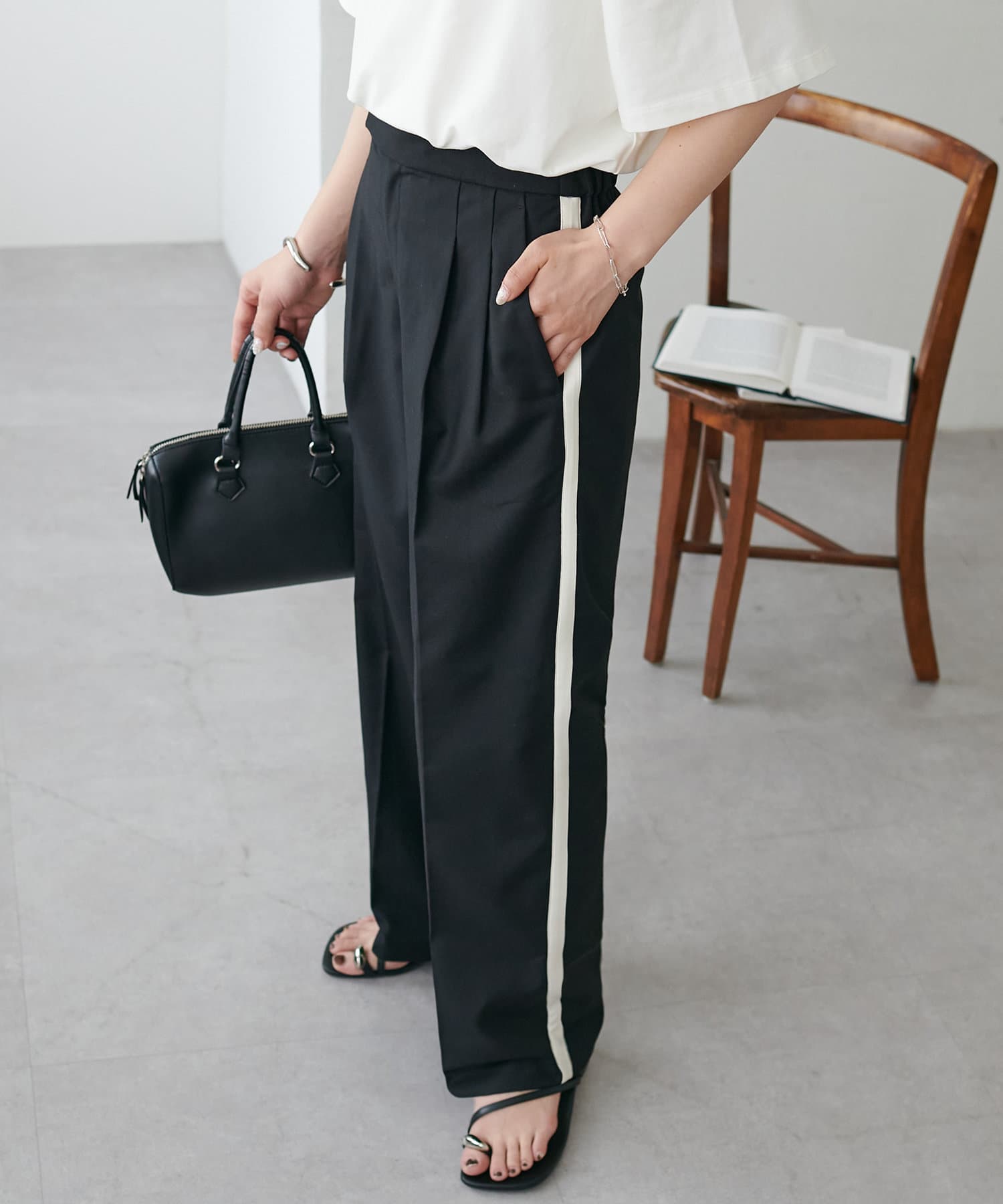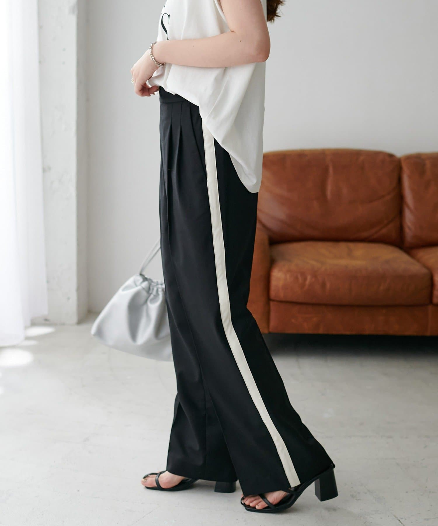 サイドラインのデザインがすっきりとした印象とコーデにアクセントをプラスしてくれるパンツです!