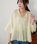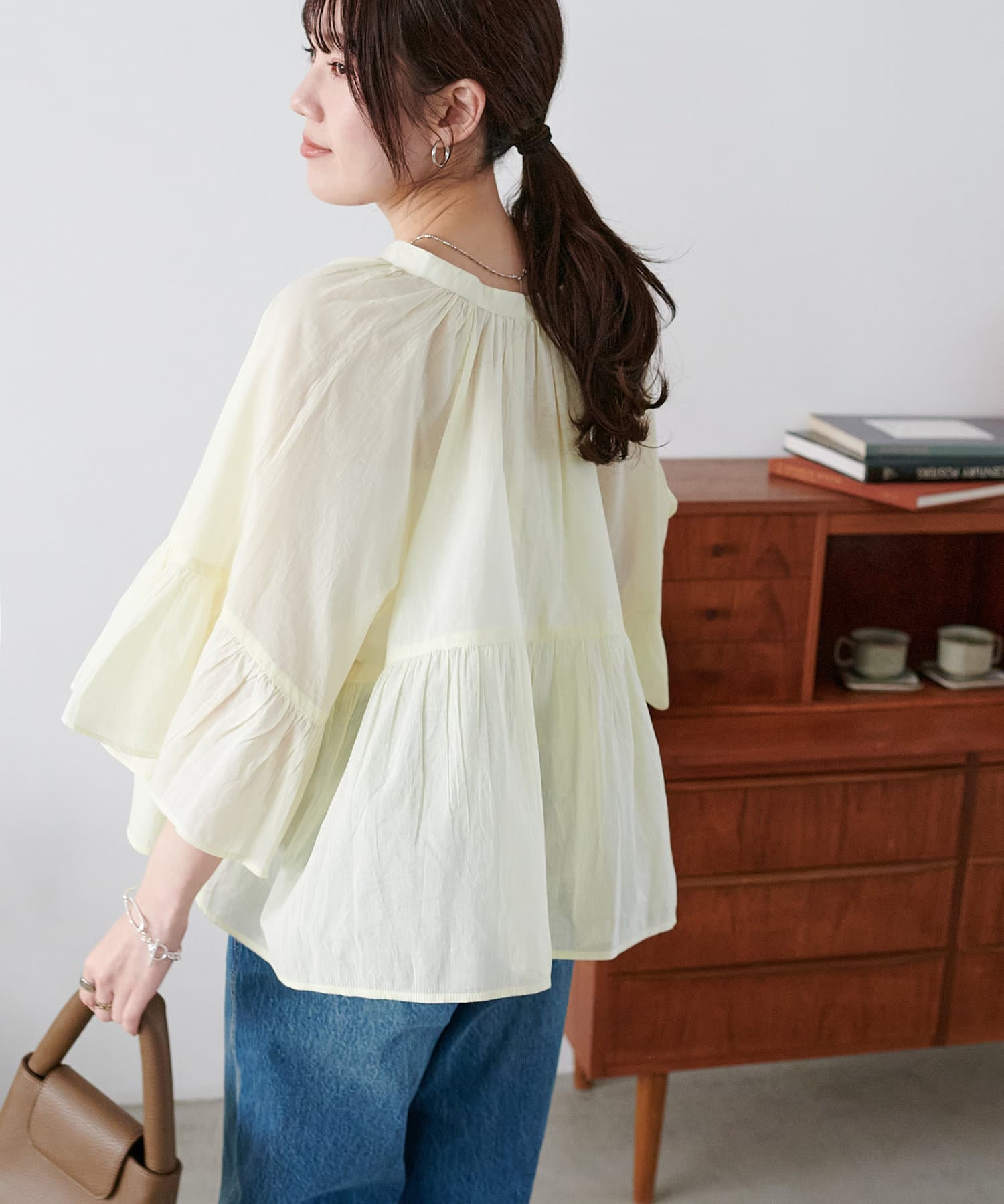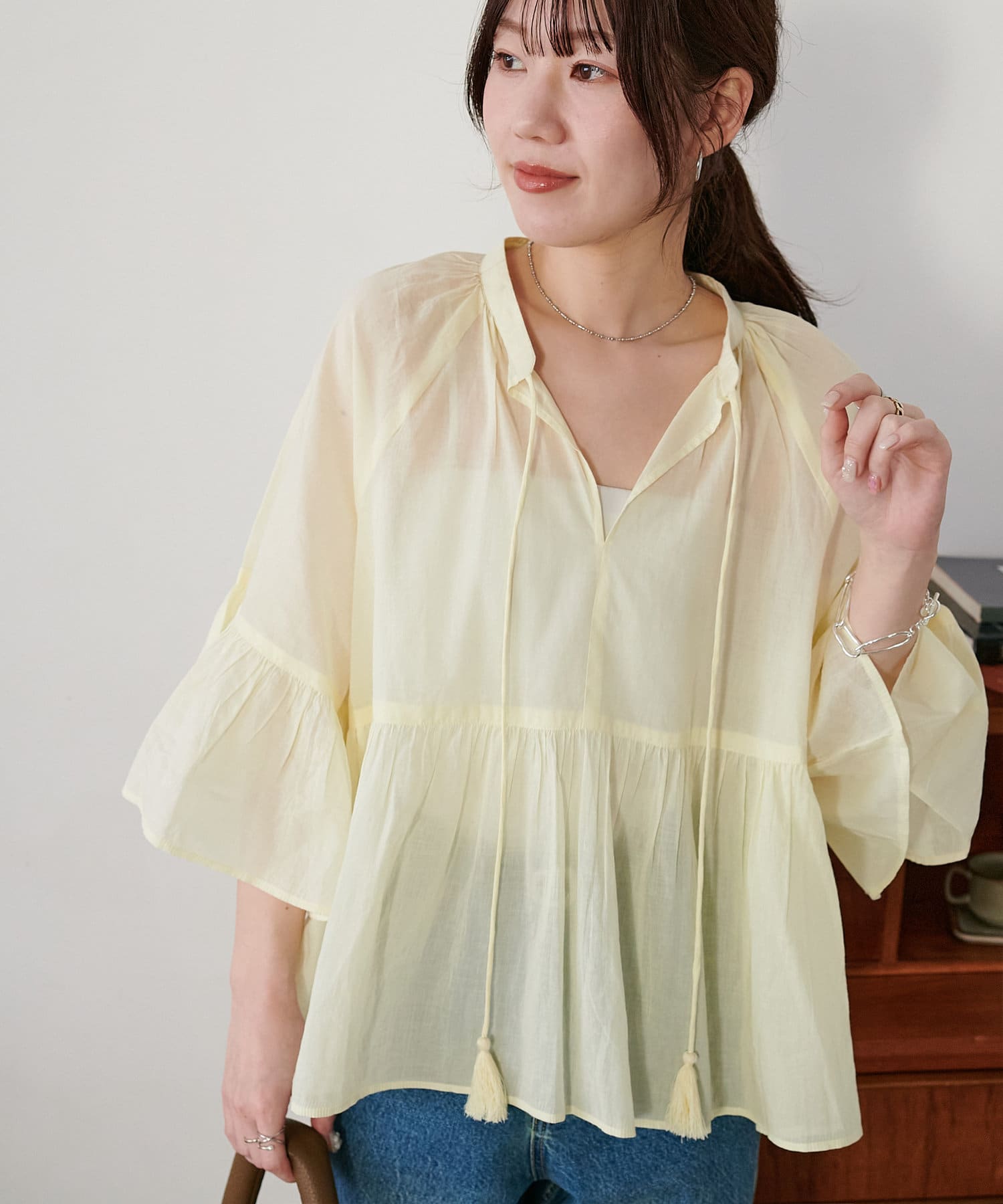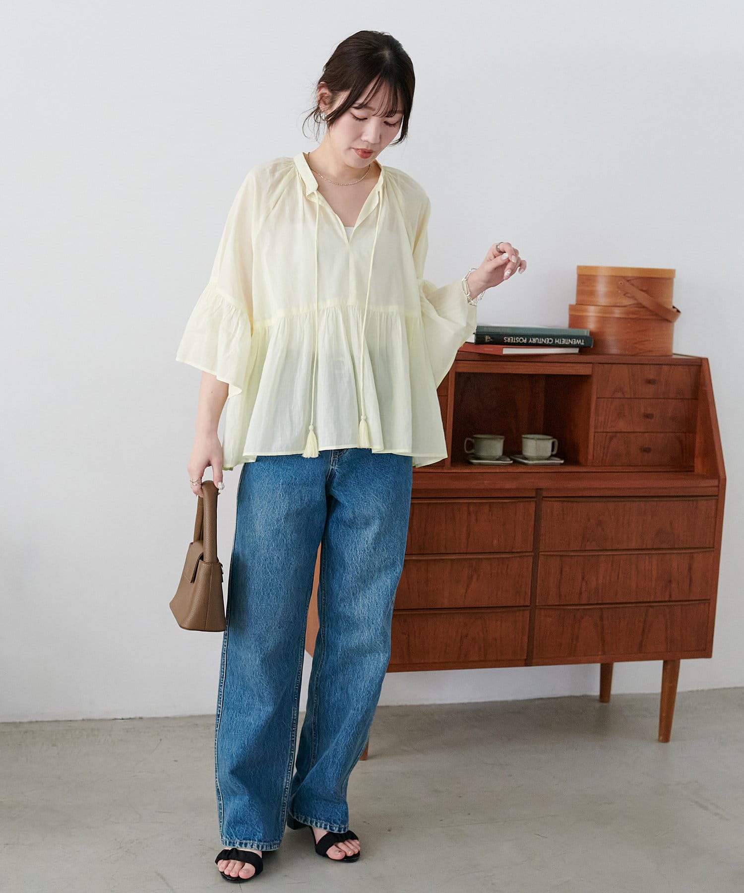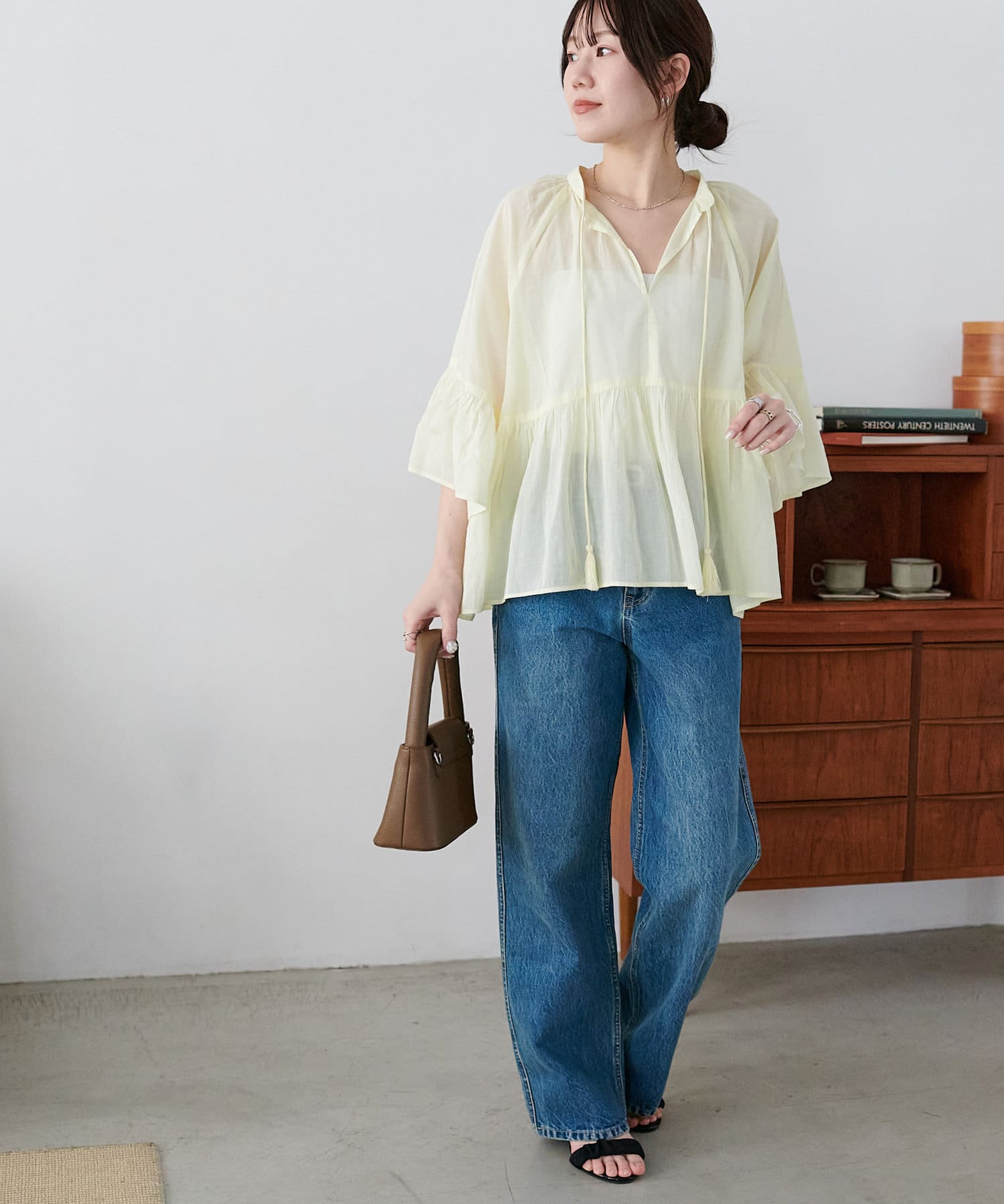 動くたびに揺れ感のあるデザインは軽やかな印象になり、春のトップスにぴったり◎