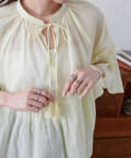ふわっと広がるので、スッキパーを取り入れメリハリのあるデザインに仕上げました。首元をリボンにしてアクセサリー替わりとしていただくのもおすすめです♪