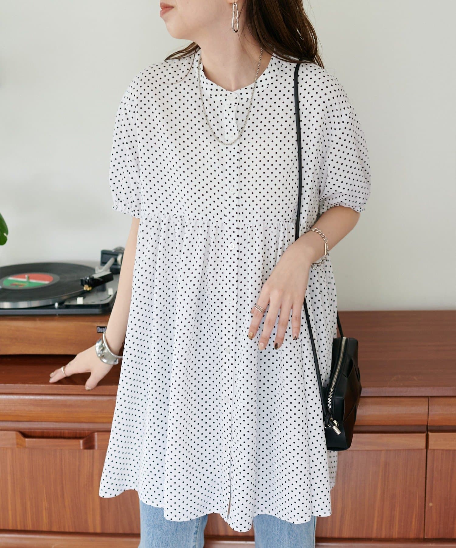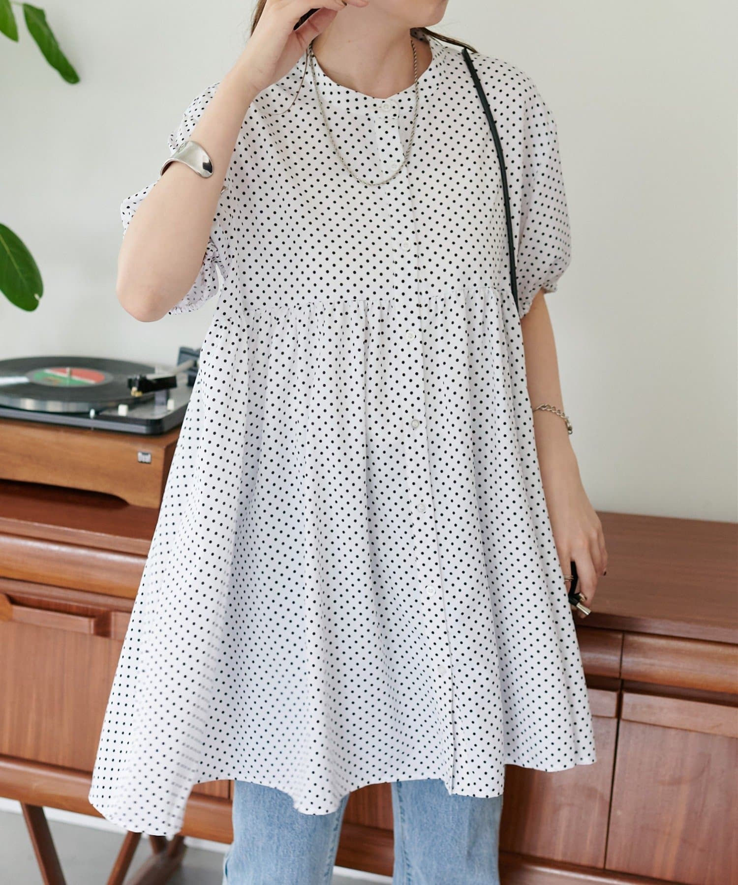 大人フェミニンに楽しめる、旬のティアードギャザーチュニックシャツ