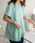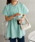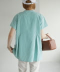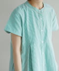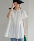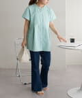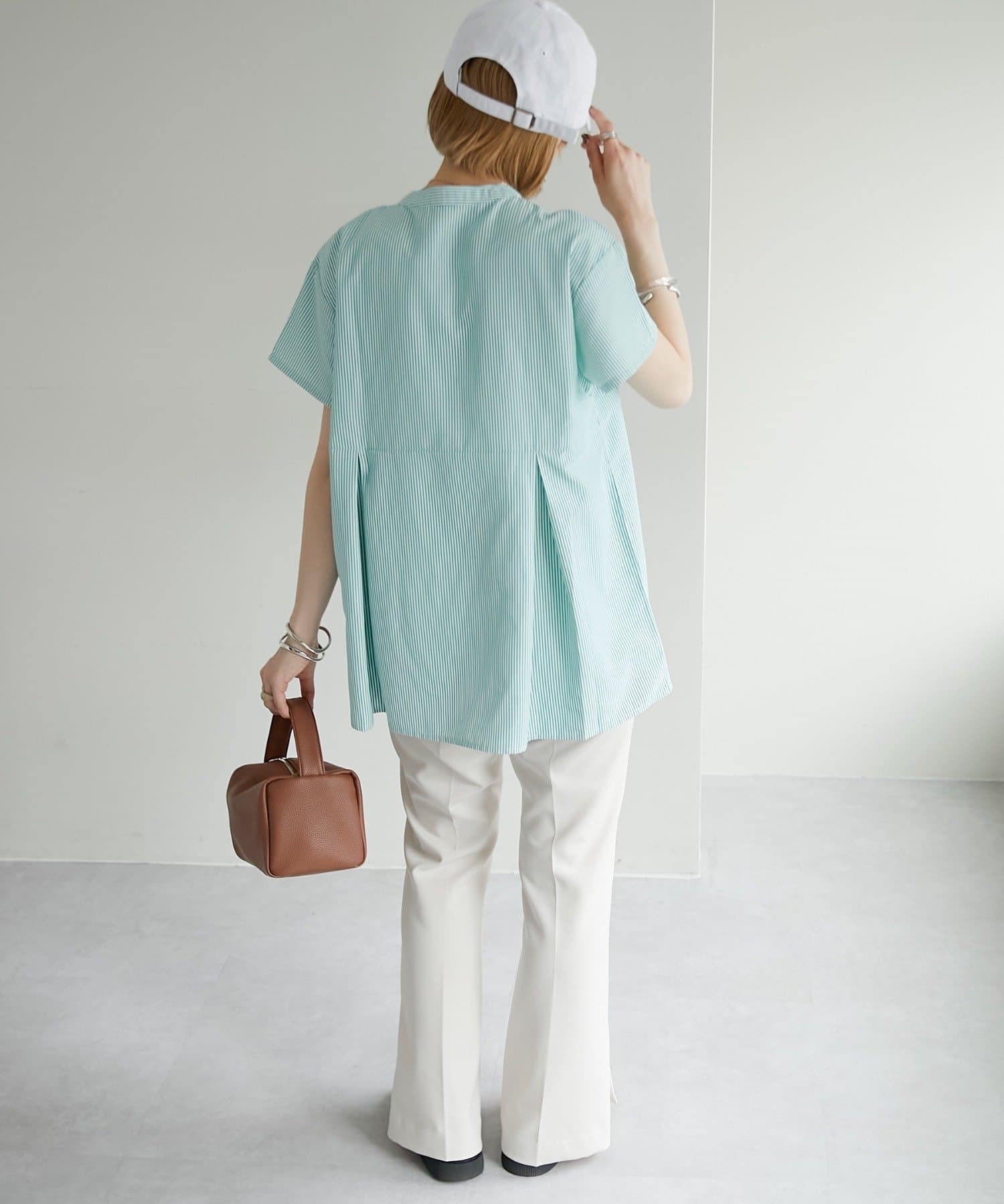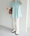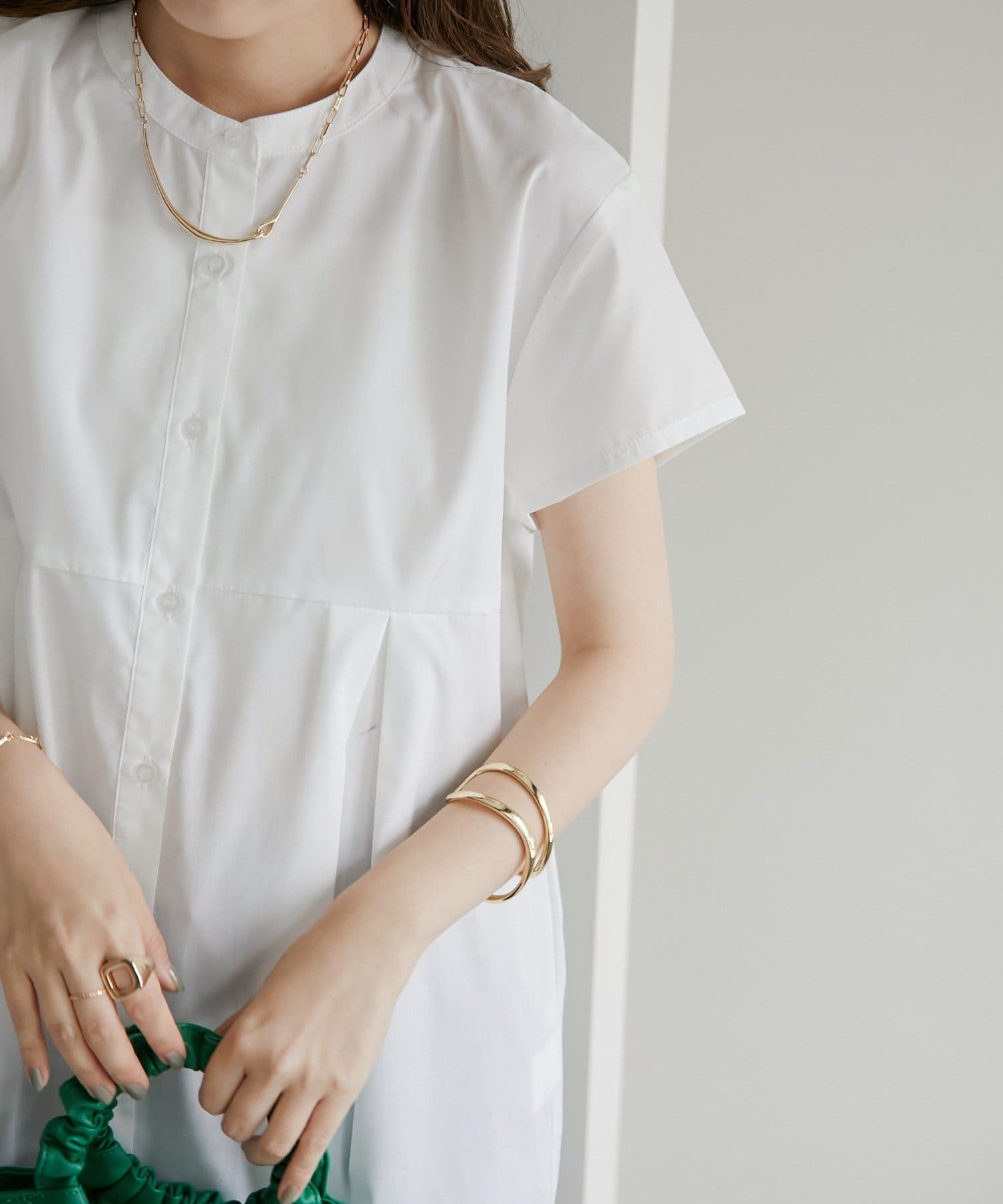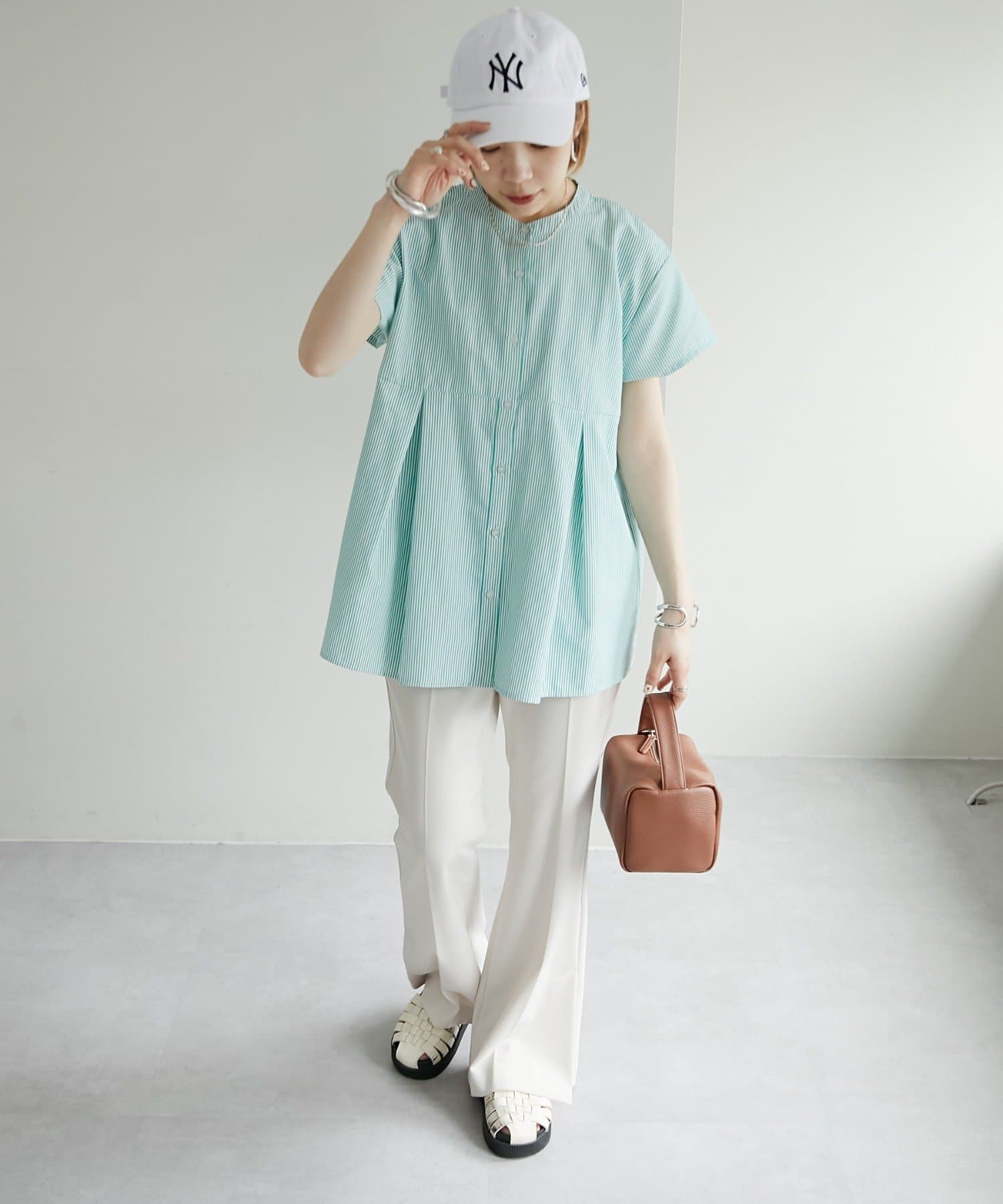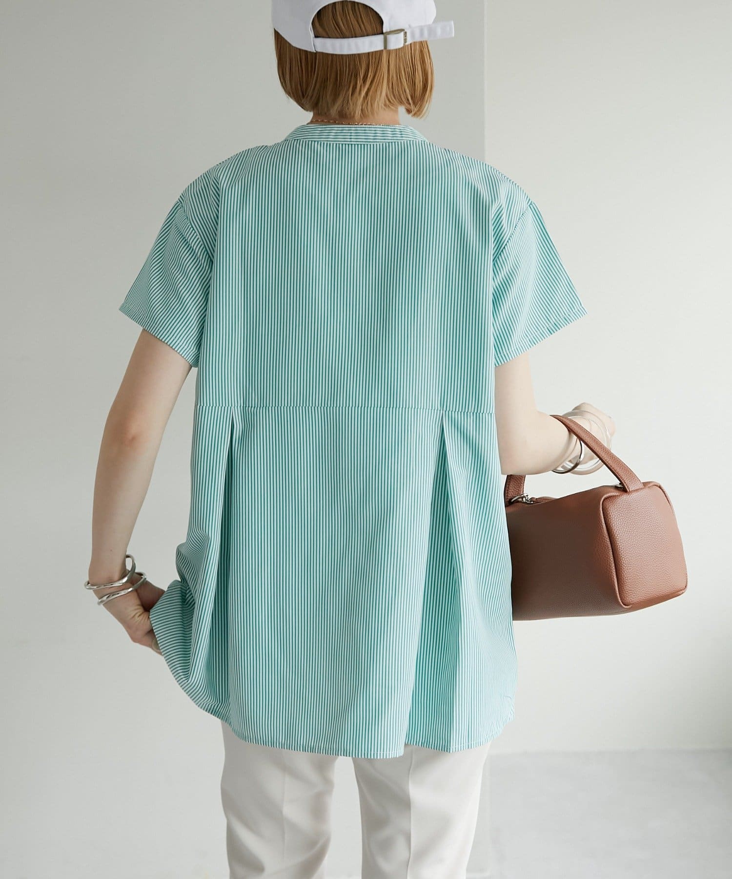高めに設定したウエスト部分をタック加工で切り替えた、大人フェミニンなシャツブラウス。