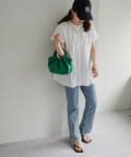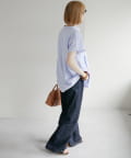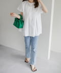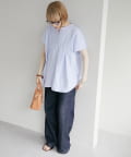 裾に広がりがある長めの着丈なので、細身のパンツを合わせたパンツスタイルがおすすめです。