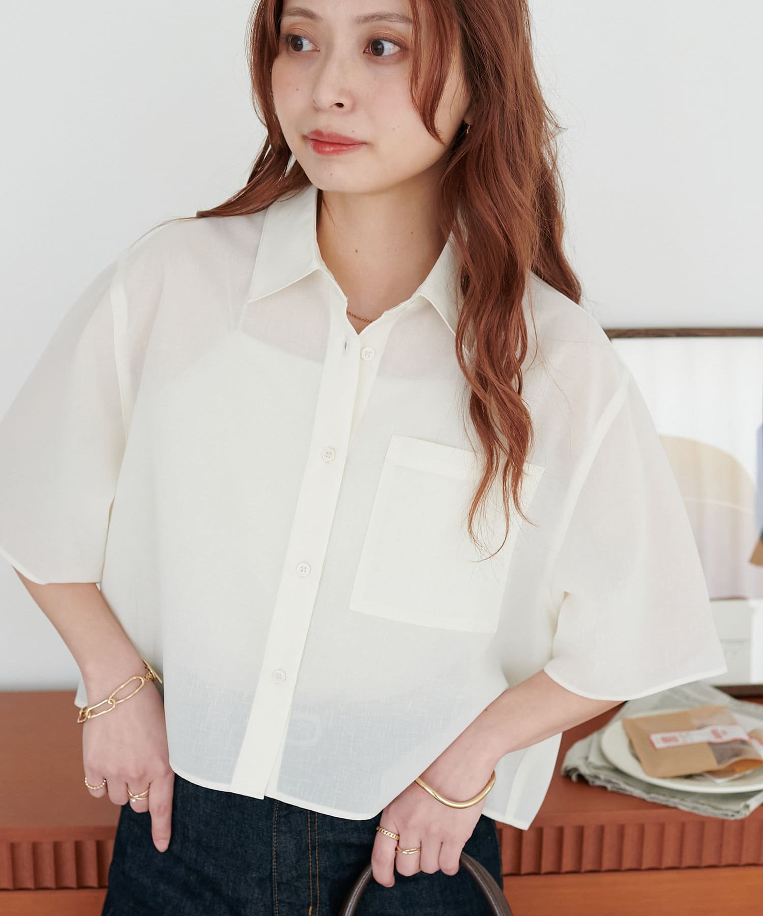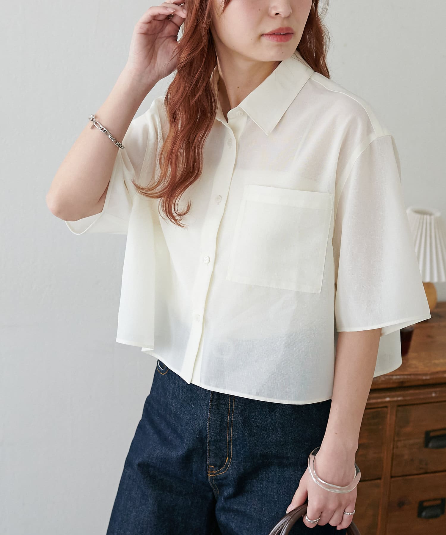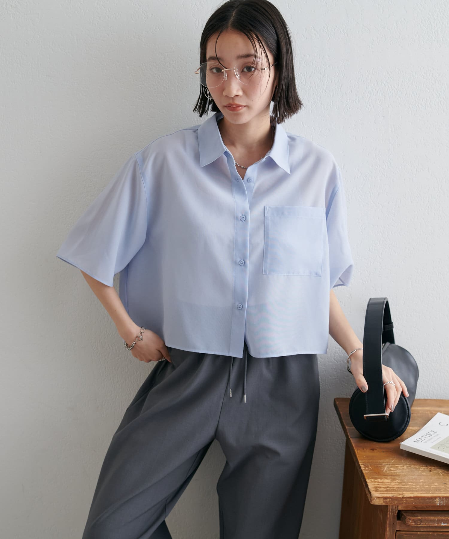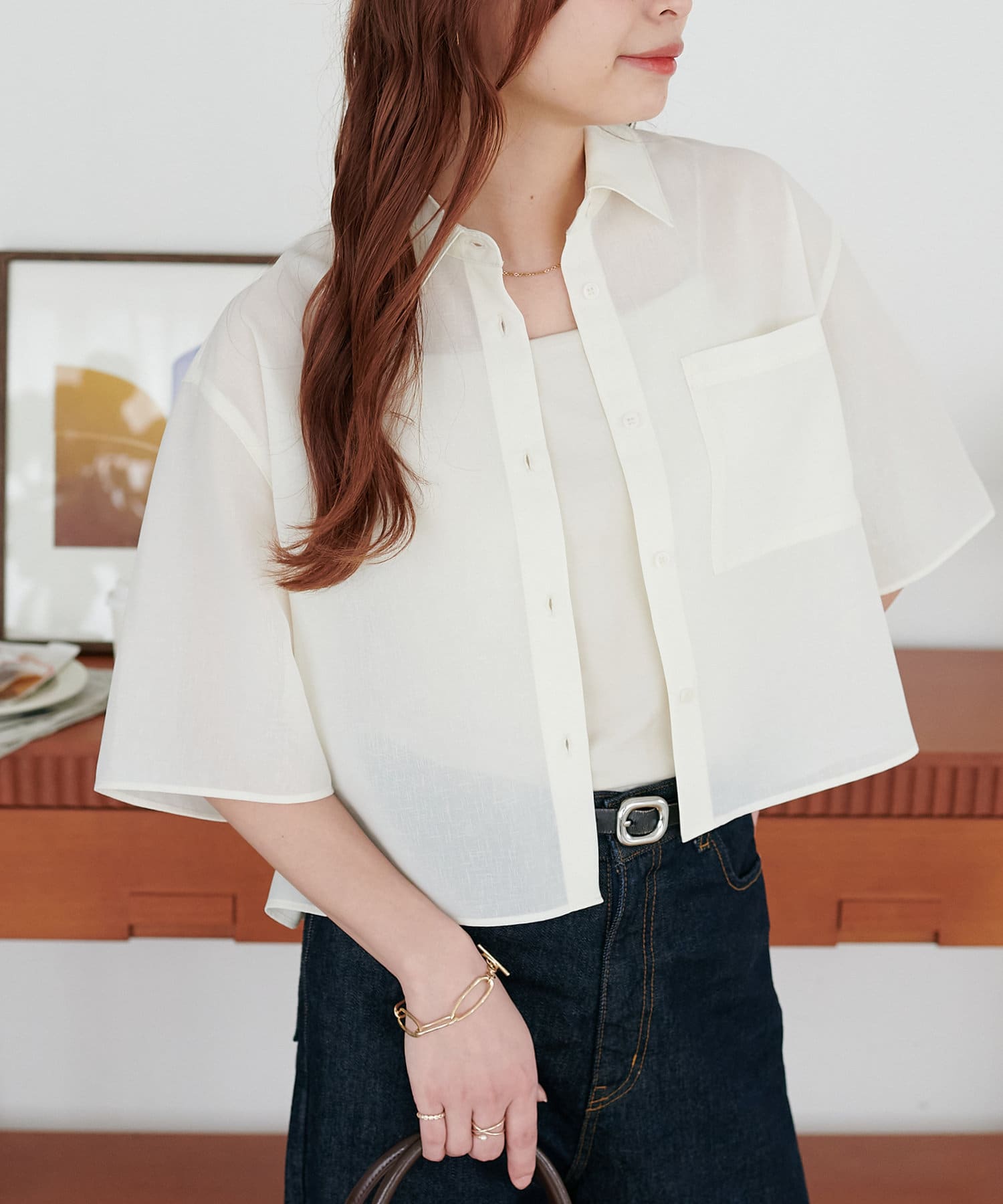 クロップド丈のシャツは、ハイウエストボトムスと合わせれば脚長効果も抜群!