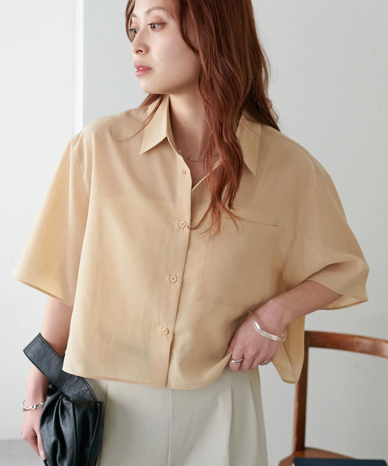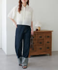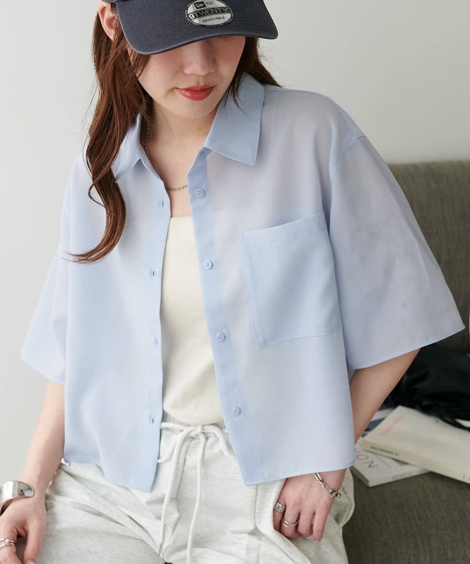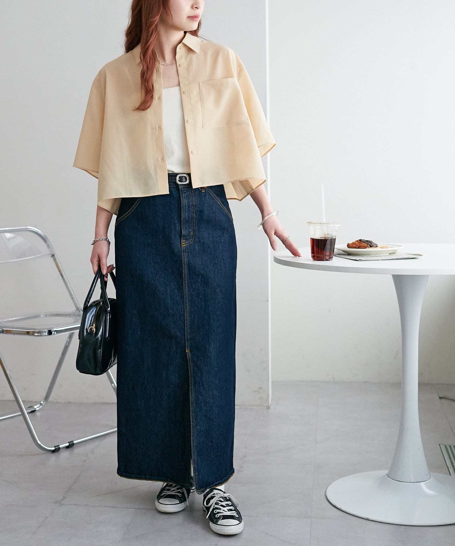 クロップド丈のシャツは、ハイウエストボトムスと合わせれば脚長効果も抜群!