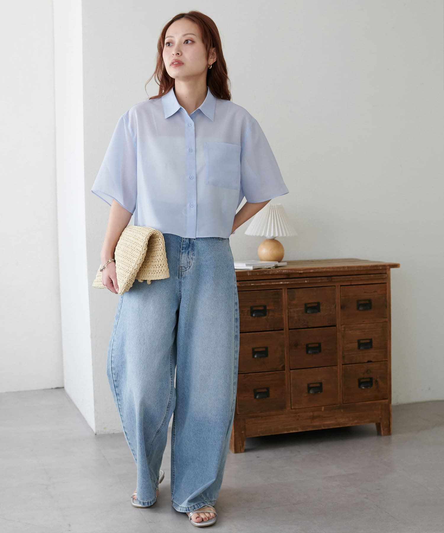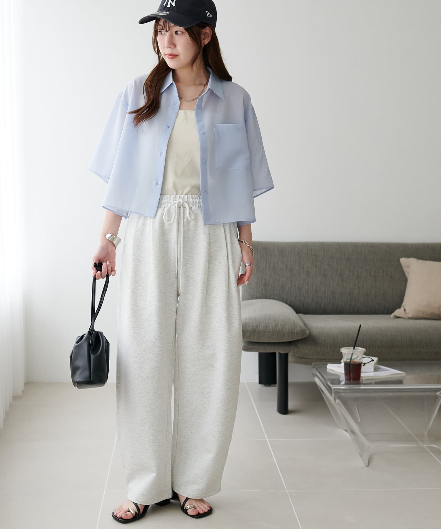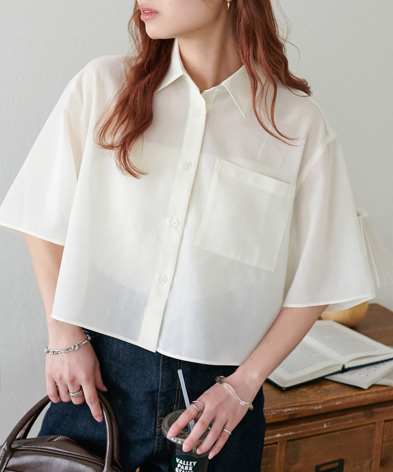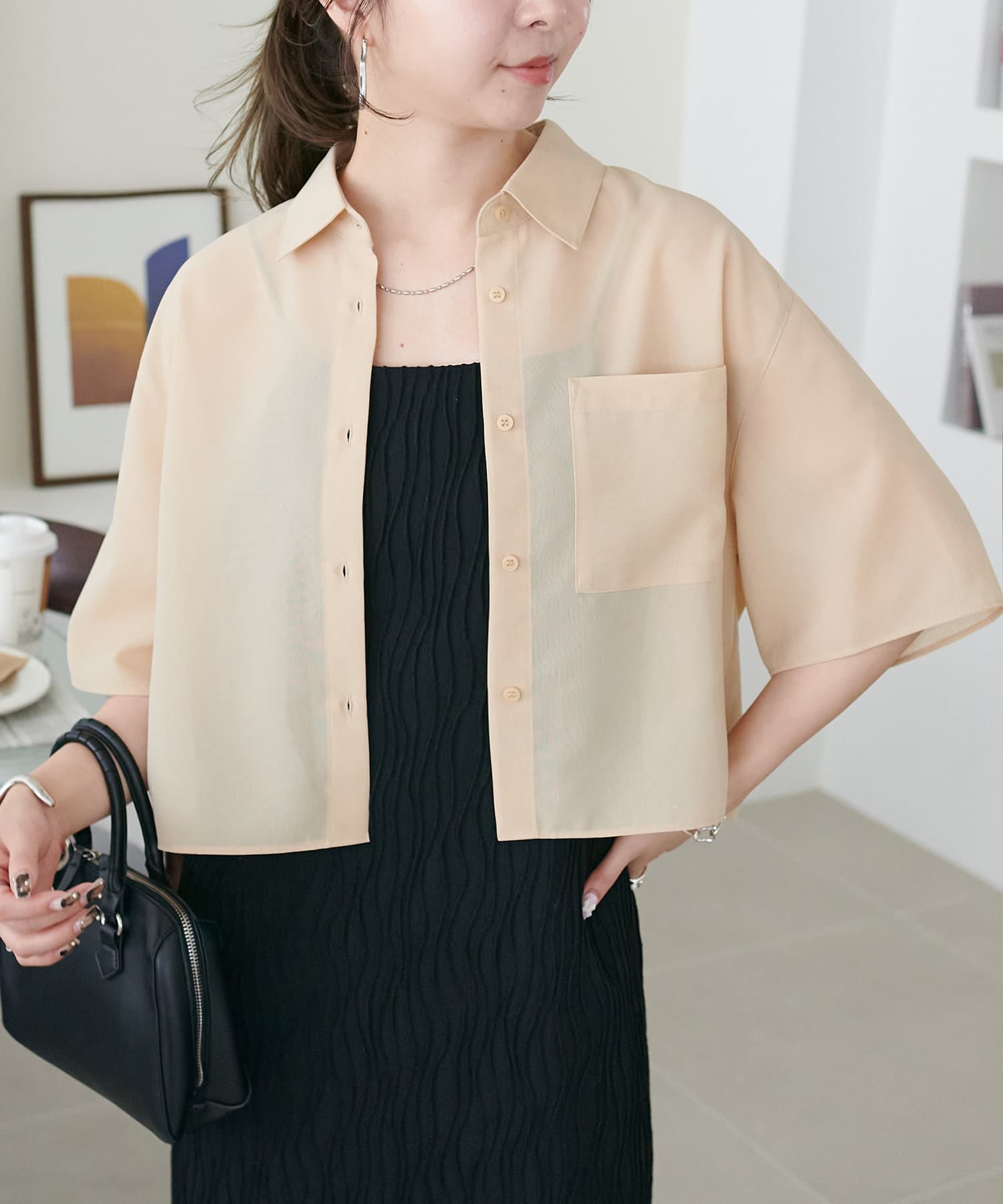 クロップド丈のシャツは、ハイウエストボトムスと合わせれば脚長効果も抜群!