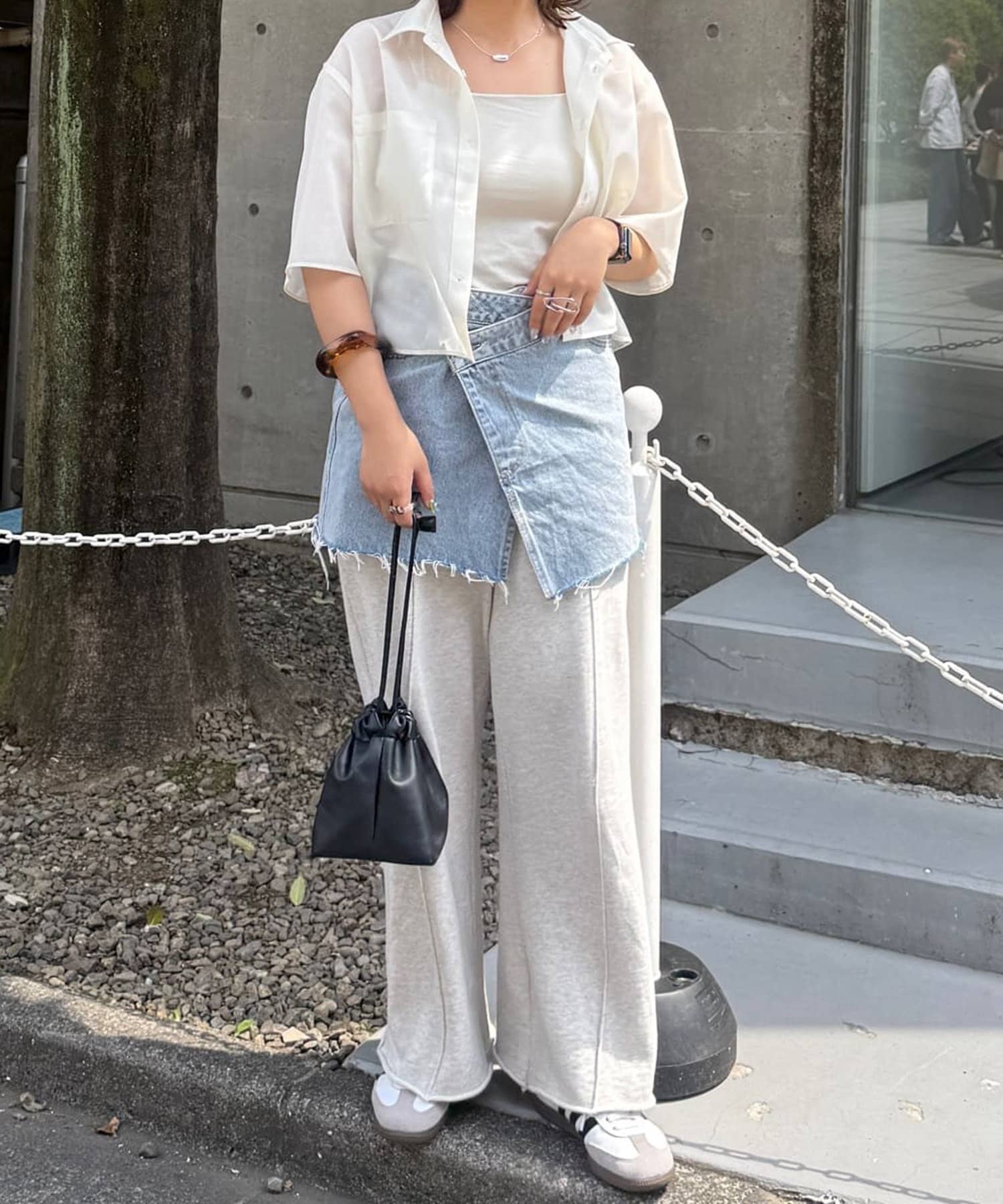 デニムやスウェットパンツと合わせたカジュアルコーデからスラックスやワイドパンツ、スカートと合わせたキレイメコーデにも〇