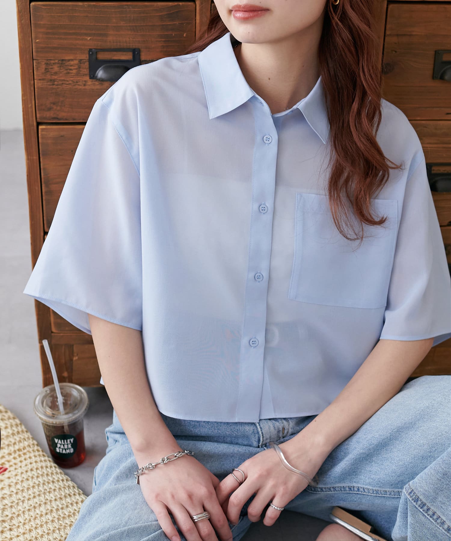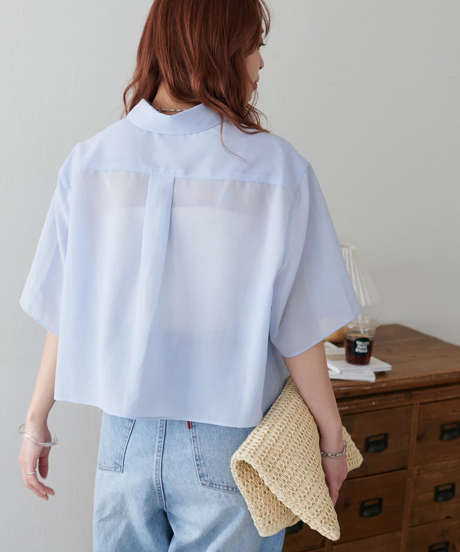 【Discoat】シアー半袖クロップドシャツ