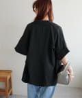 149㎝スタッフ(レディース):オーバーサイズですが、Vネックになっているのですっきりとした印象になります。軽い着心地なのでオーバーサイズですが、重たくなくてストレスフリーです!