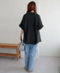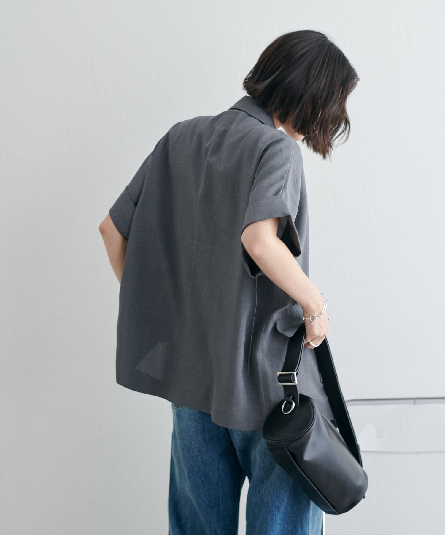 袖口がロールアップデザインになっていることで、二の腕周りがすっきりとした印象に〇