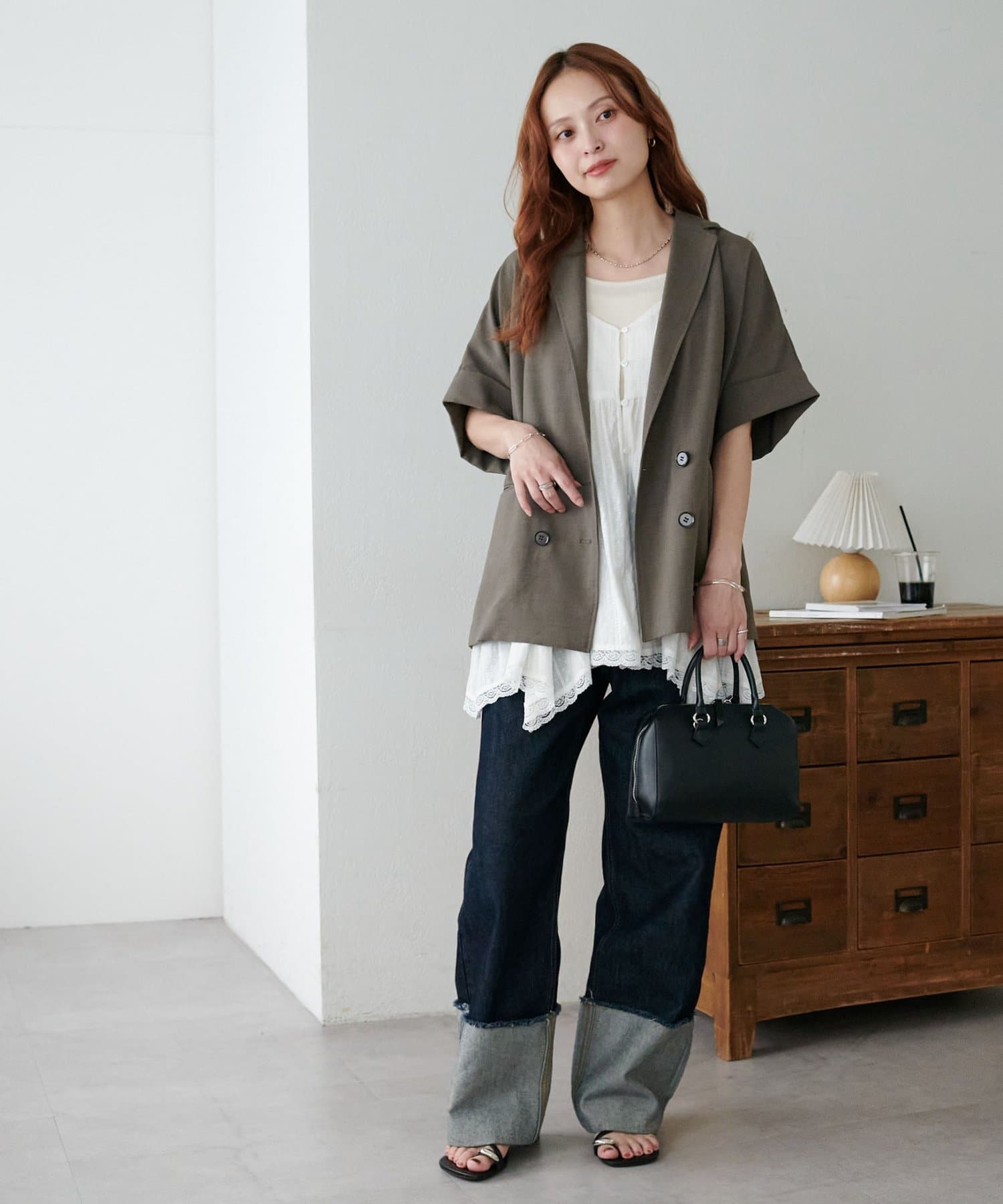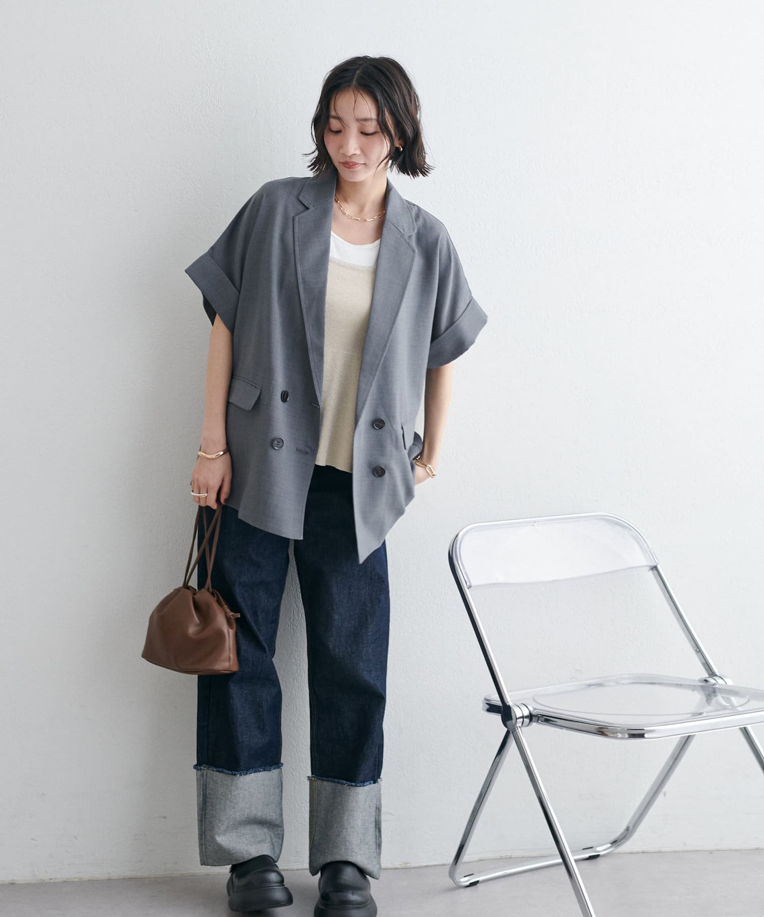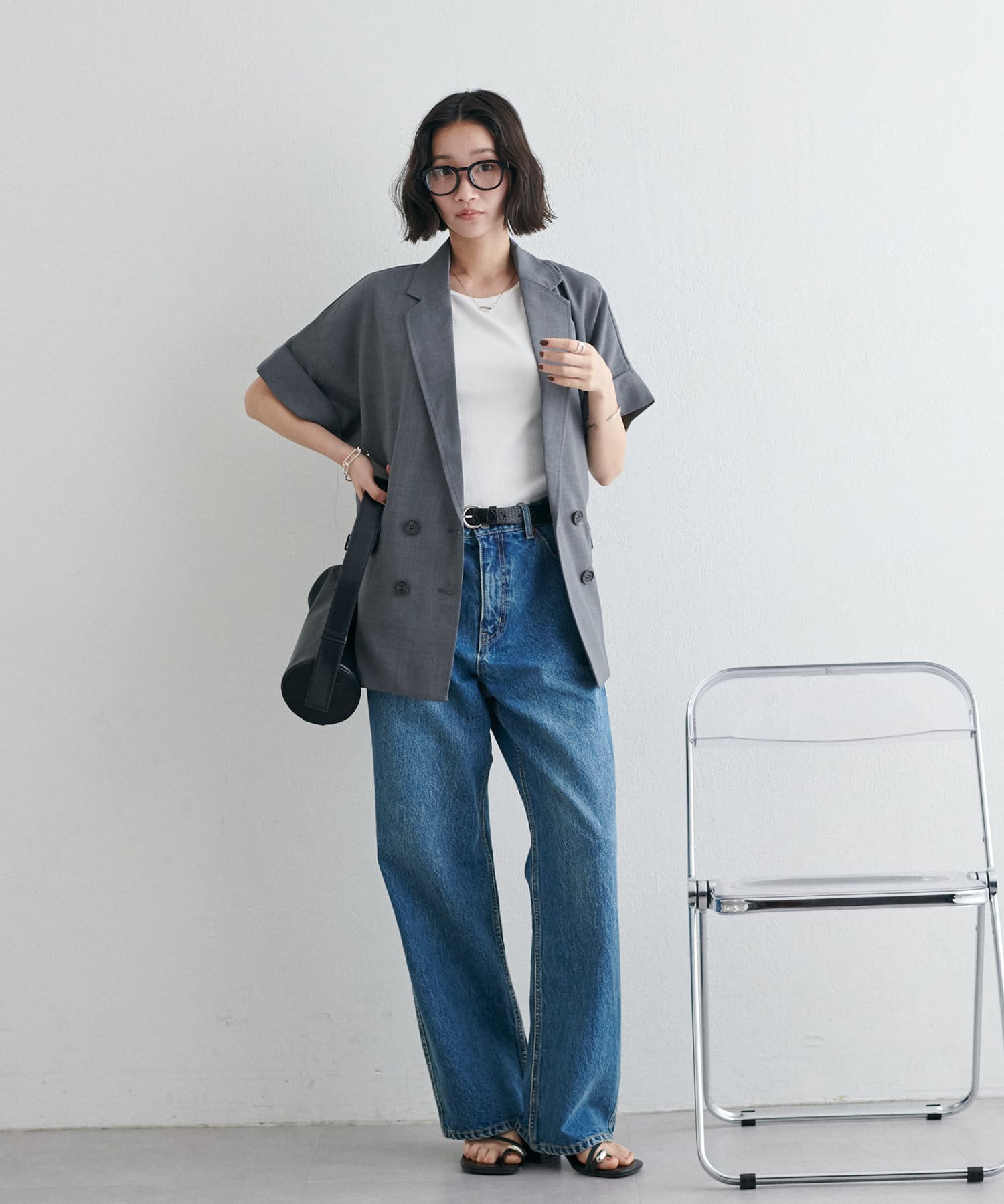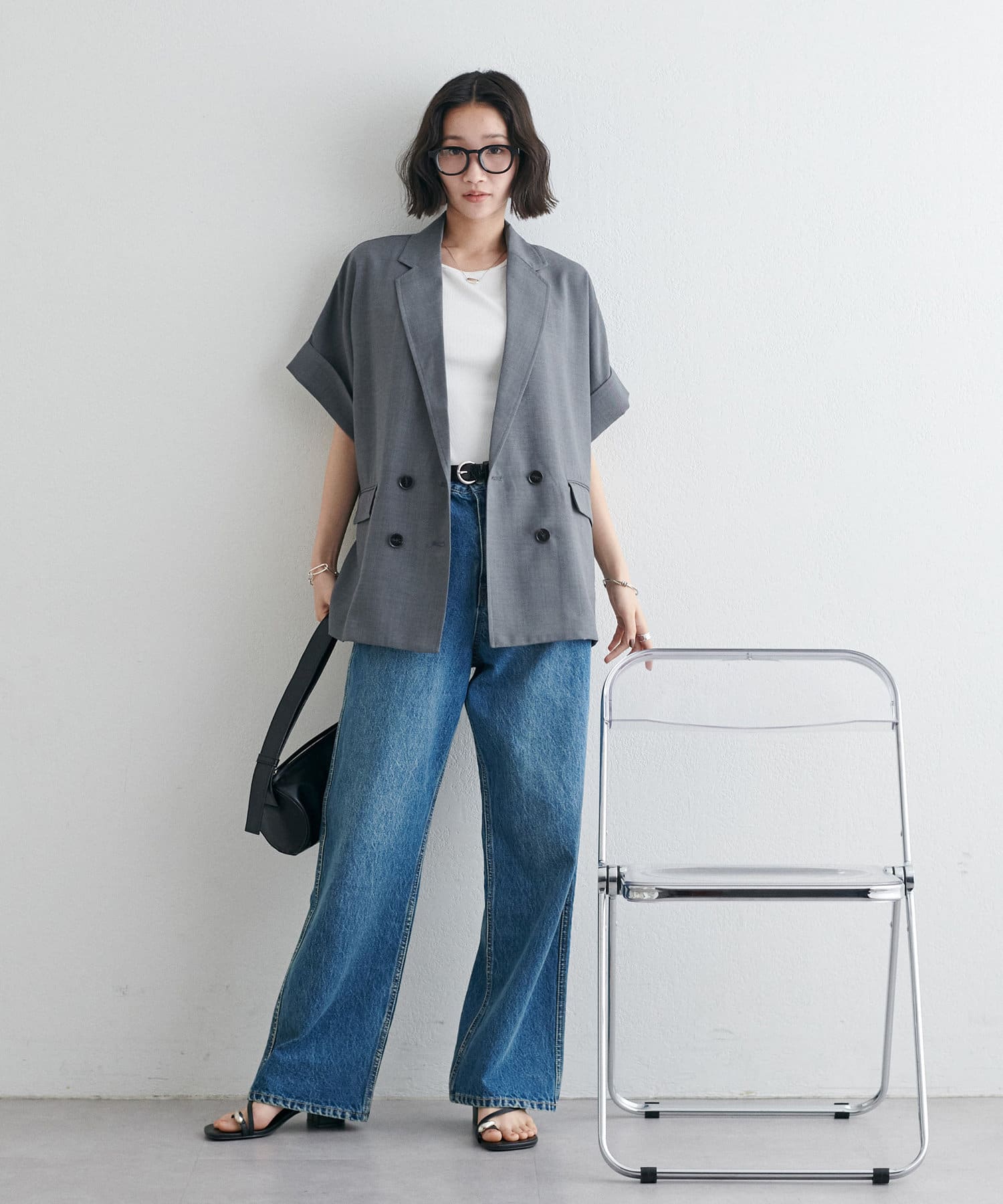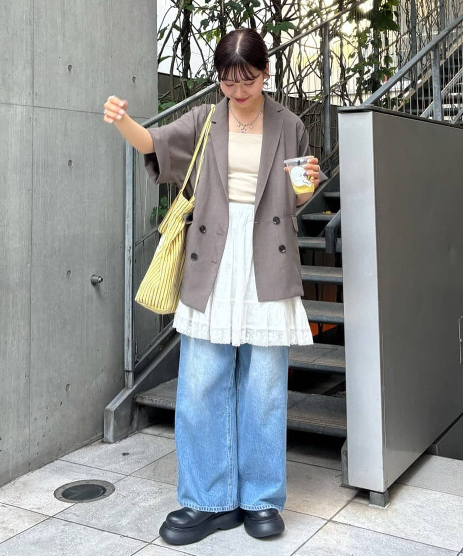 きれいめに見えがちなジャケットスタイルですが、ゆったりとしたシルエットでラフな着こなしを楽しめます♪